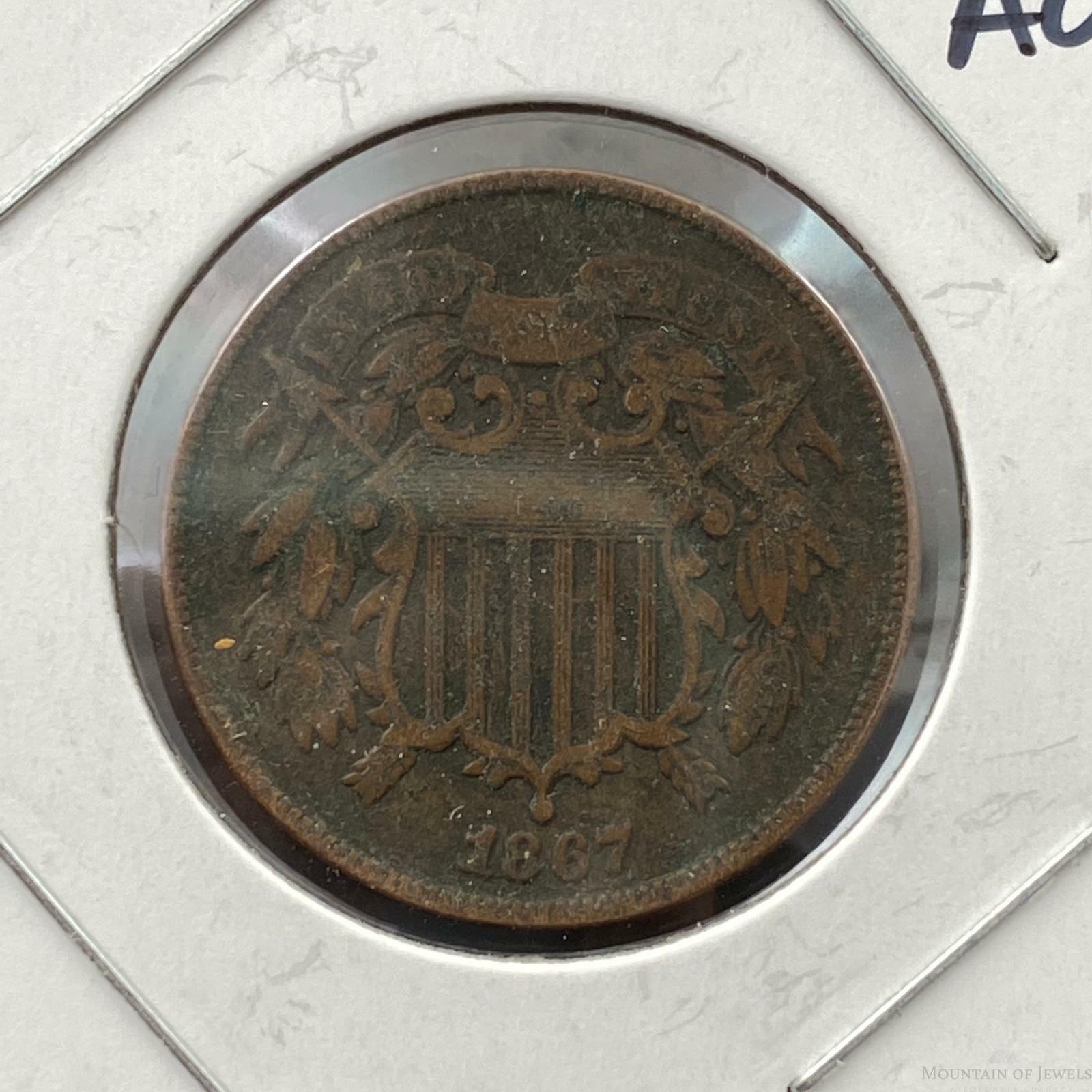 1867 US Two (2) Cent Piece Circulation Strike AG-G Collectible Coin #71720-1