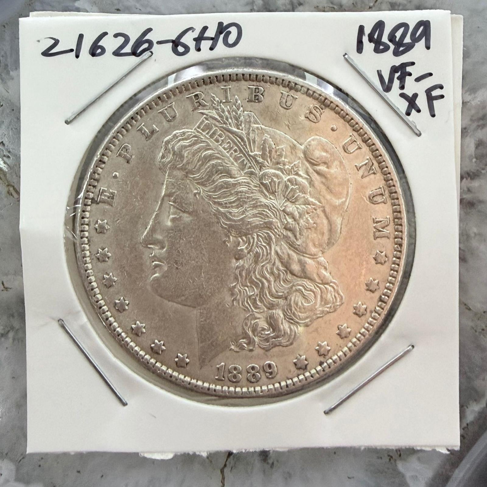 1889 US 90% Morgan Silver Dollar VF-XF #21626-6HO.