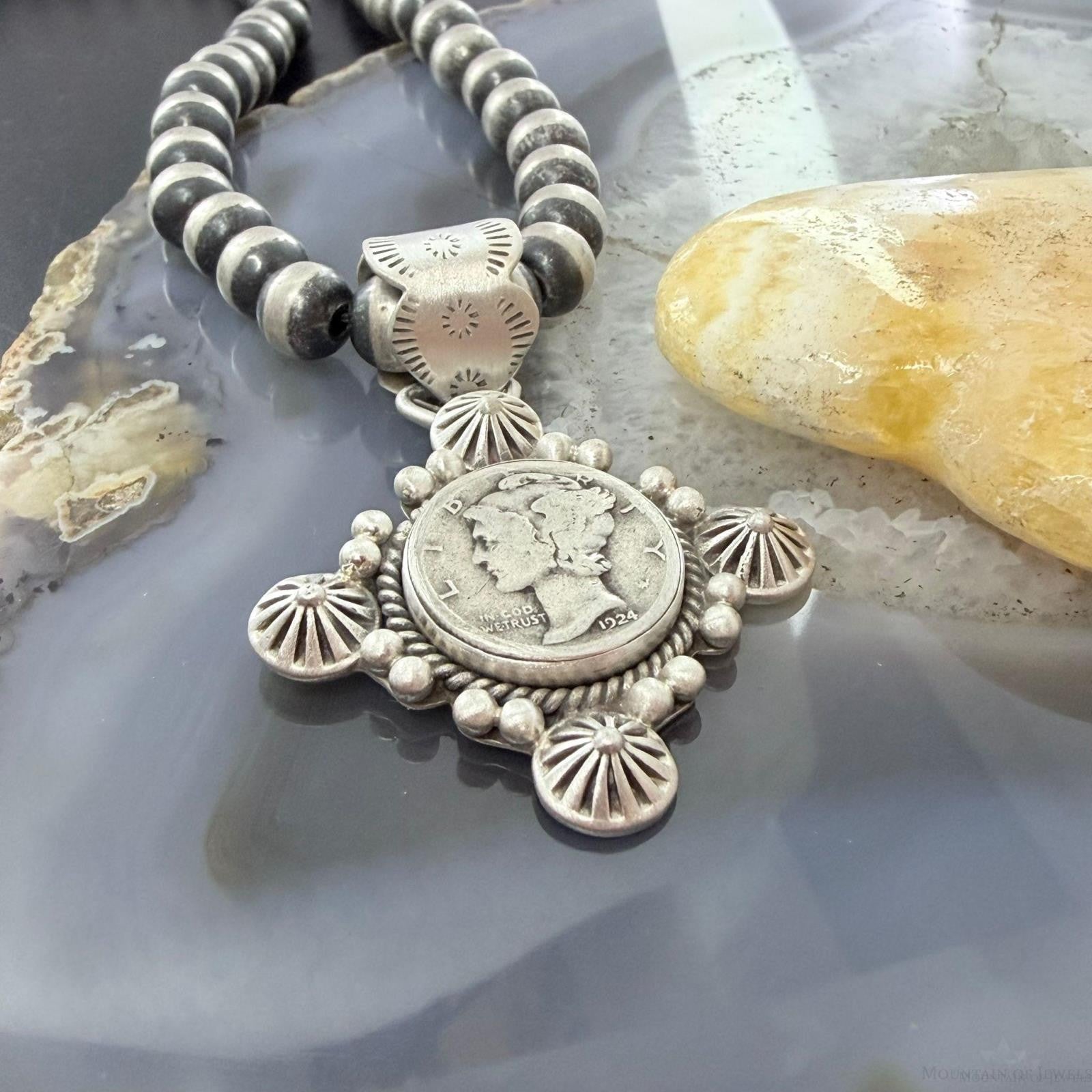 1924 Genuine 90% Silver US Mercury Dime Decorated Unisex Pendant