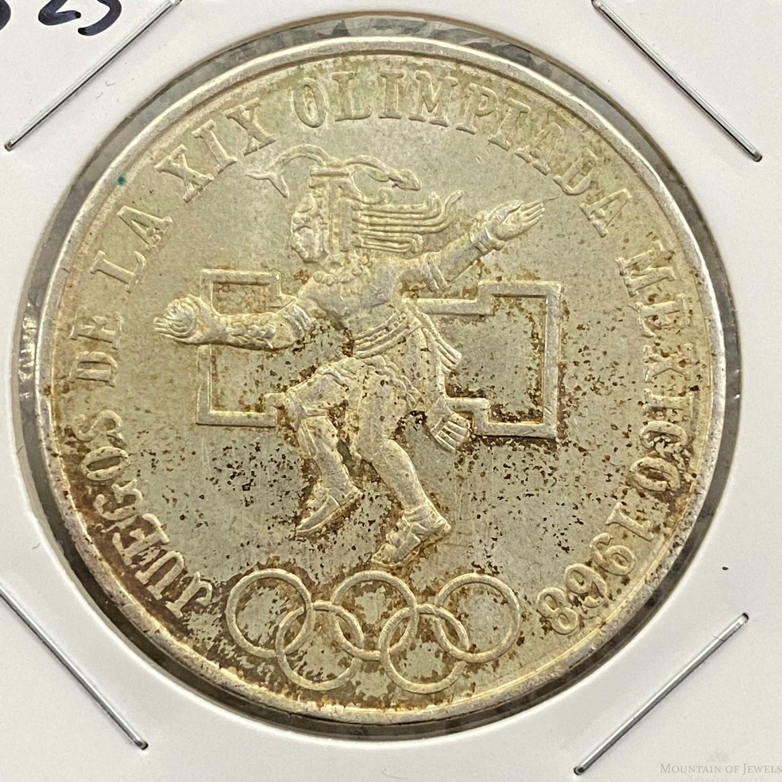 1968 Mexico XIX Olympic Games Aztec Ball Player 25 Pesos Silver Coin #32322-2