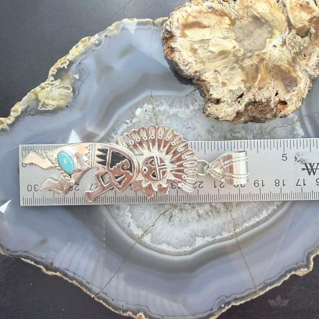 Alonzo Mariano Native American Sterling Silver Turquoise Kokopelli Kachina Unisex Pendant