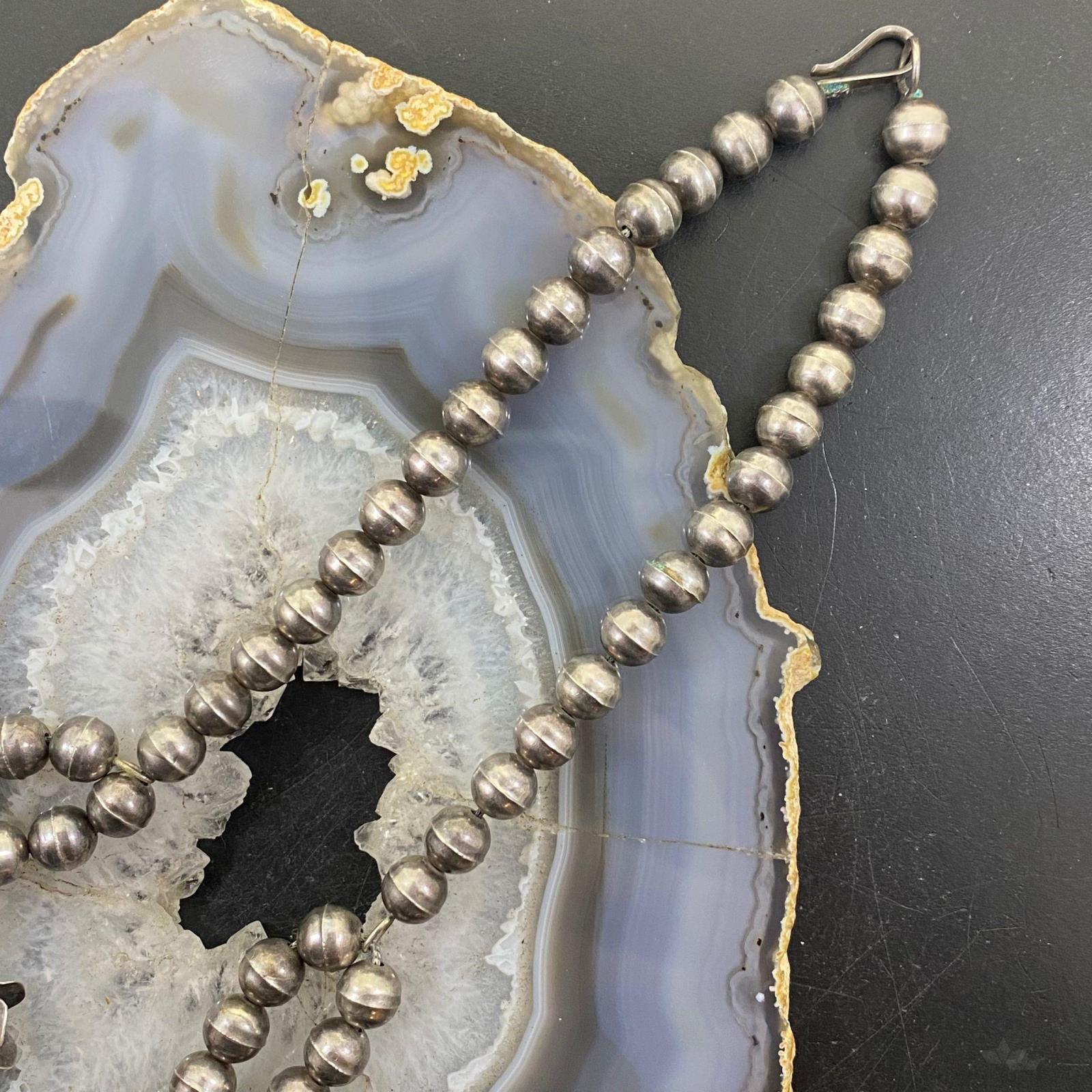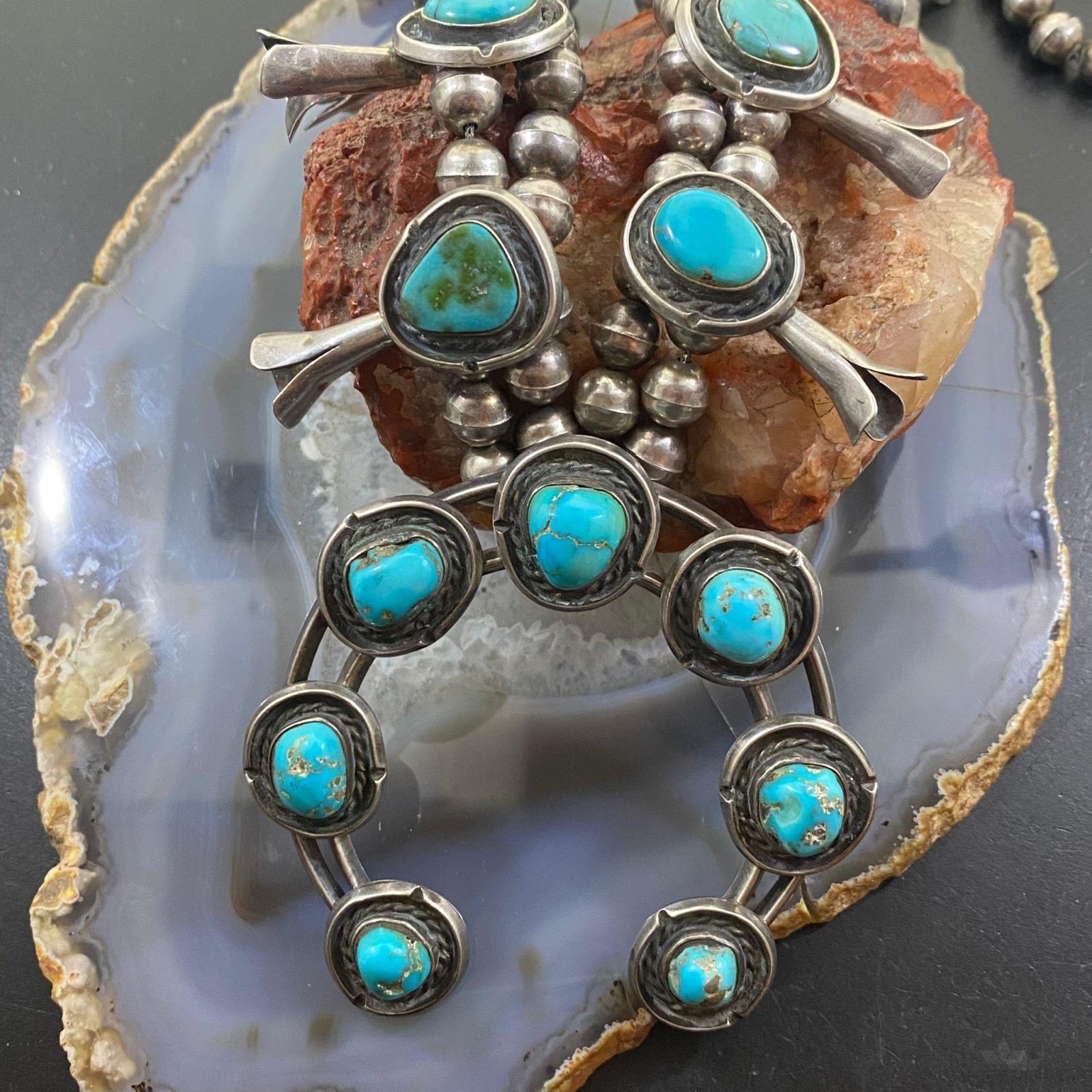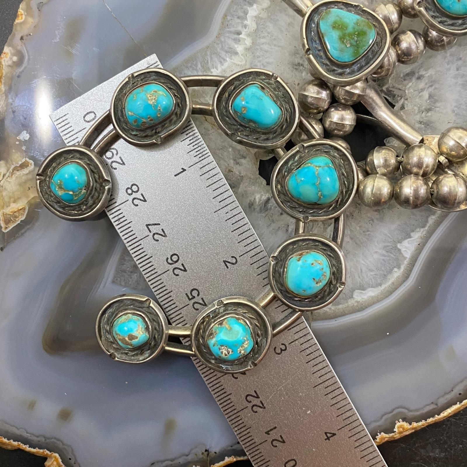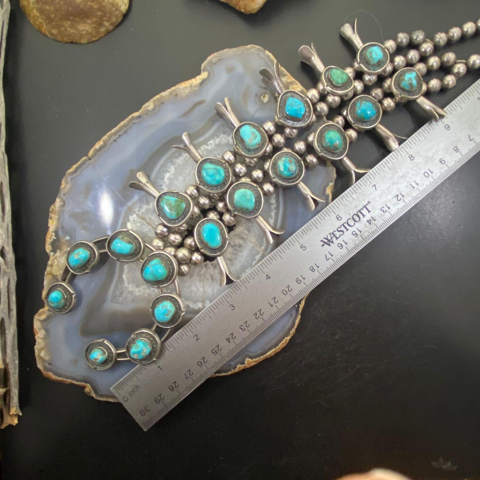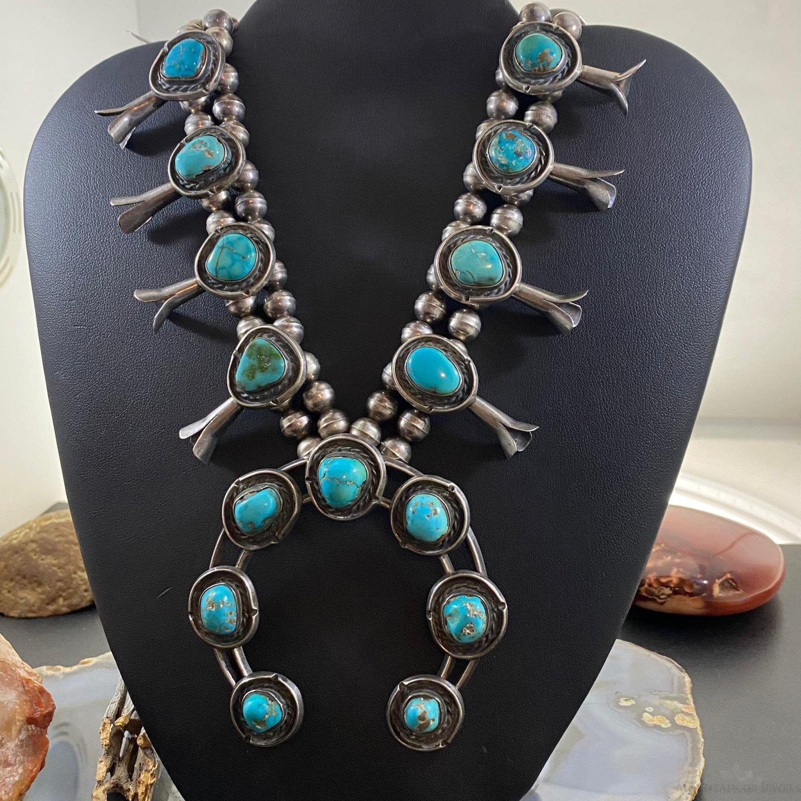 Antique Native American Silver Turquoise Squash Blossom Necklace For Women