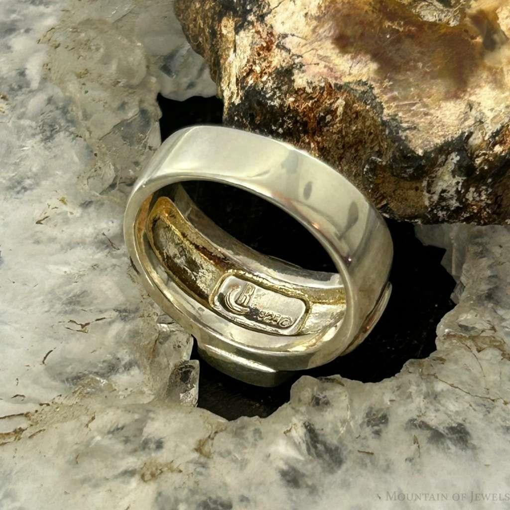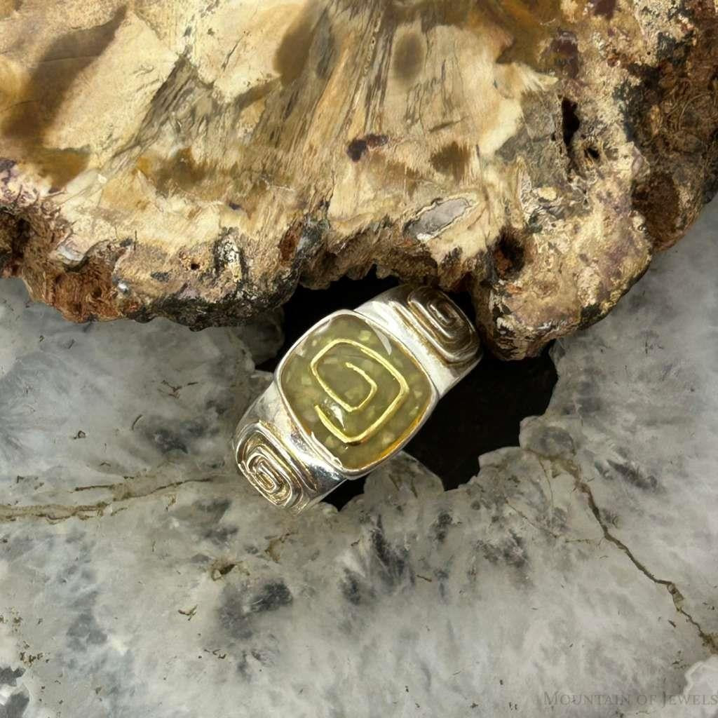 Carolyn Pollack 2-Tone Sterling Chip Green Turquoise Spiral Ring Size 7 For Women