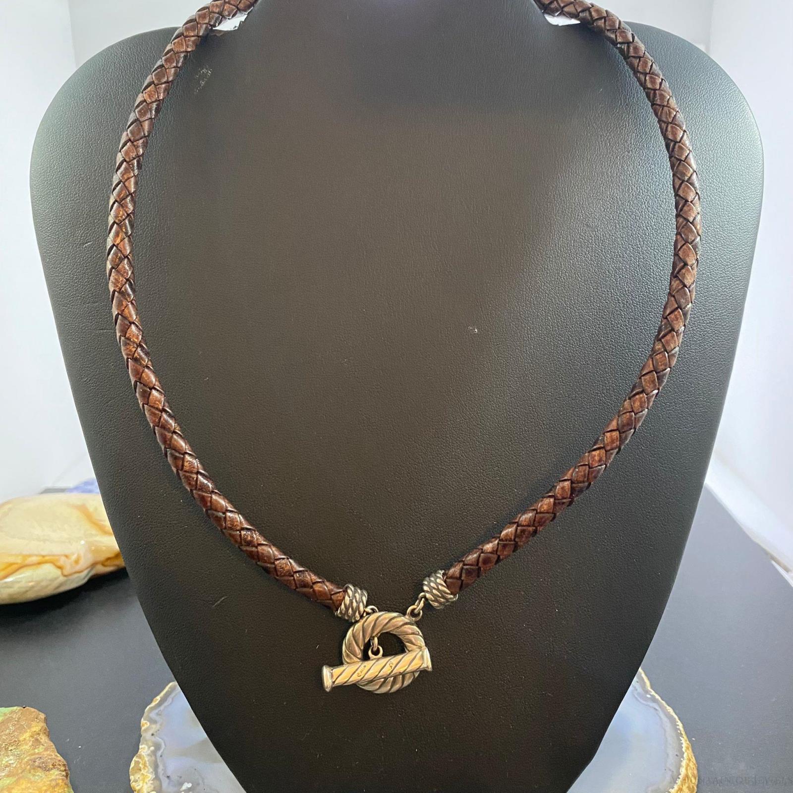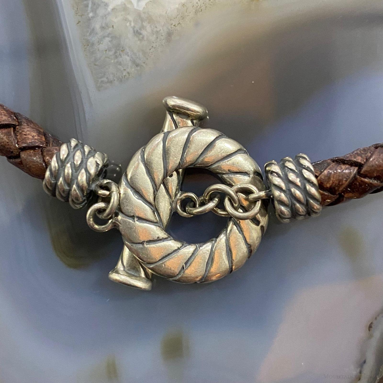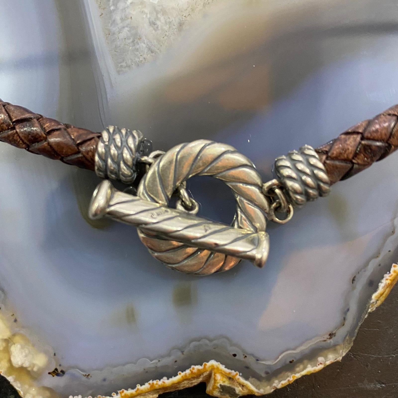 Carolyn Pollack Southwestern Style Antique Brown Leather Toggle Clasp Necklace