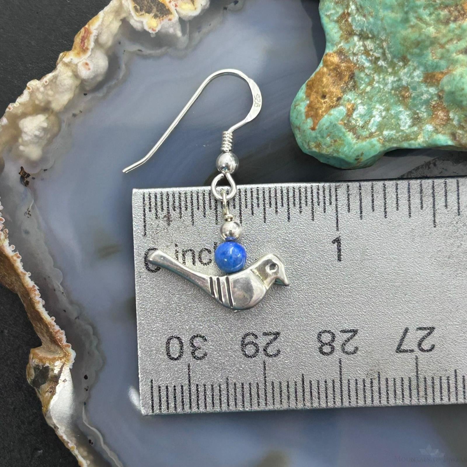 Carolyn Pollack Southwestern Style Sterling Silver Bird with Lapis Bead Dangle Earrings For Women