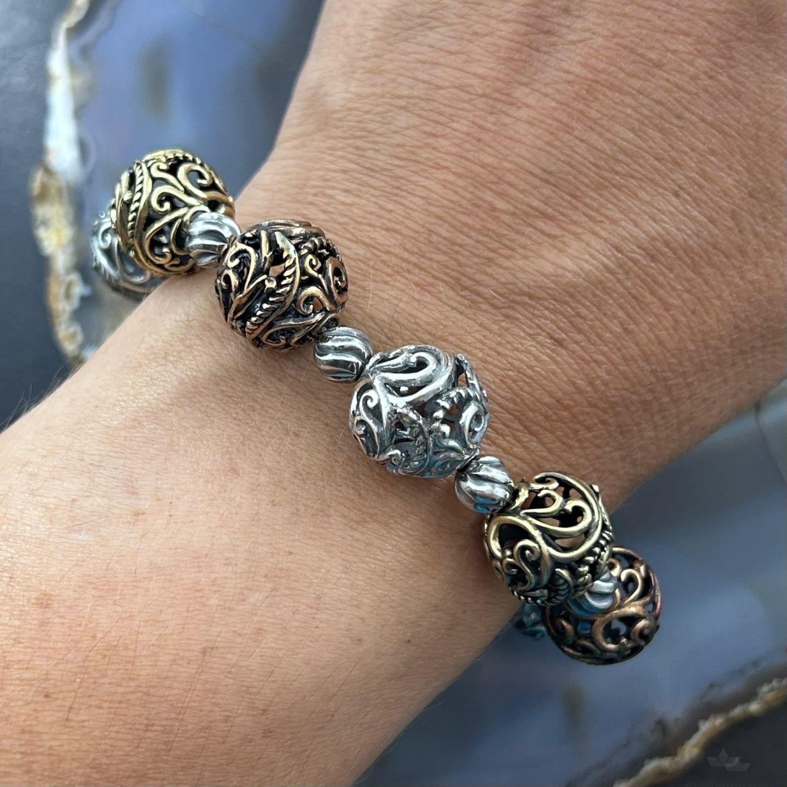 Carolyn Pollack Sterling Silver, Brass, Copper Decorated Swirl Beads Bracelet For Women