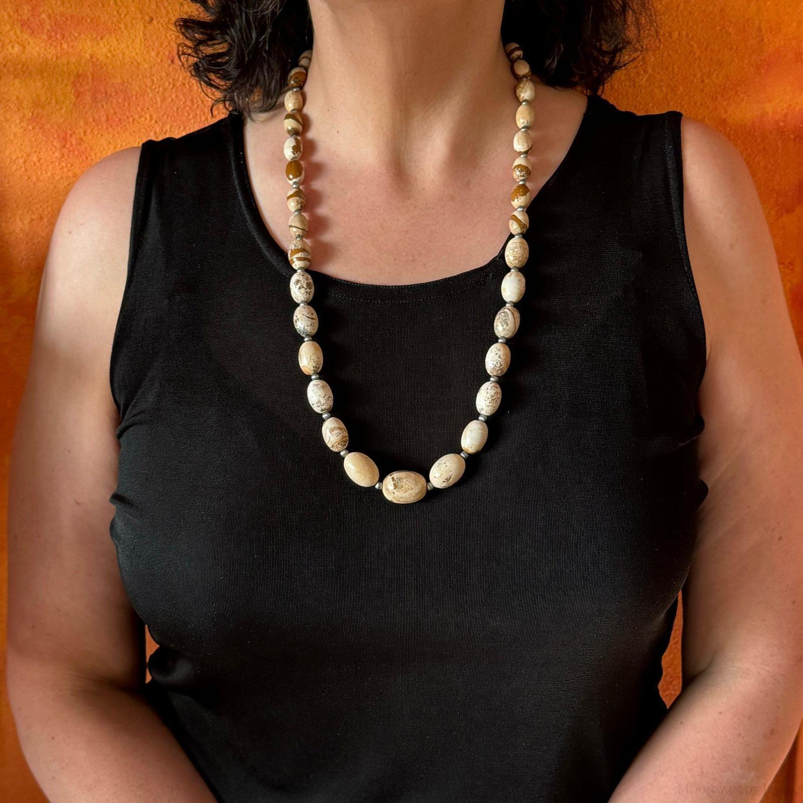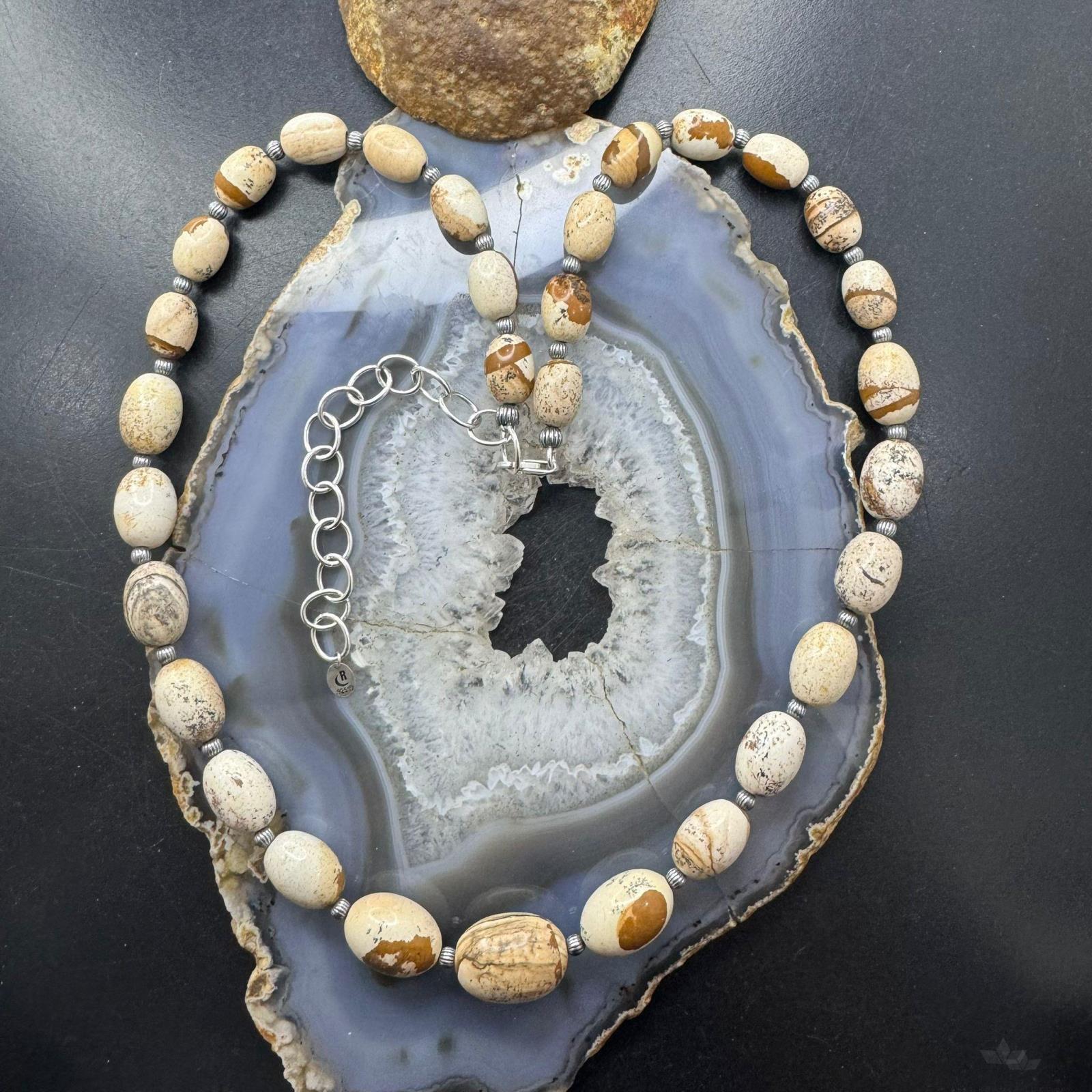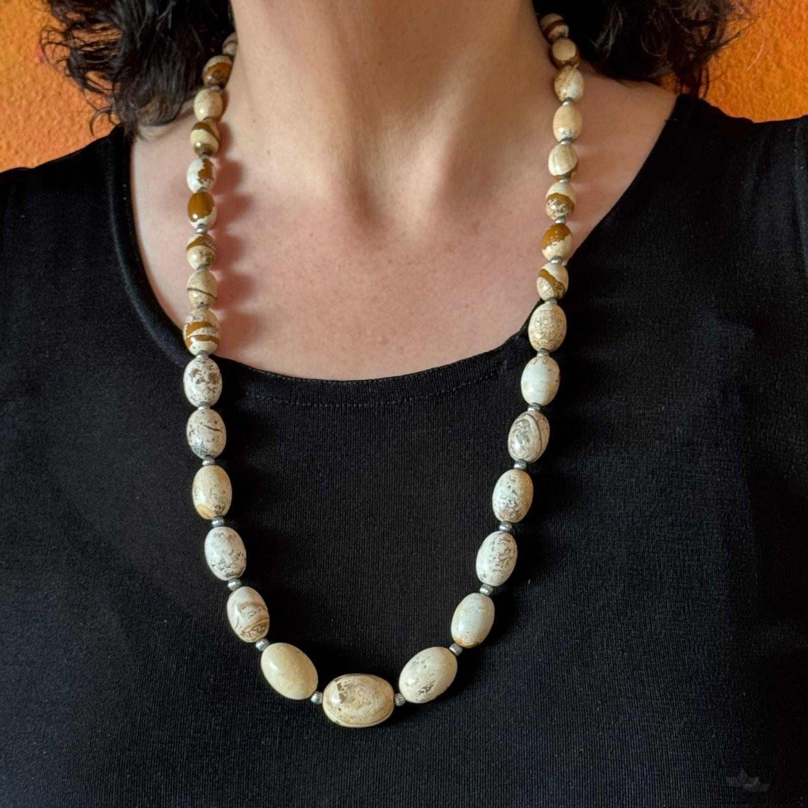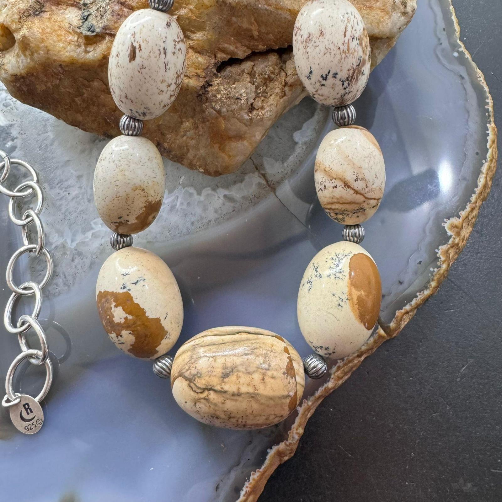 Beautiful Carolyn Pollack Sterling Silver Graduated Egg Shape Picture Jasper Adjustable Bead Necklace For Women.