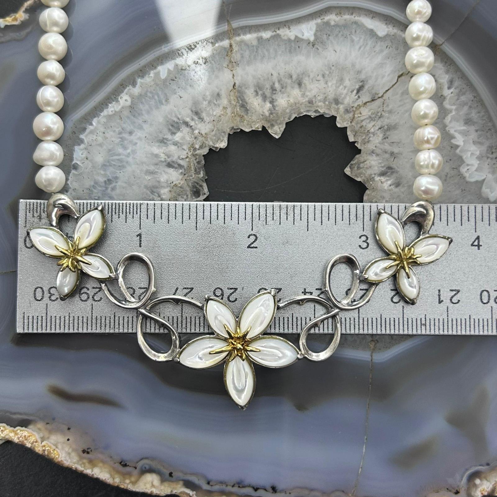 Carolyn Pollack Sterling Silver Freshwater Pearl and Floral Necklace 16"-18" For Women