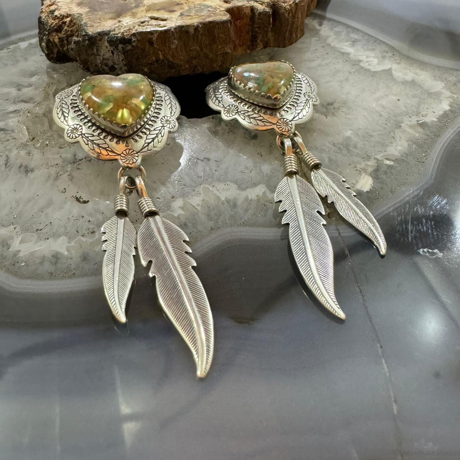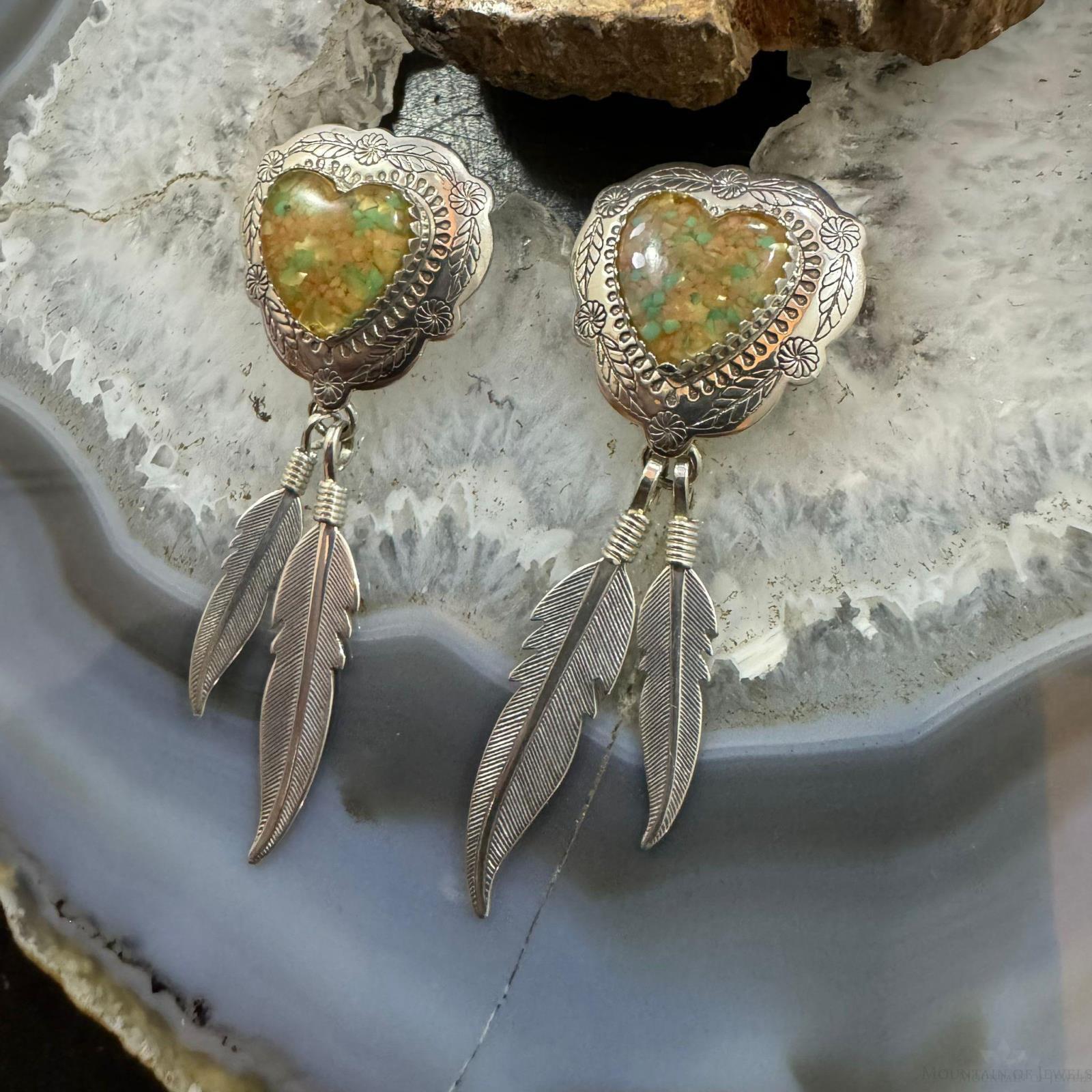 Carolyn Pollack Sterling Silver Heart Shape Chip Gemstones w/Feathers Dangle Earrings For Women