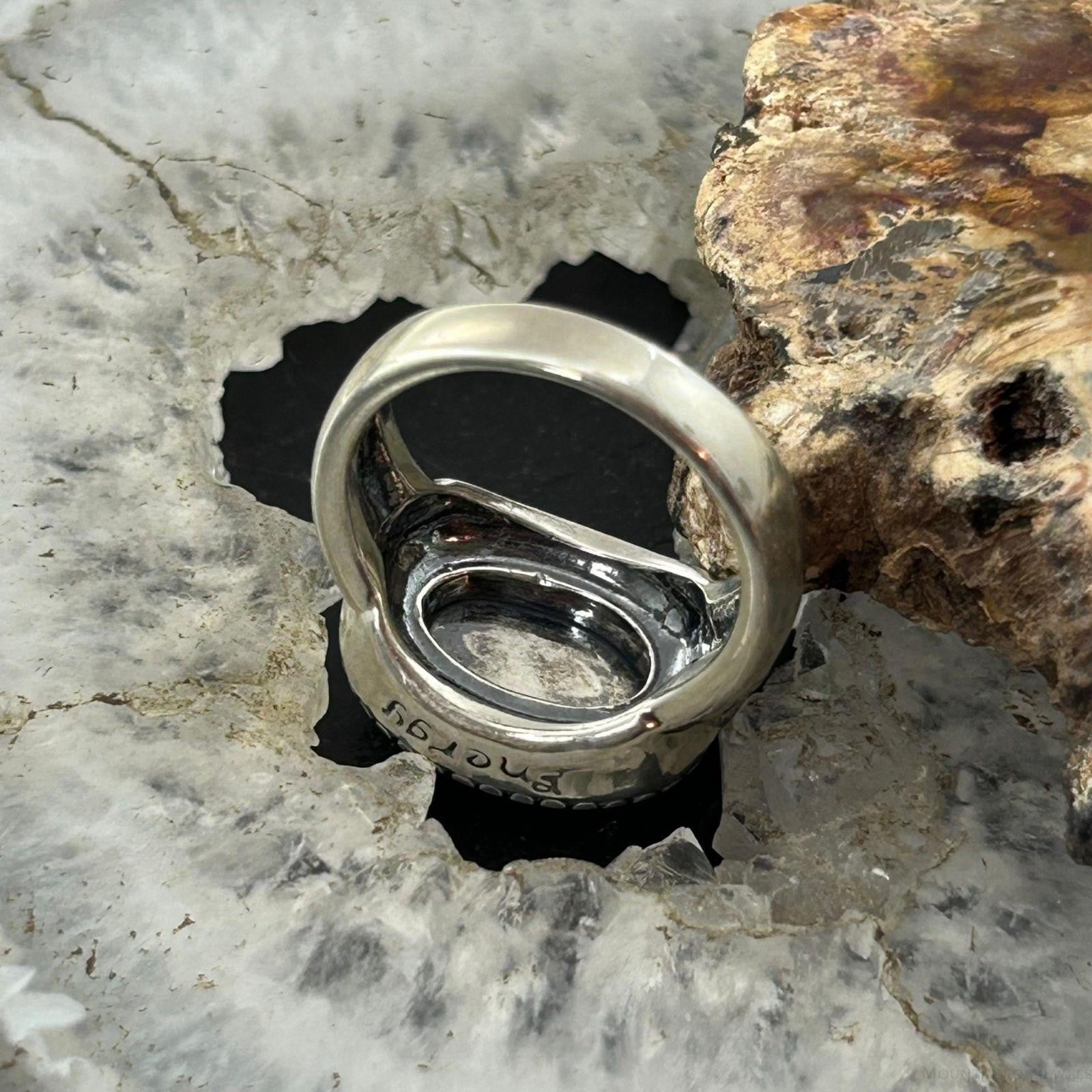 A Beautiful Stone is Set in a Smooth Bezel Framed by Sterling Silver Bead Work and the Word "Energy" is Delicately Engraved Beneath the Length of the Cabochon. This Design Has an Oxidized Finish With Beautiful Polished Accents.