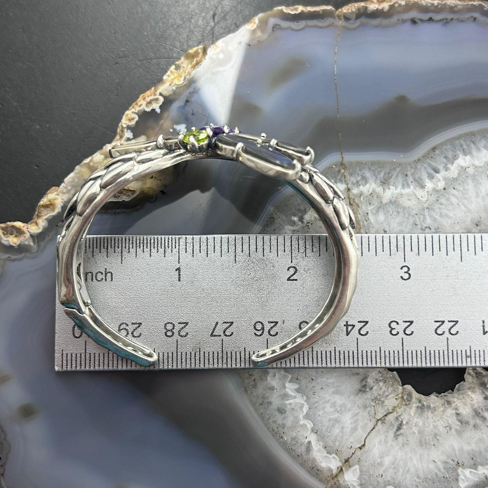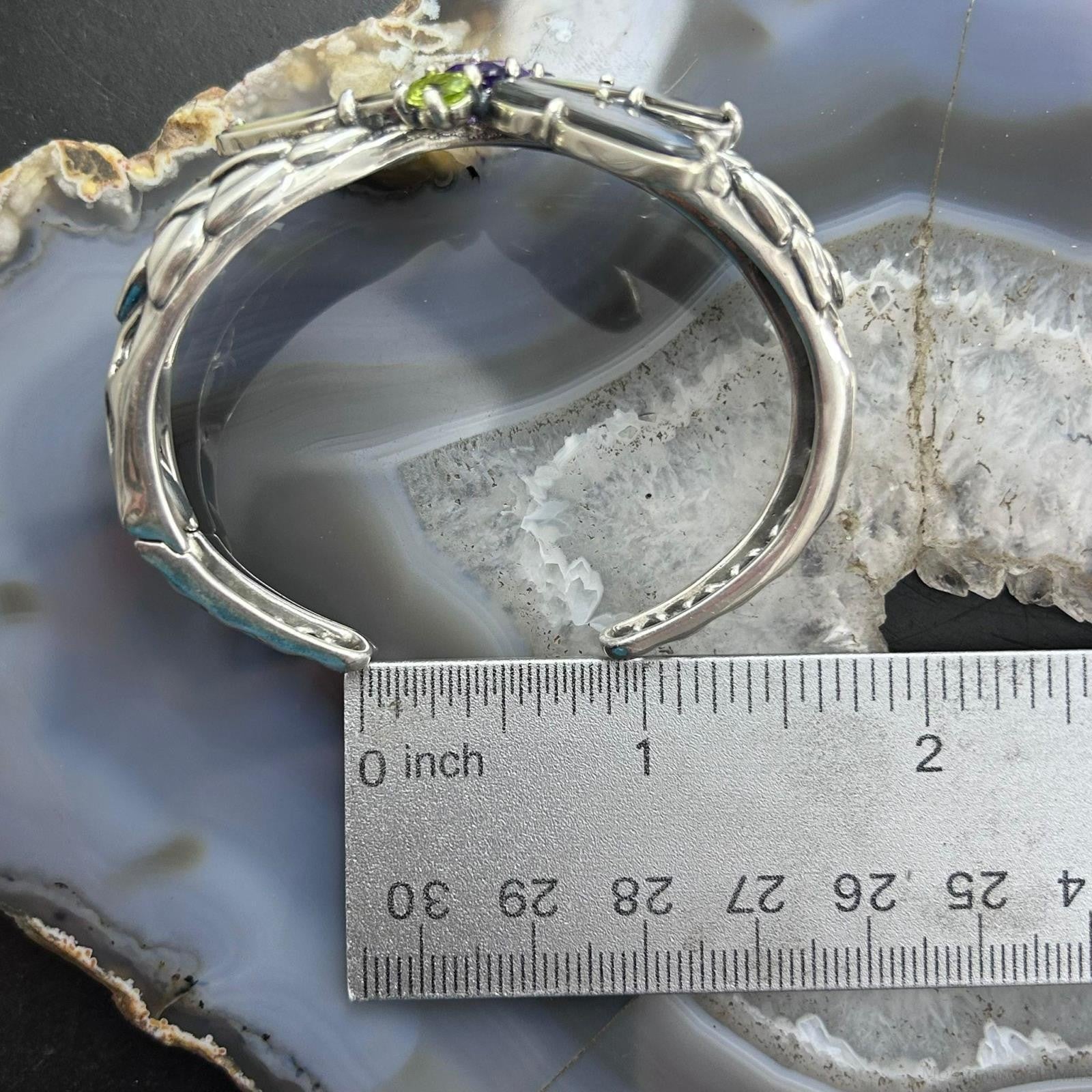 Carolyn Pollack Sterling Silver Multi Gemstone Dragonfly Decorated Hinged Cuff Bracelet