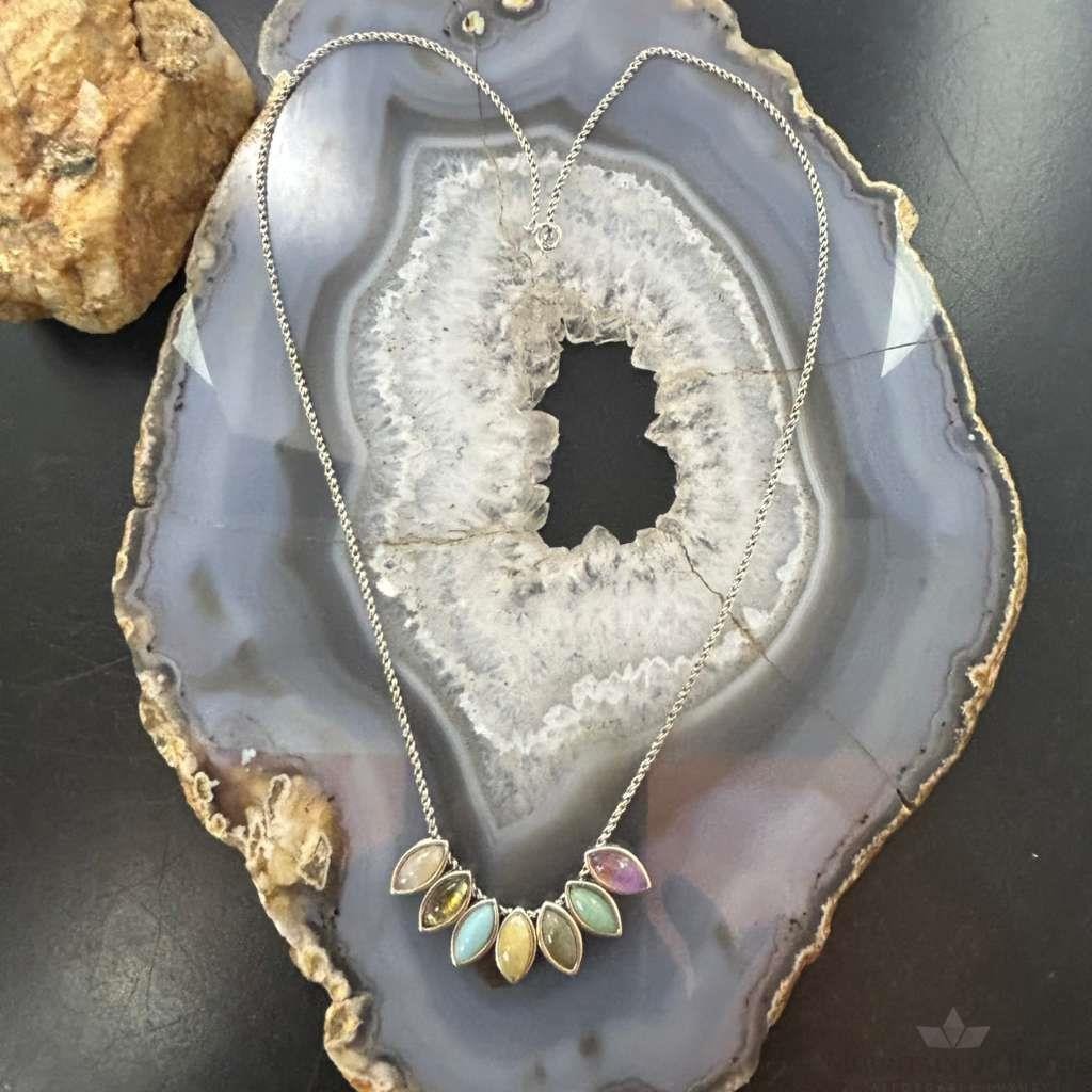 Carolyn Pollack Sterling Silver 7 Marquise Multi Stone 18" Necklace For Women
