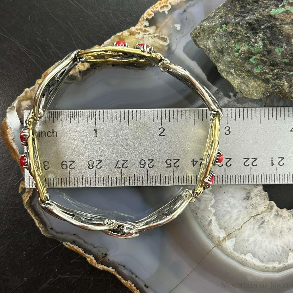 Carolyn Pollack Sterling Silver & Brass w/Red Jasper Link Bracelet For Women