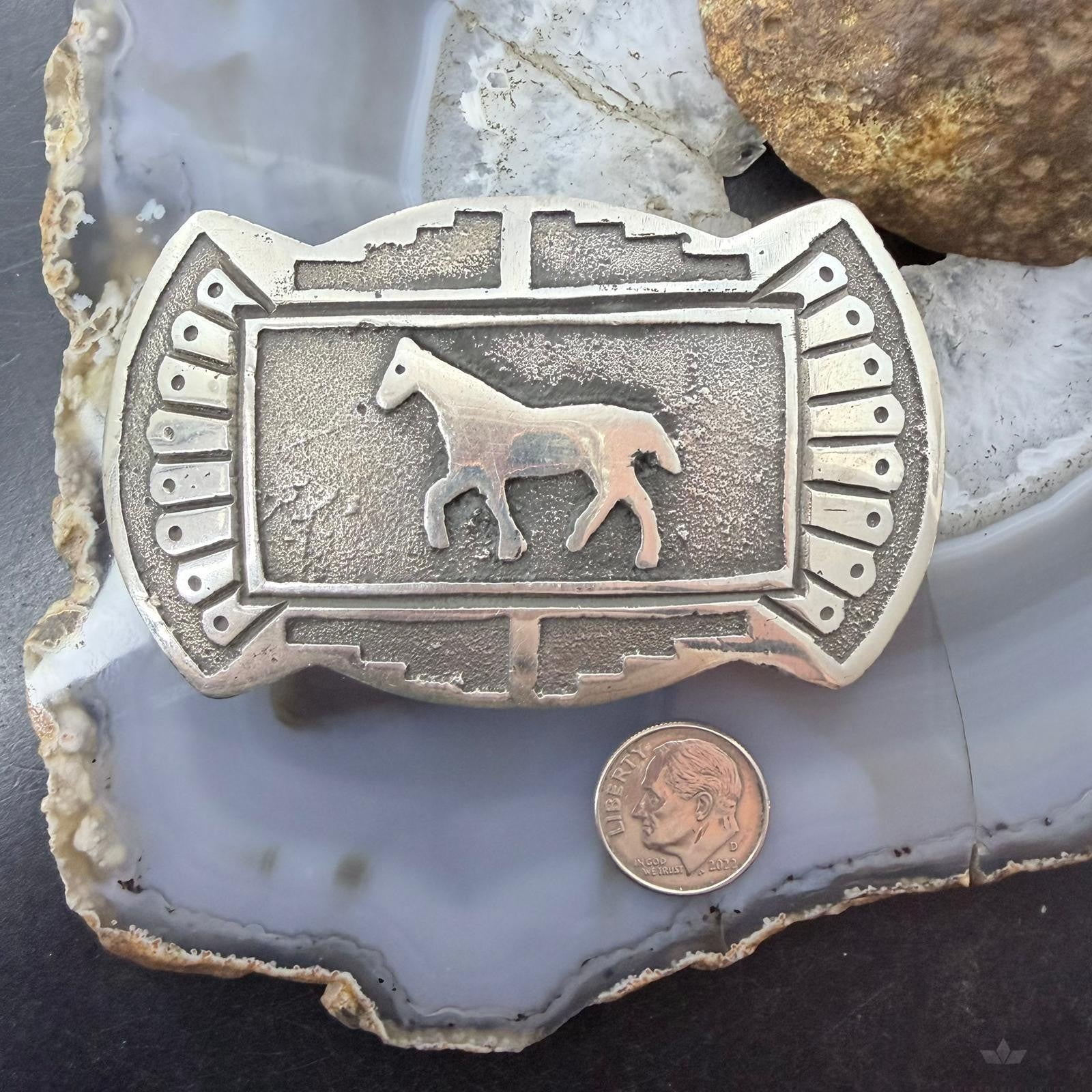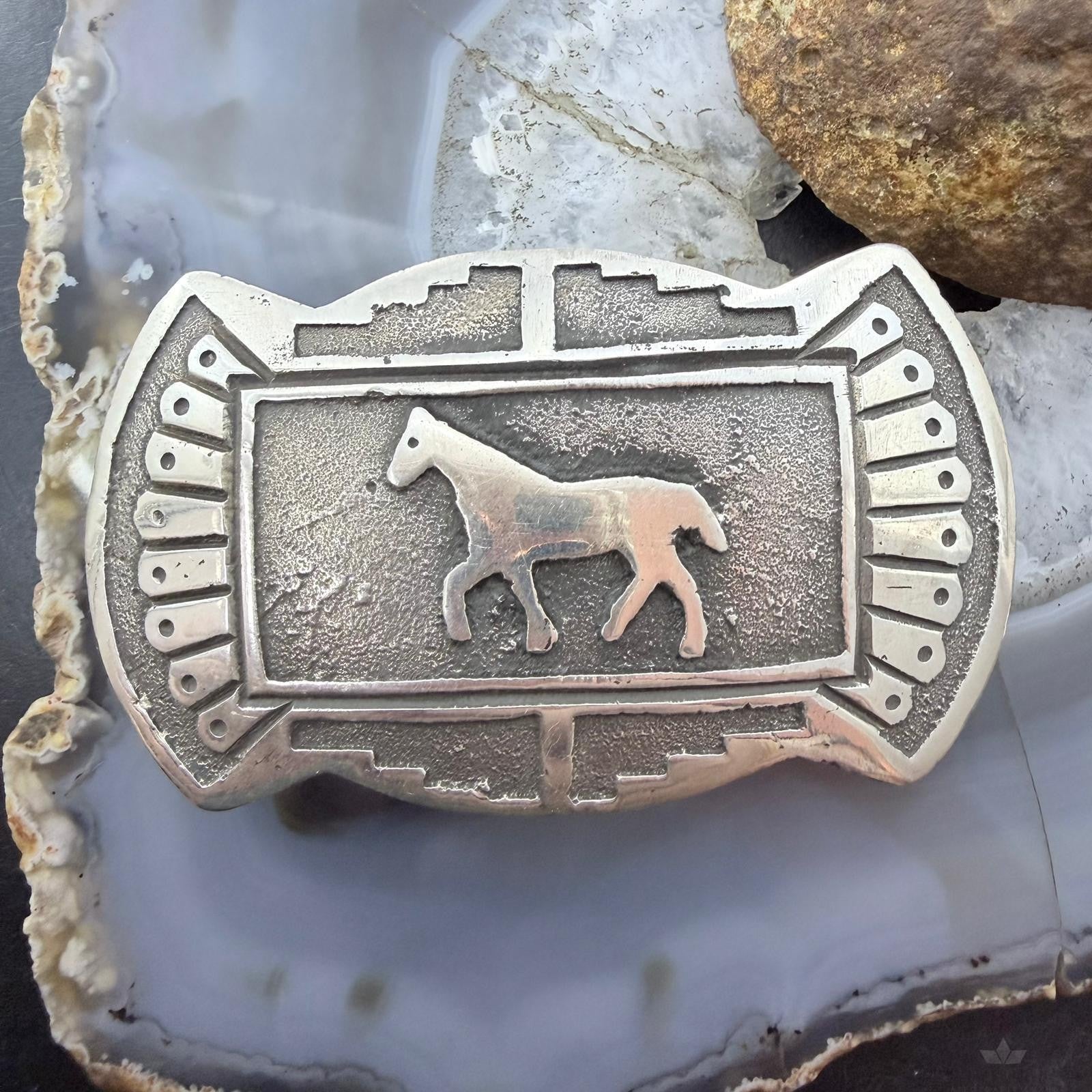 Emerson Kinsel Native American Sterling Silver Overlay Horse Belt Buckle For Men