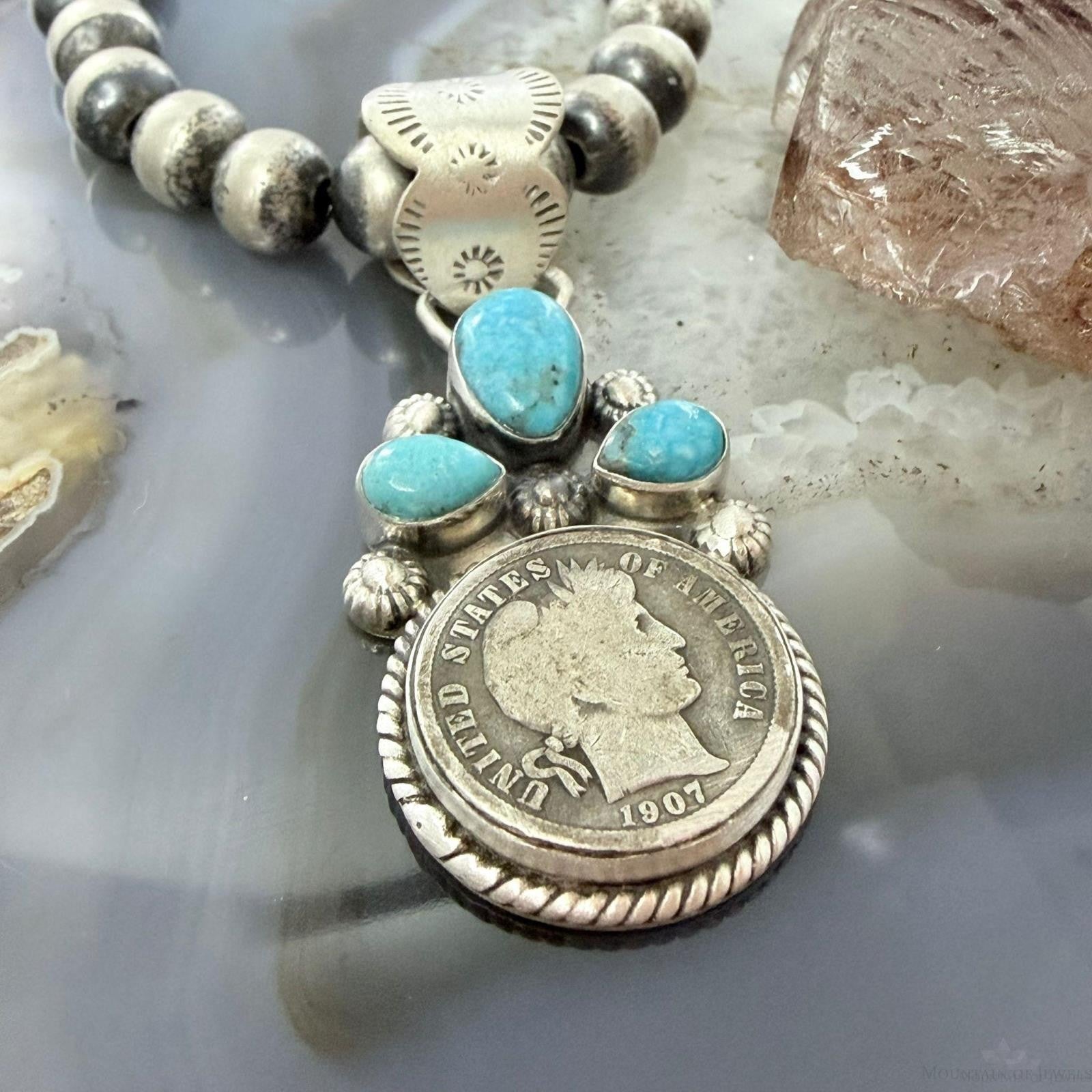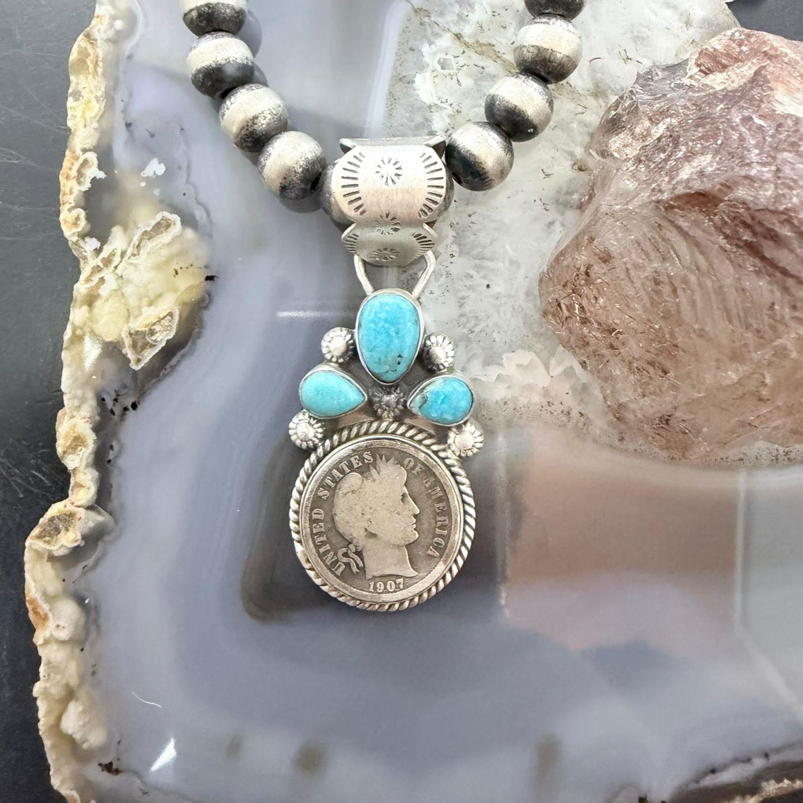 Genuine 1907 90% Silver Barber Head Dime Coin Mohave Turquoise Unisex Pendant