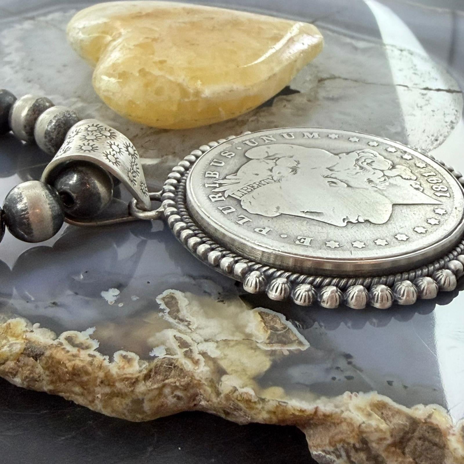 Genuine 90% Silver 1891 US Morgan Dollar Decorated Unisex Pendant