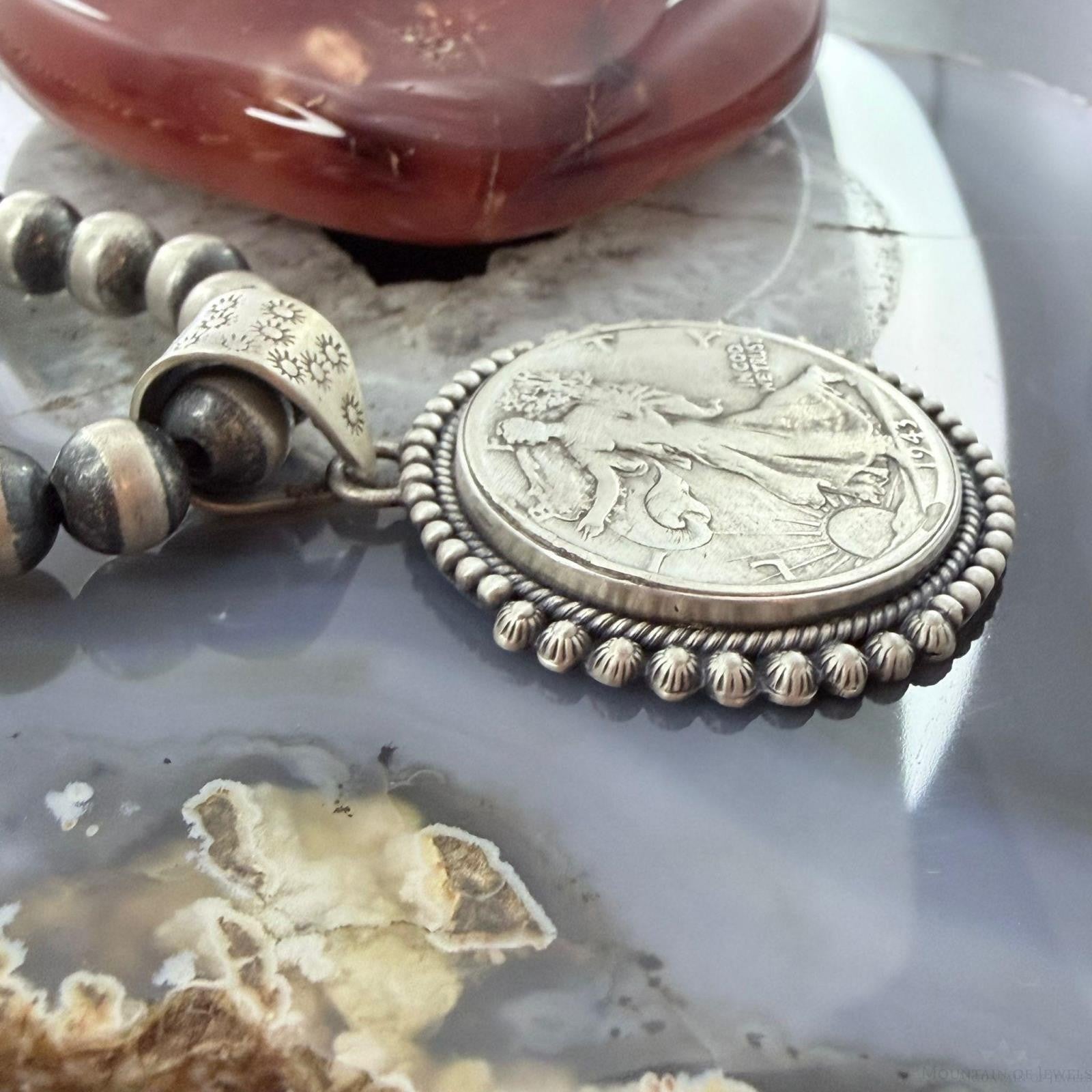Genuine 90% Silver 1943 US Walking Liberty Half Dollar Decorated Unisex Pendant