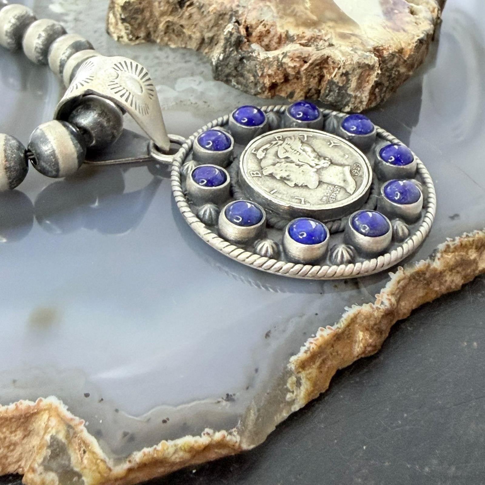 Genuine 90% Silver Mercury Dime Coin w/Lapis Decorated Unisex Pendant