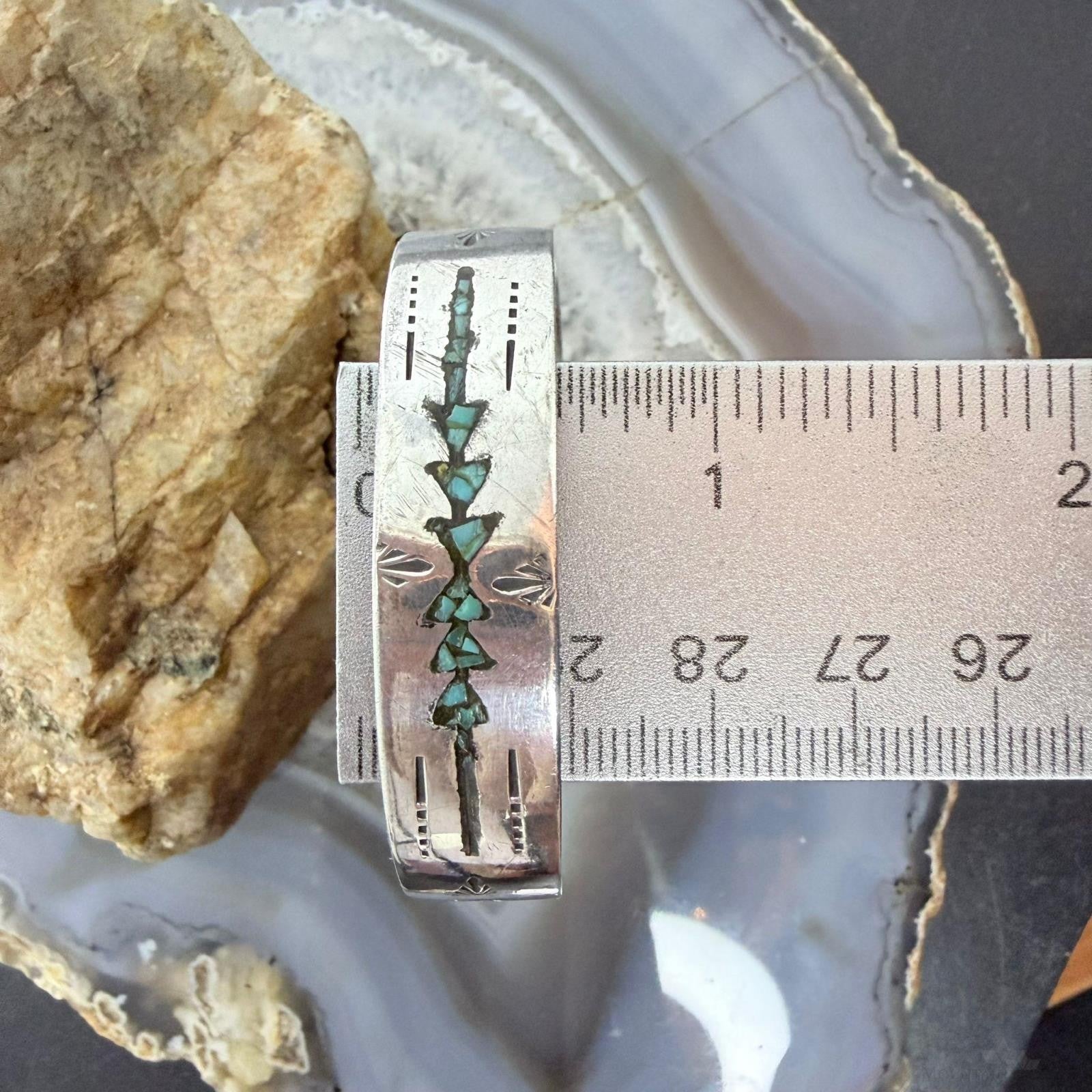 Gibson Gene Navajo Native American Silver Turquoise Chip Inlay Bracelet (As Is)