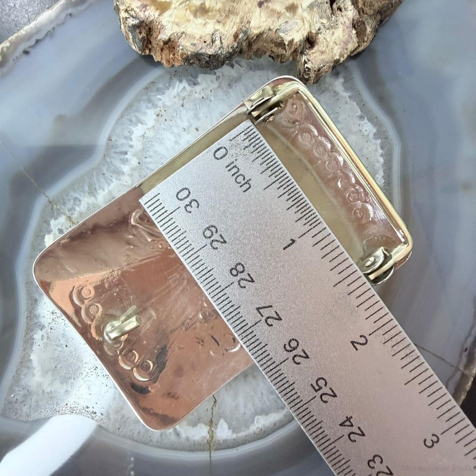 Joann Begay Native American Sterling Silver 5 Coral Stamped Belt Buckle For Men