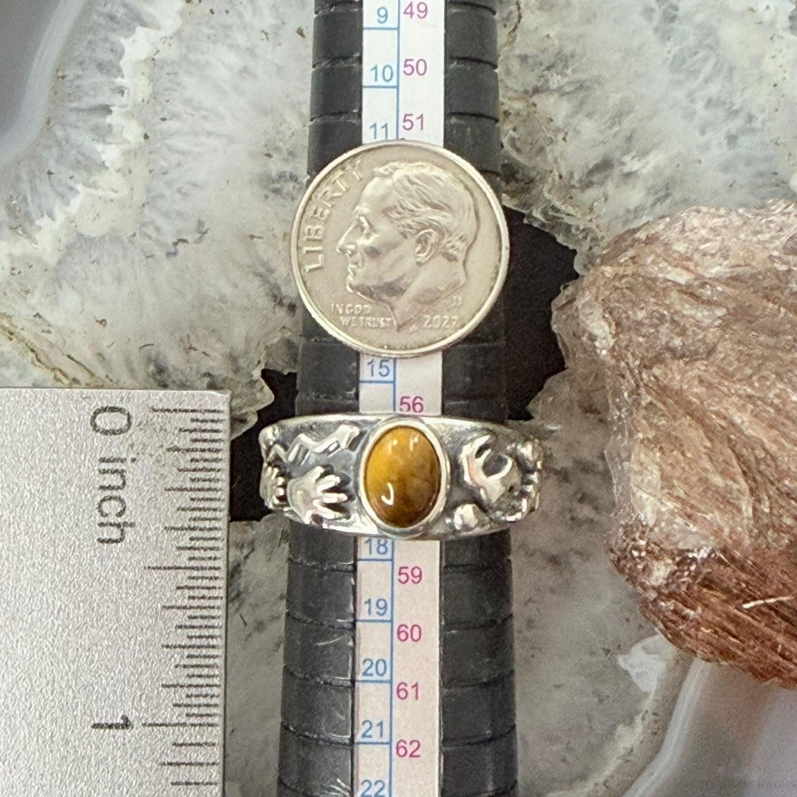 Jody Naranjo Vintage Sterling Silver Tiger's Eye Petroglyph Ring Size 8 For Women
