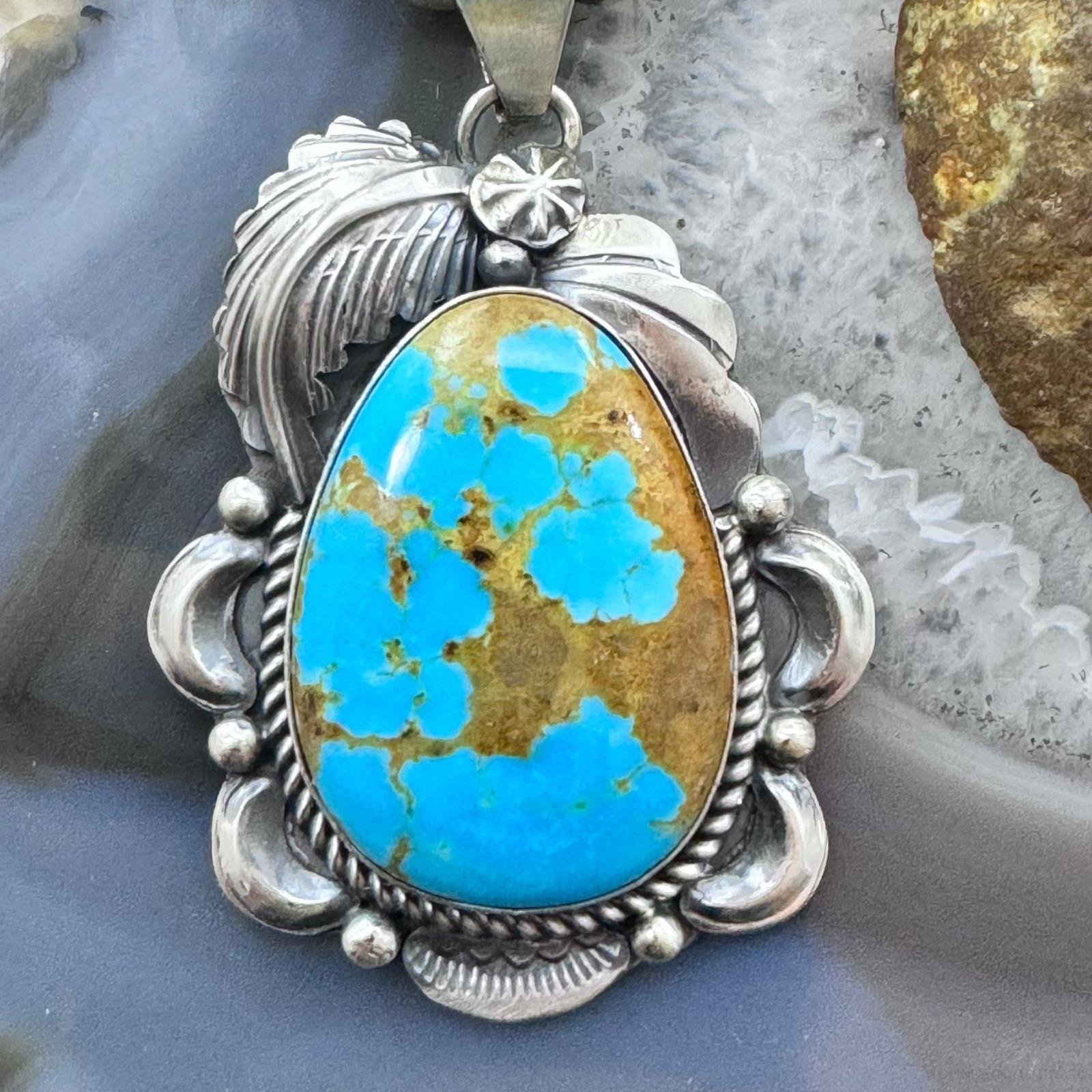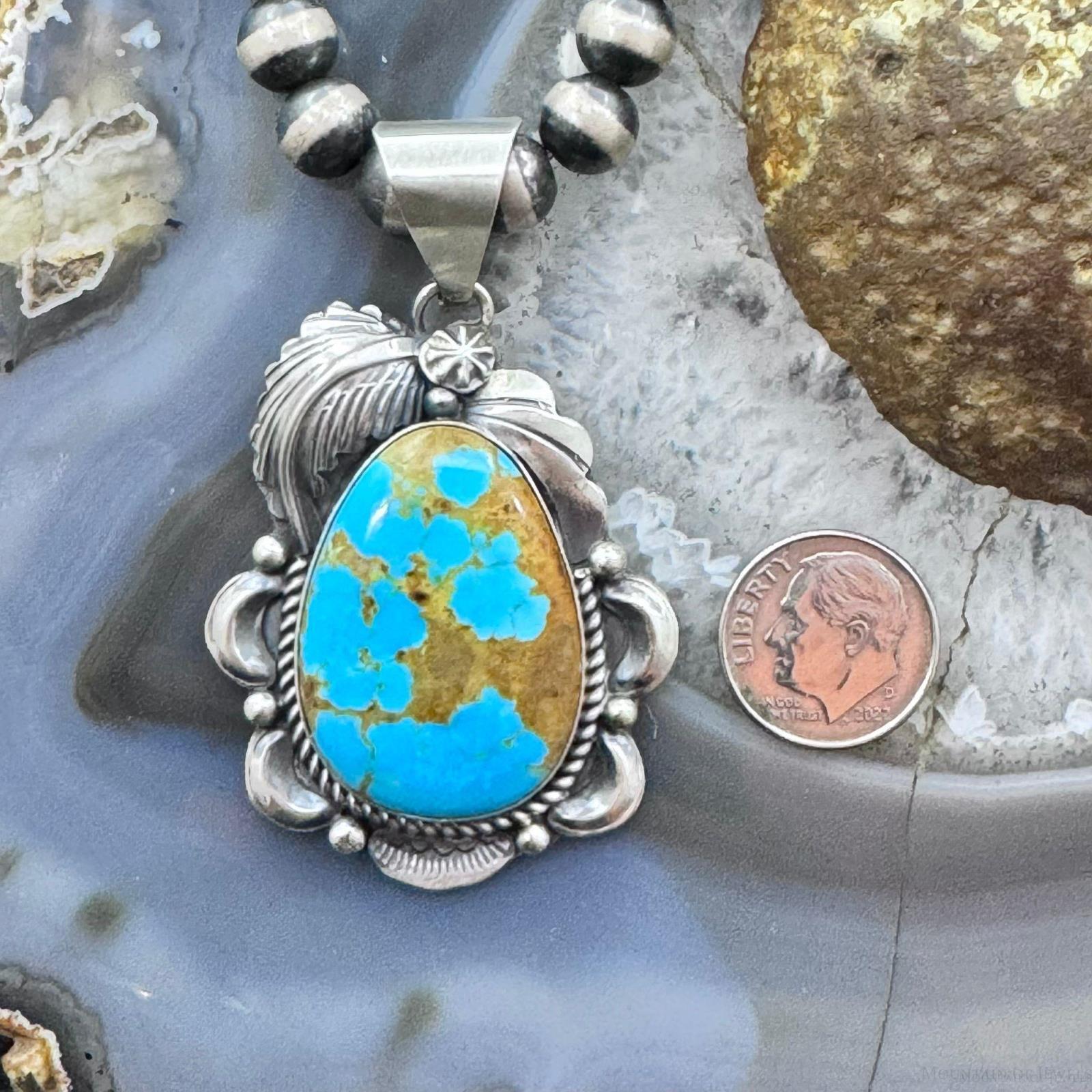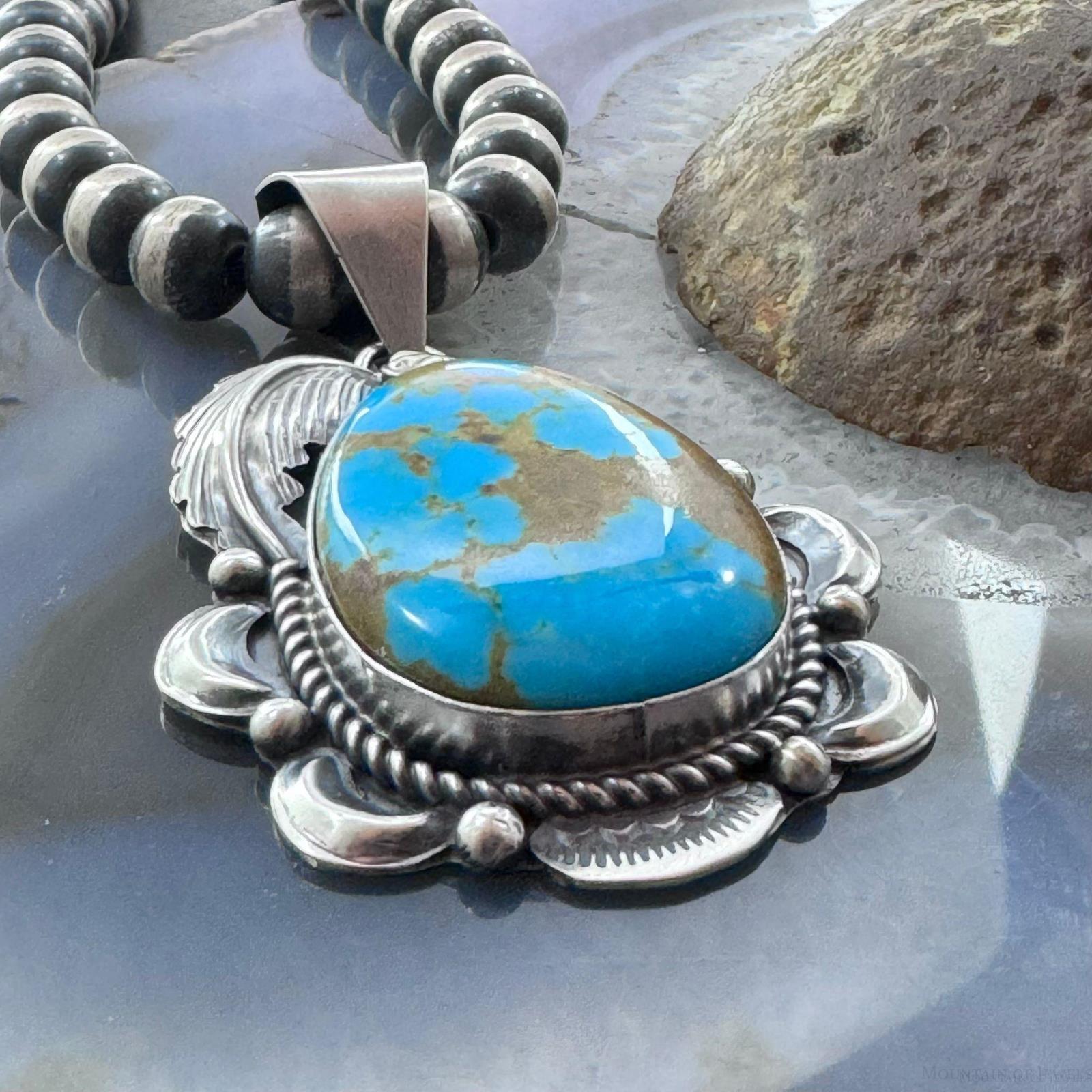Juanita McDonald Native American Sterling Silver Turquoise Decorated Pendant For Women