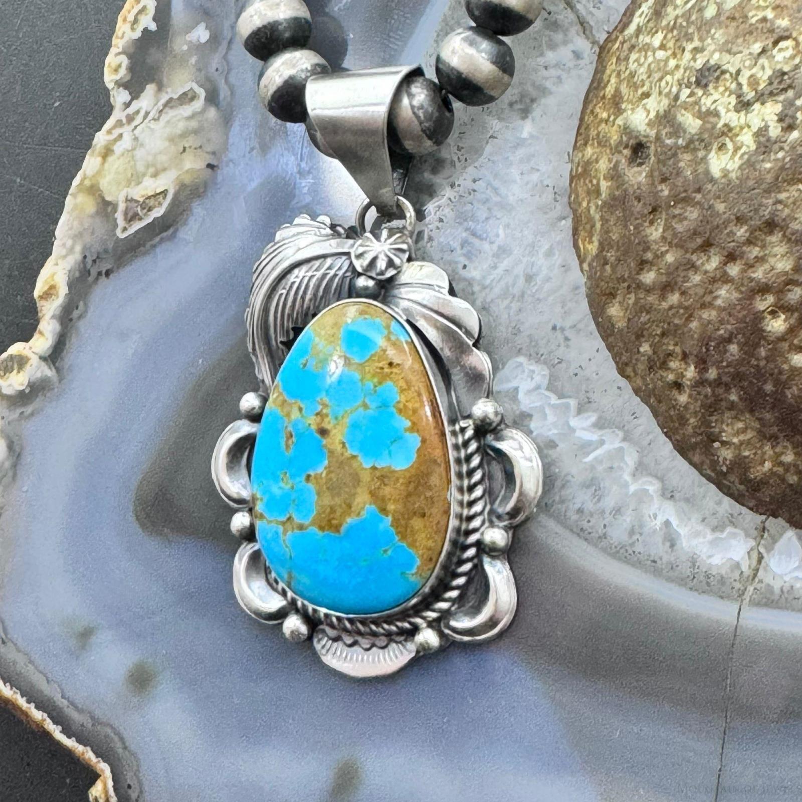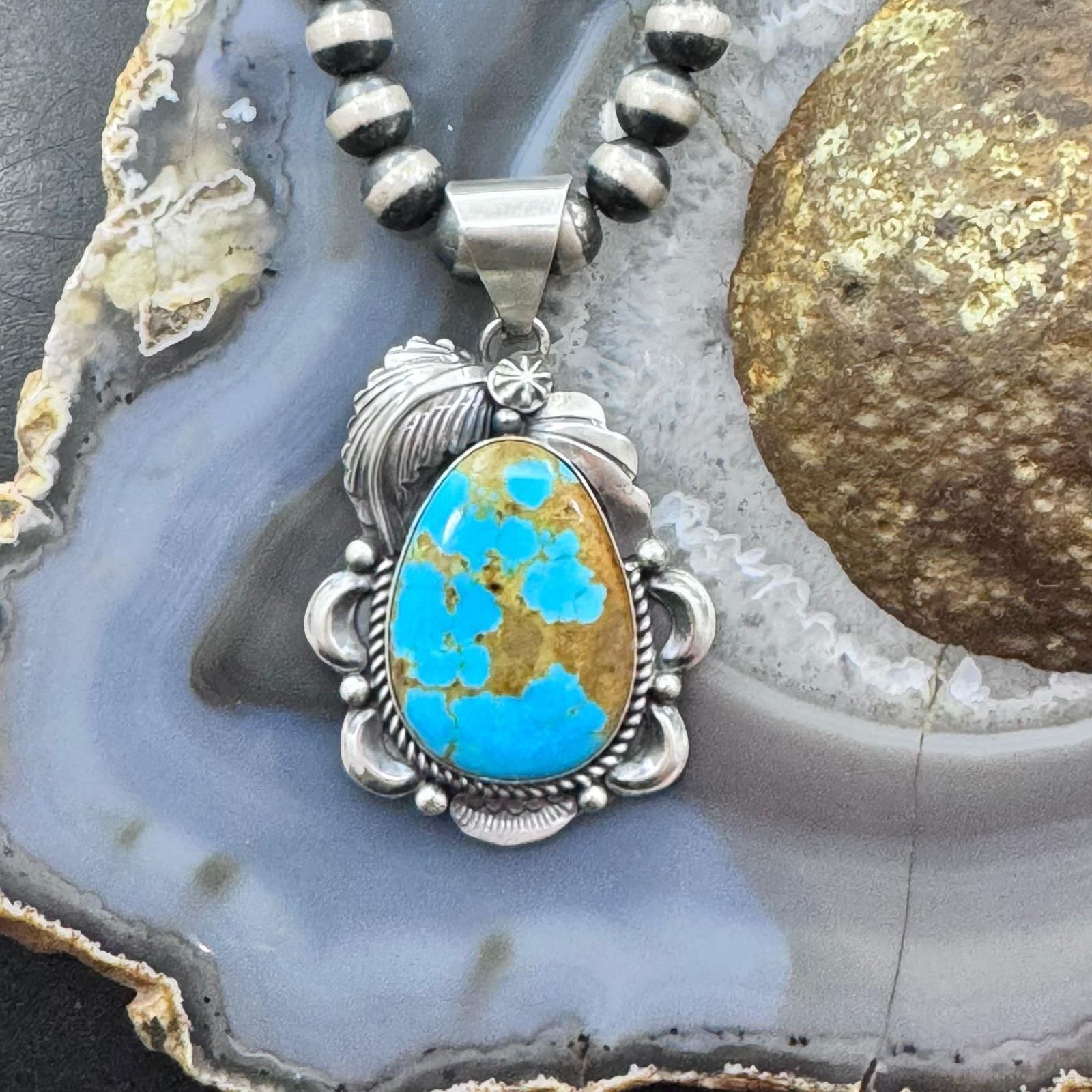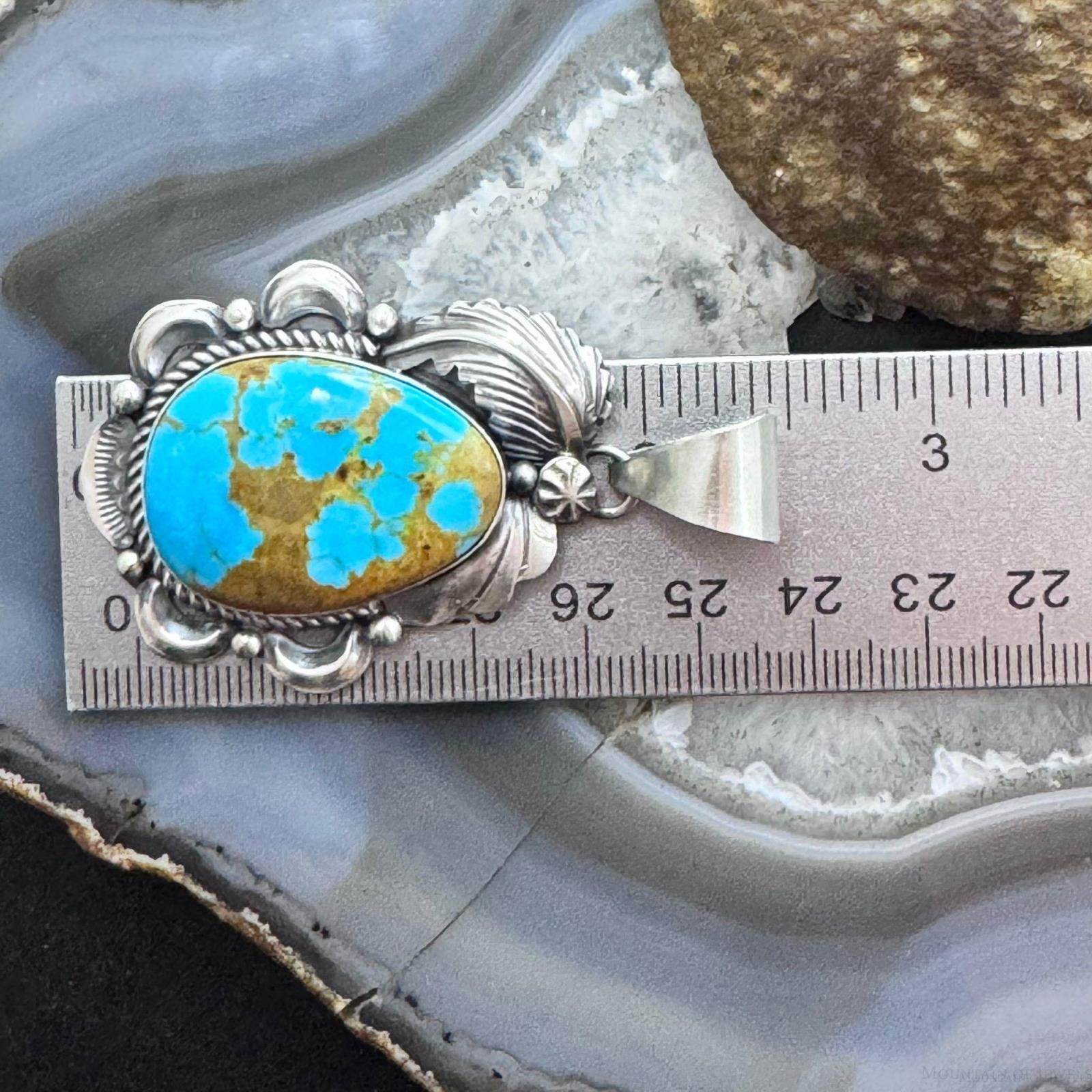 Juanita McDonald Native American Sterling Silver Turquoise Decorated Pendant For Women