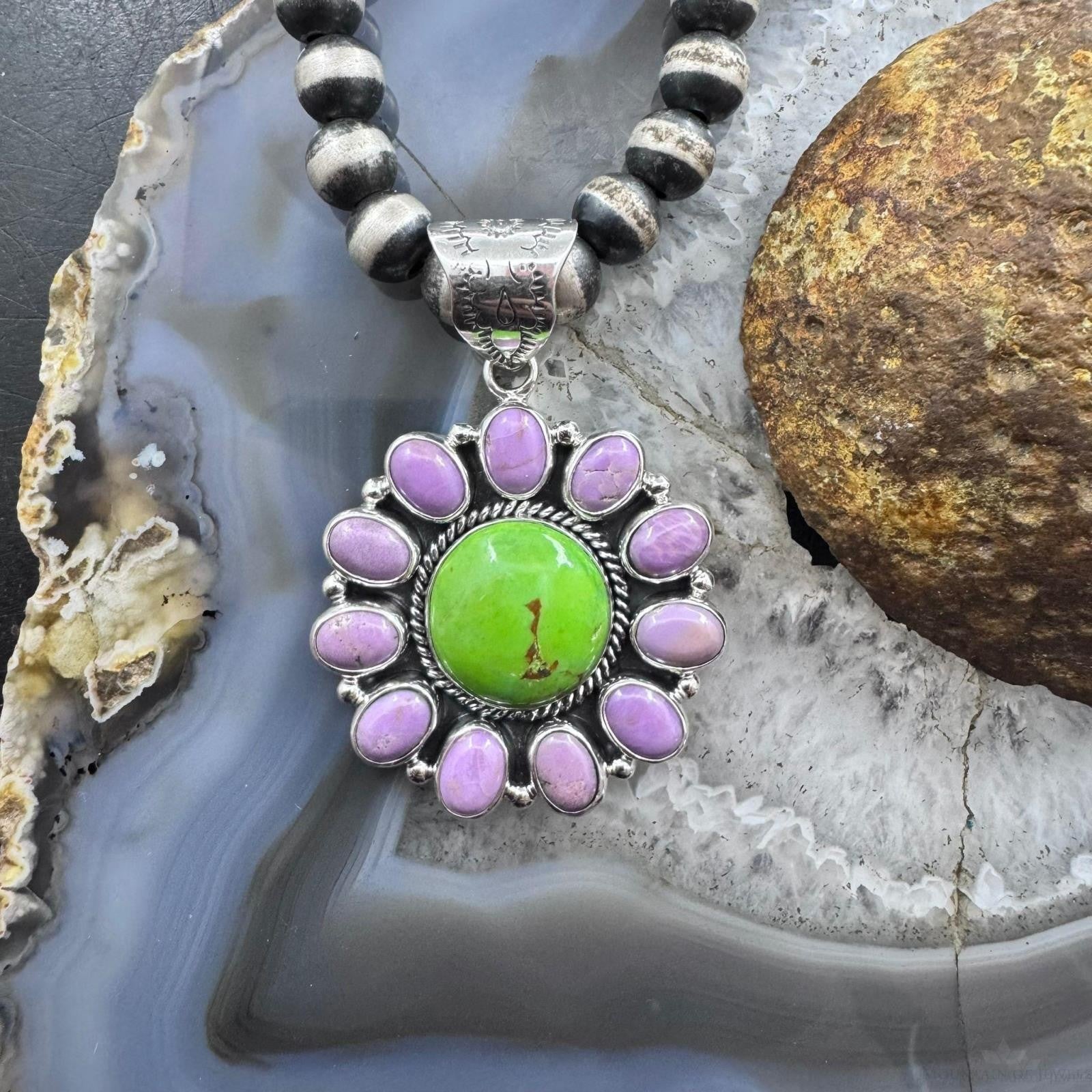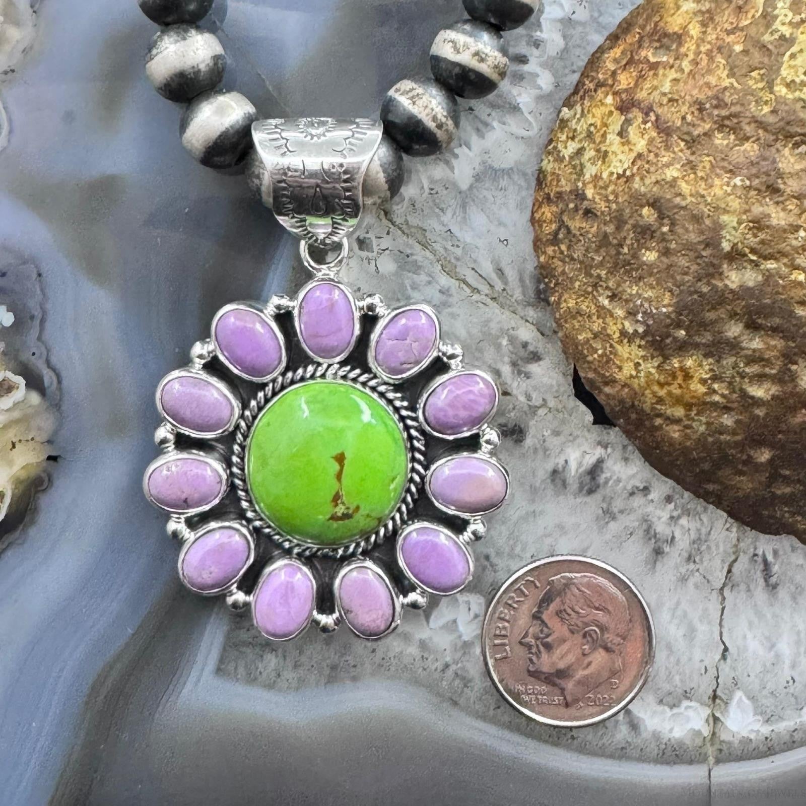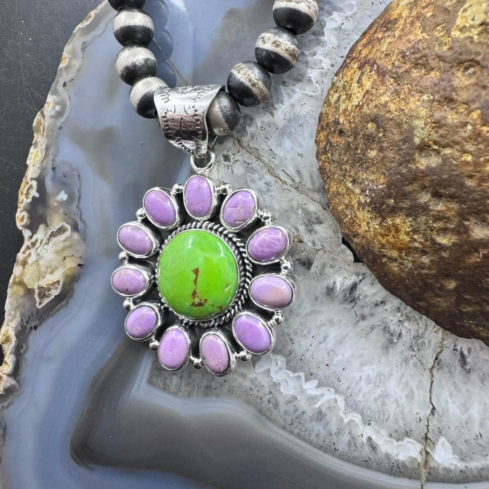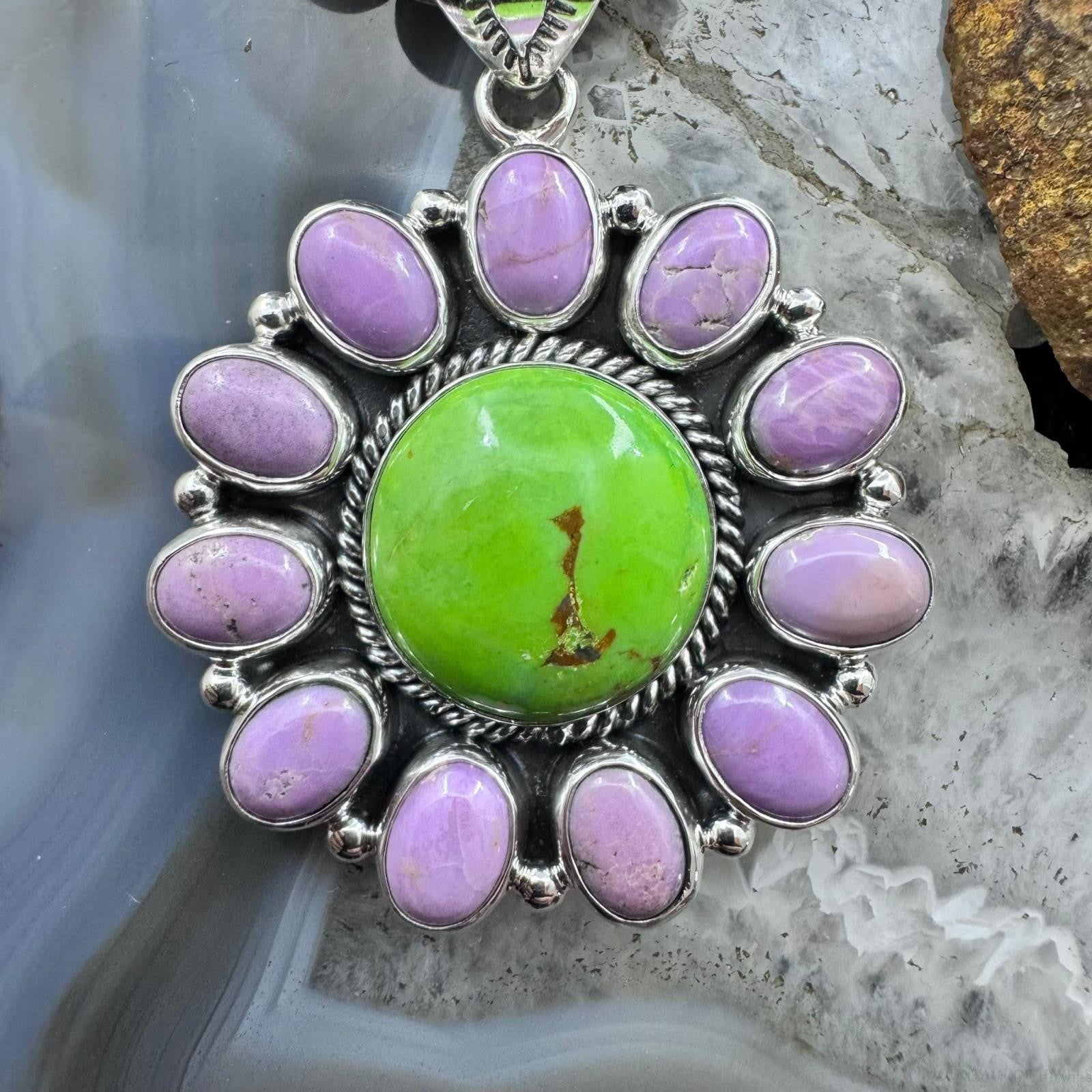 Native American Sterling Silver Green Turquoise w/Phosphosiderite Pendant For Women