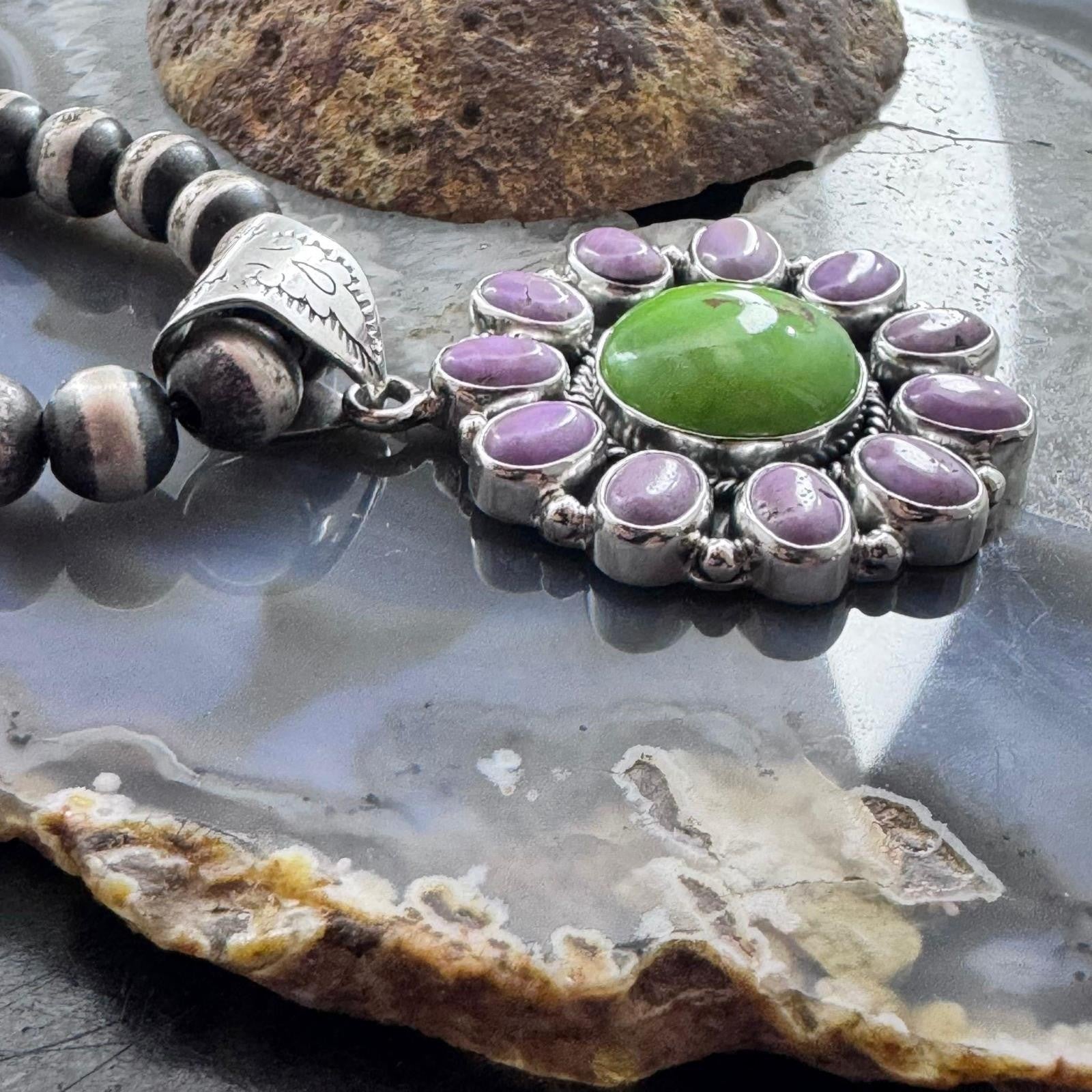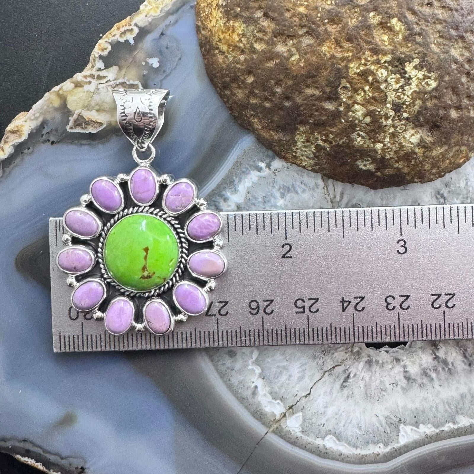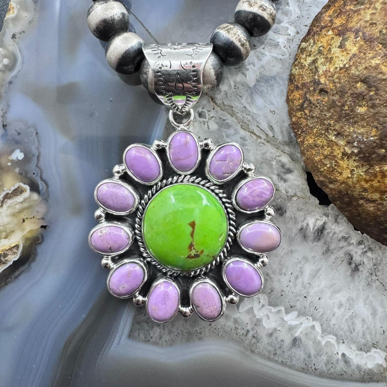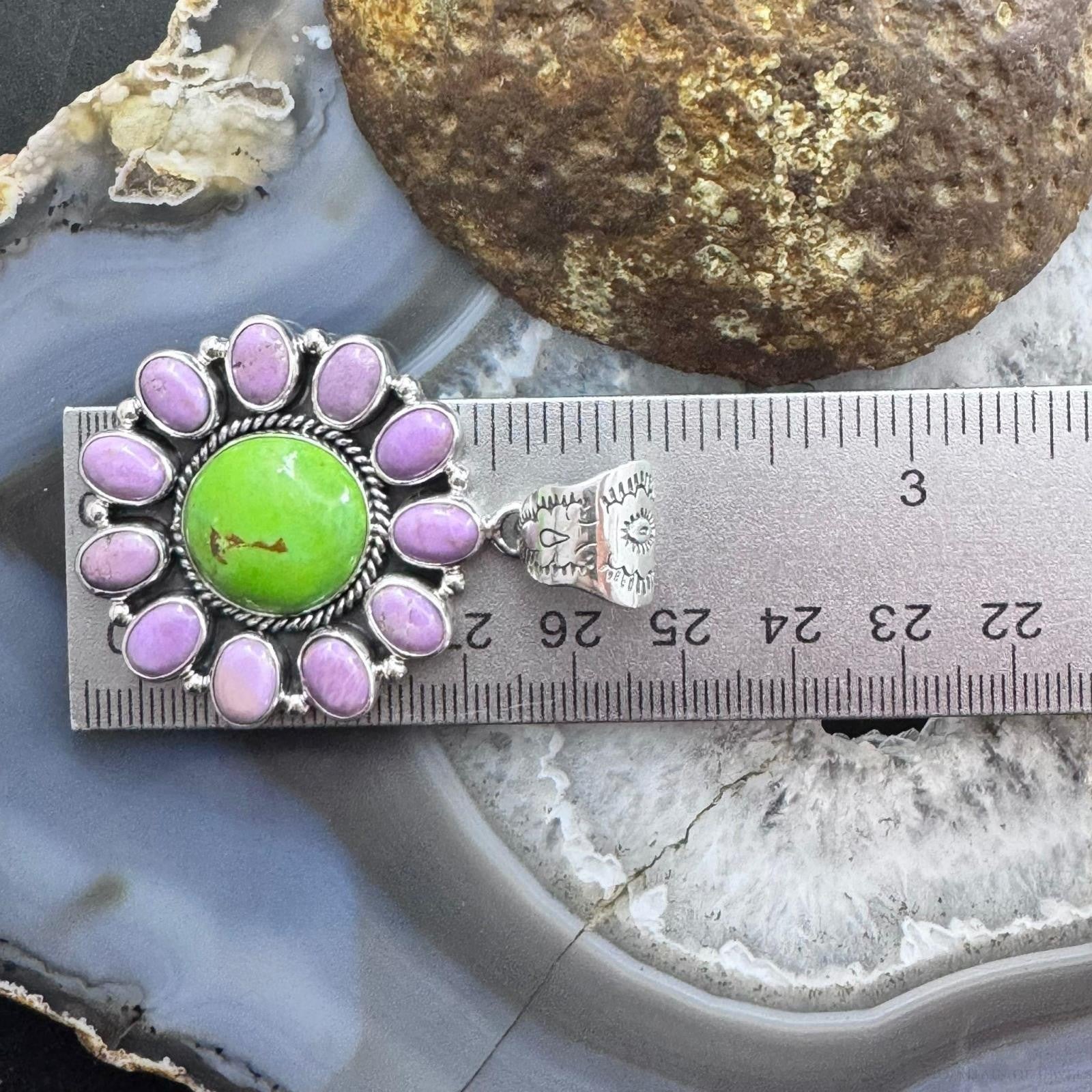 Native American Sterling Silver Green Turquoise w/Phosphosiderite Pendant For Women