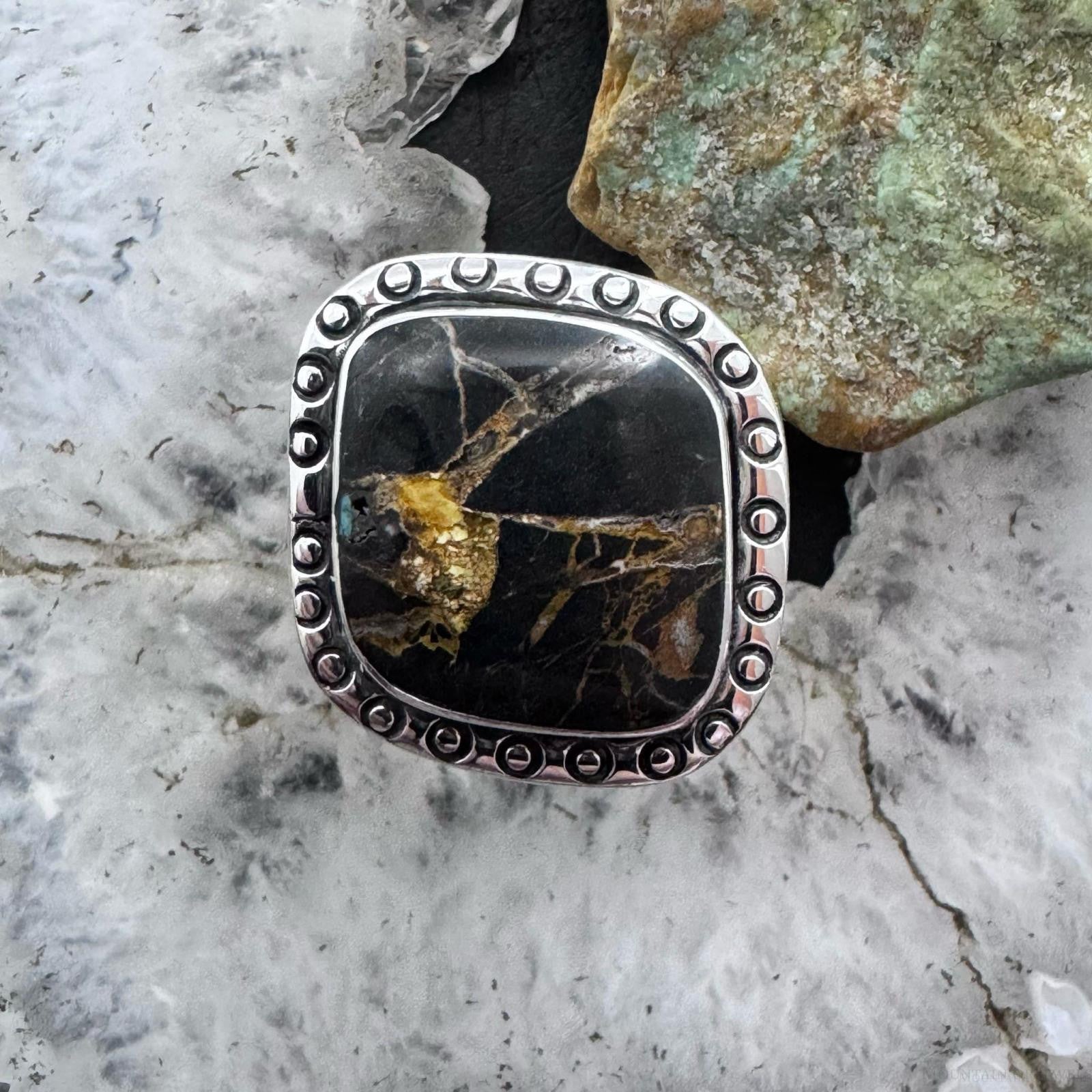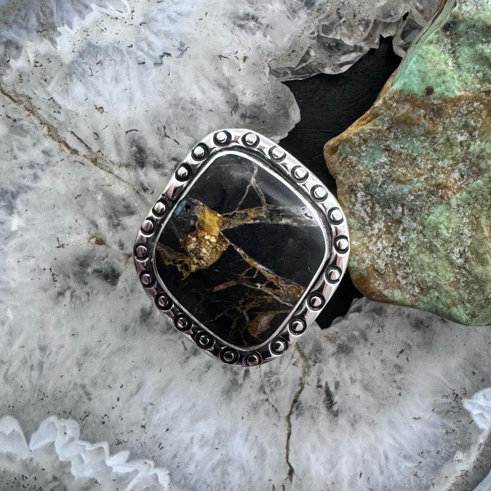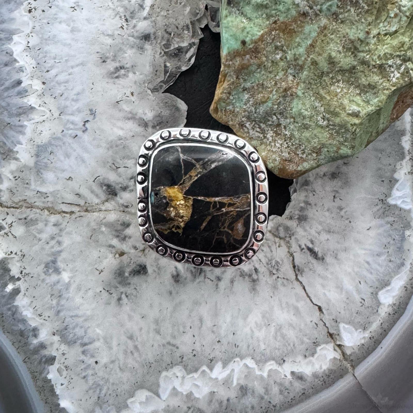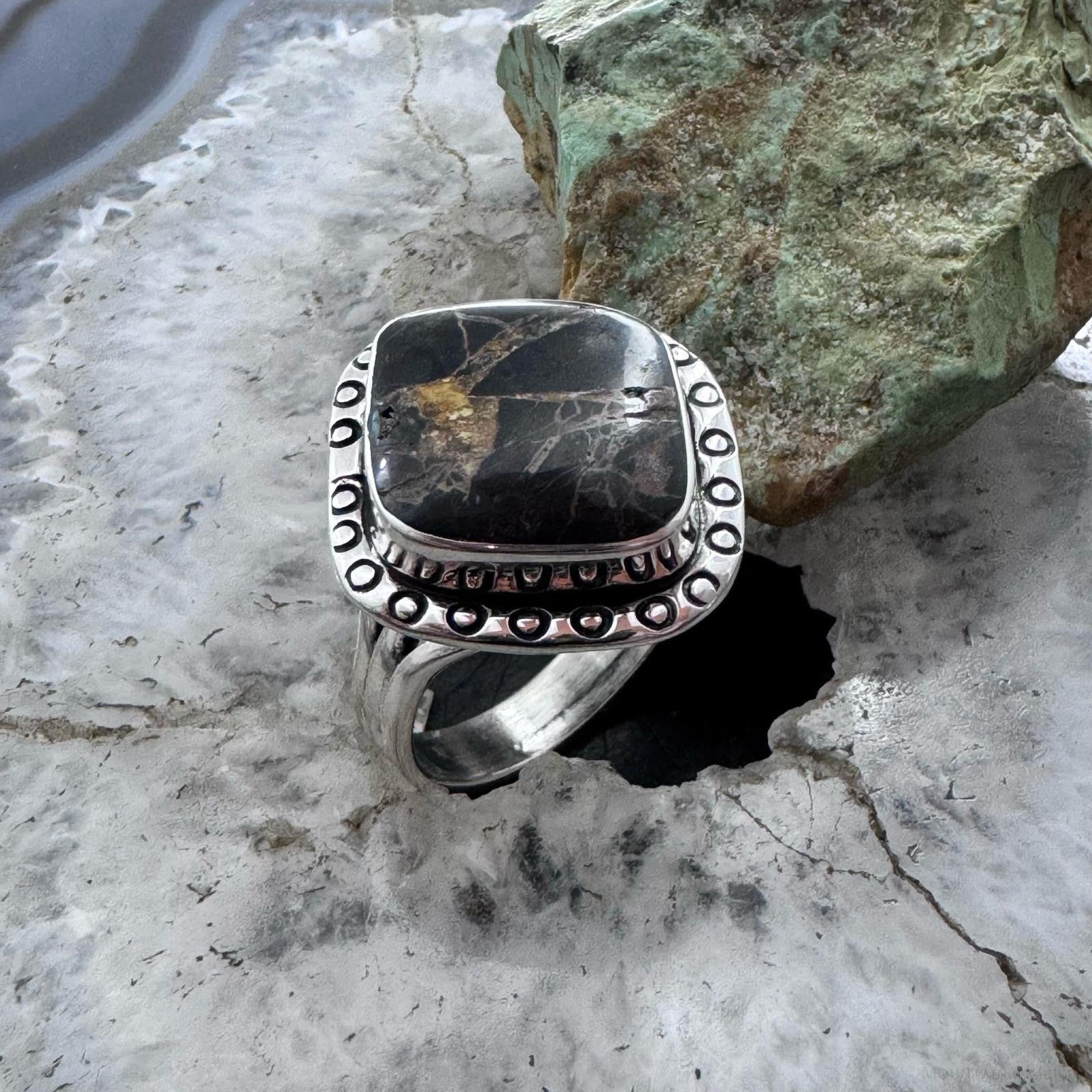 Native American Sterling Silver Blackjack Decorated Ring Size 10 For Women