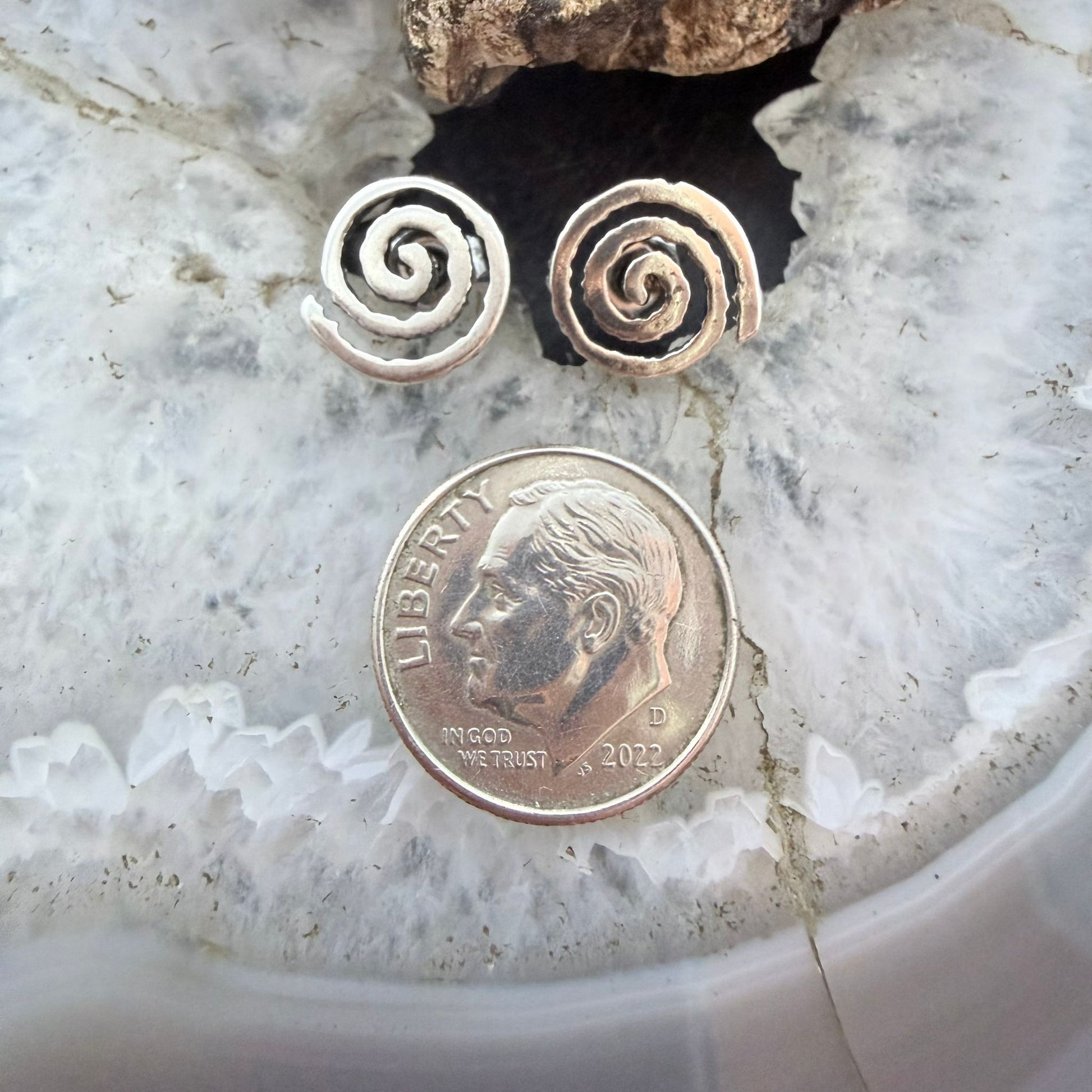 Native American Sterling Silver Swirl Circle of Life Stud Earrings For Women