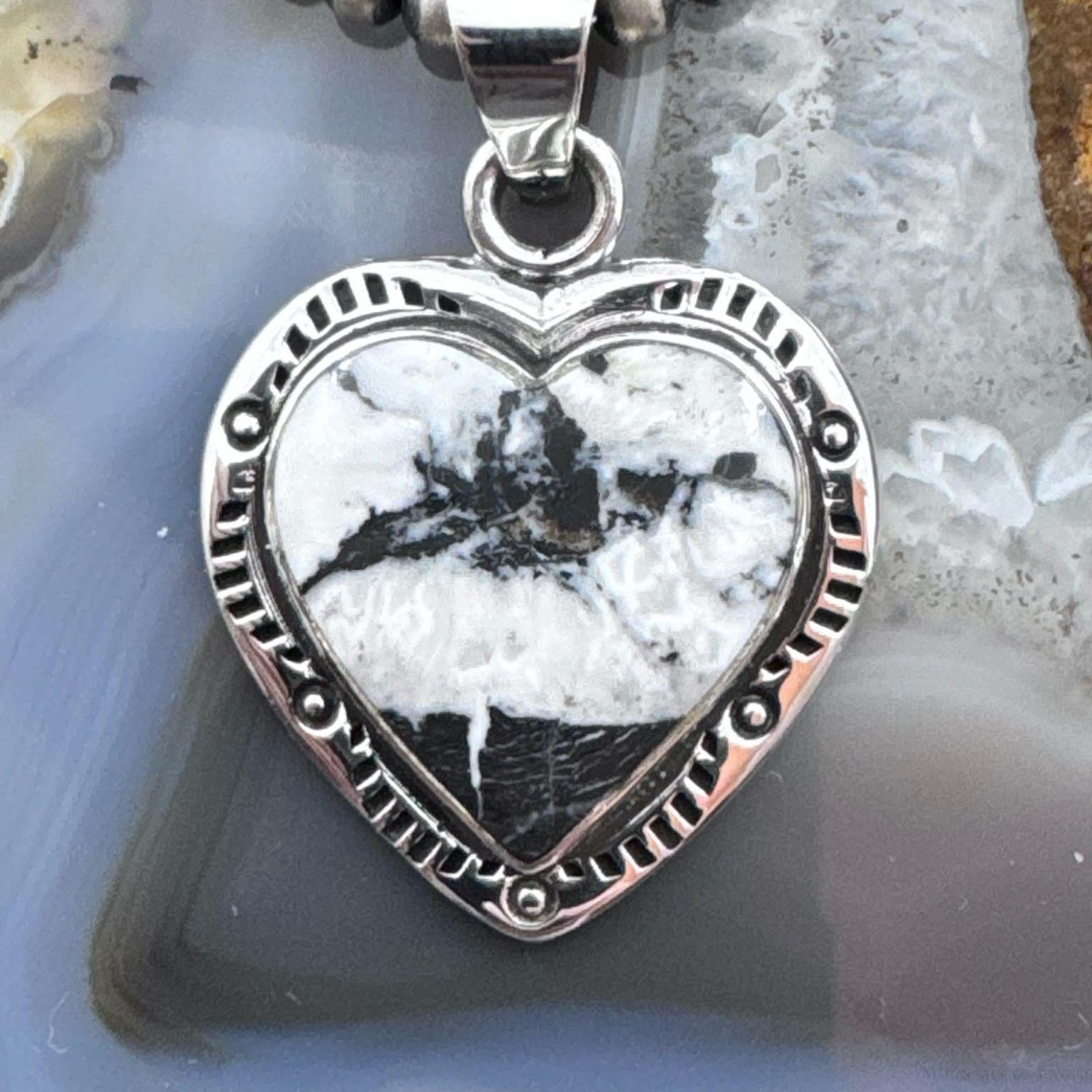 Native American Sterling Silver White Buffalo Heart Pendant For Women