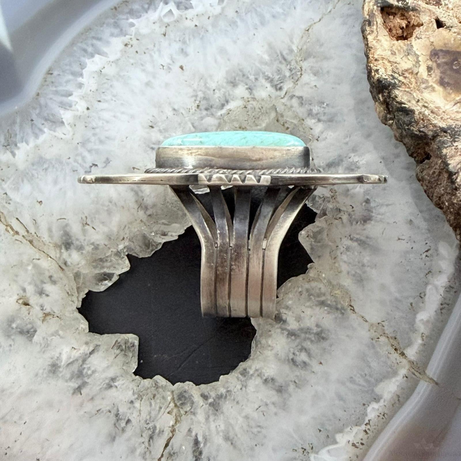 Richard Wylie Native American Sterling Silver Turquoise Decorated Ring Size 6.5 For Women