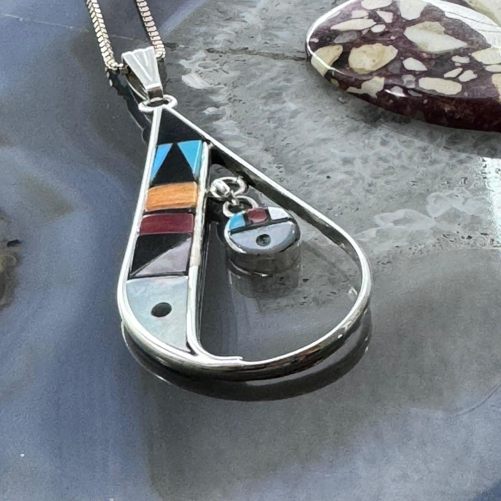 Sheryl Edaakie Zuni Sterling Silver Multistone Inlay Teardrop Pendant For Women #3
