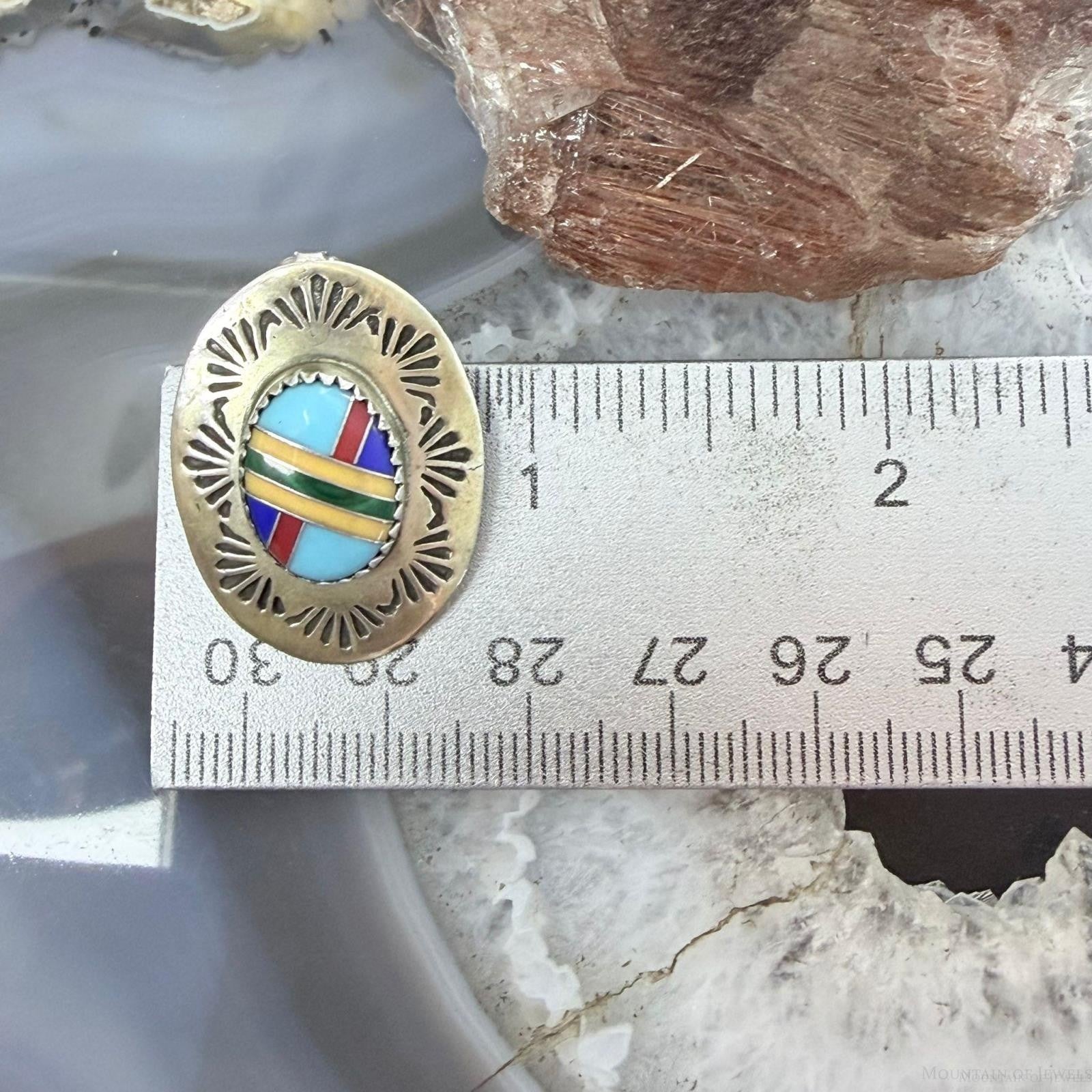 Signed Native American Sterling Silver Multi Stone Inlay Post Earrings For Women