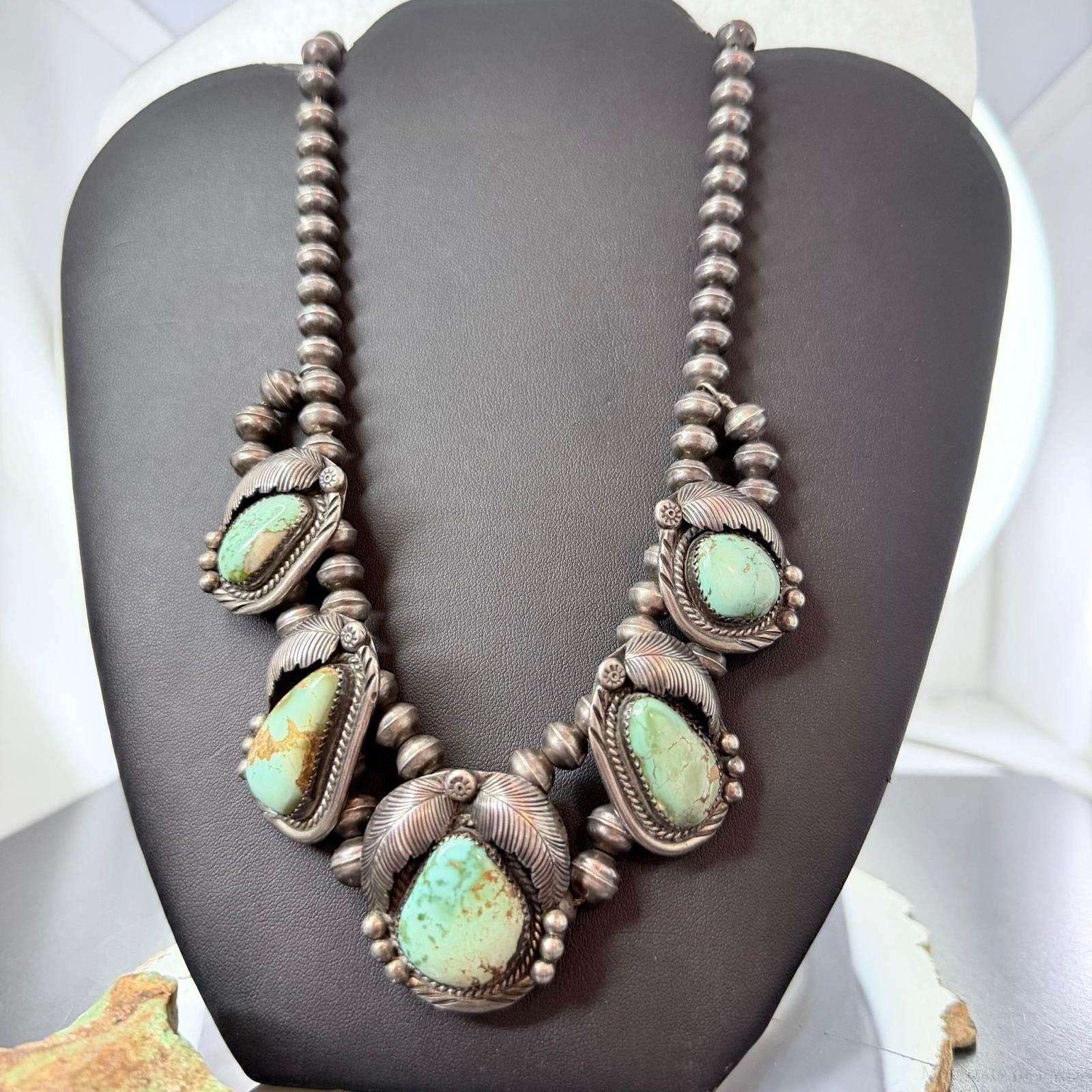 Signed Vintage Native American Sterling Silver Royston Turquoise Necklace For Women