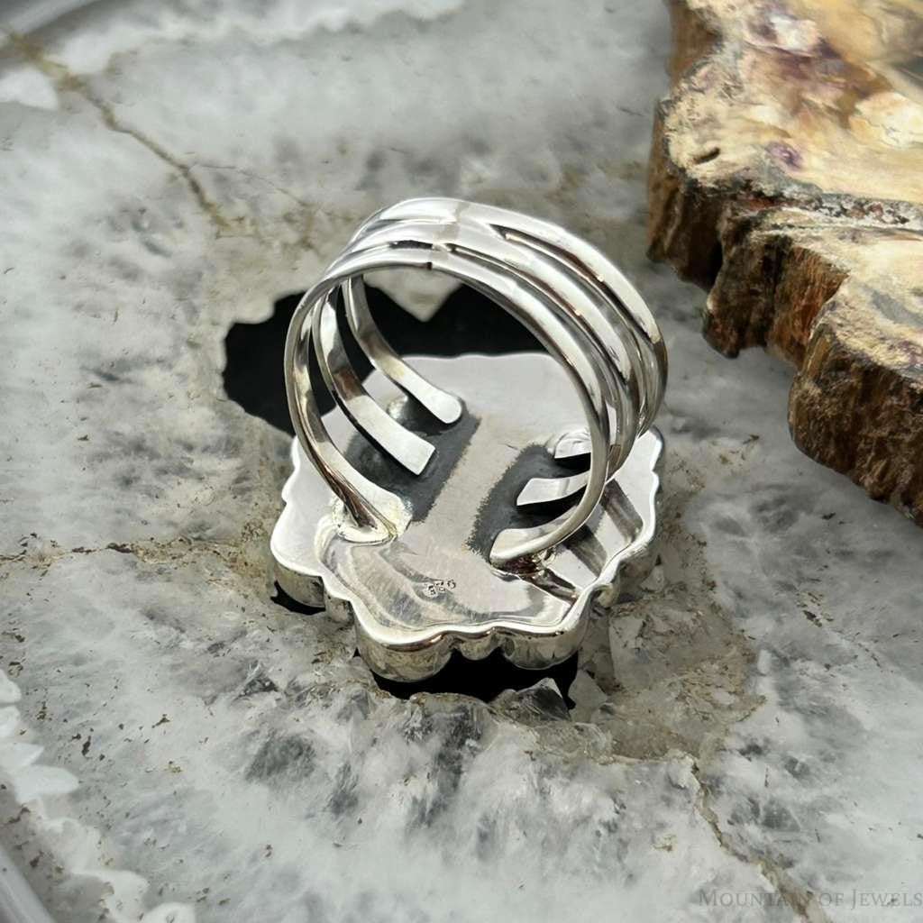 Sterling Silver Southwestern Style Mohave Turquoise Cluster Ring Size 7.5 For Women