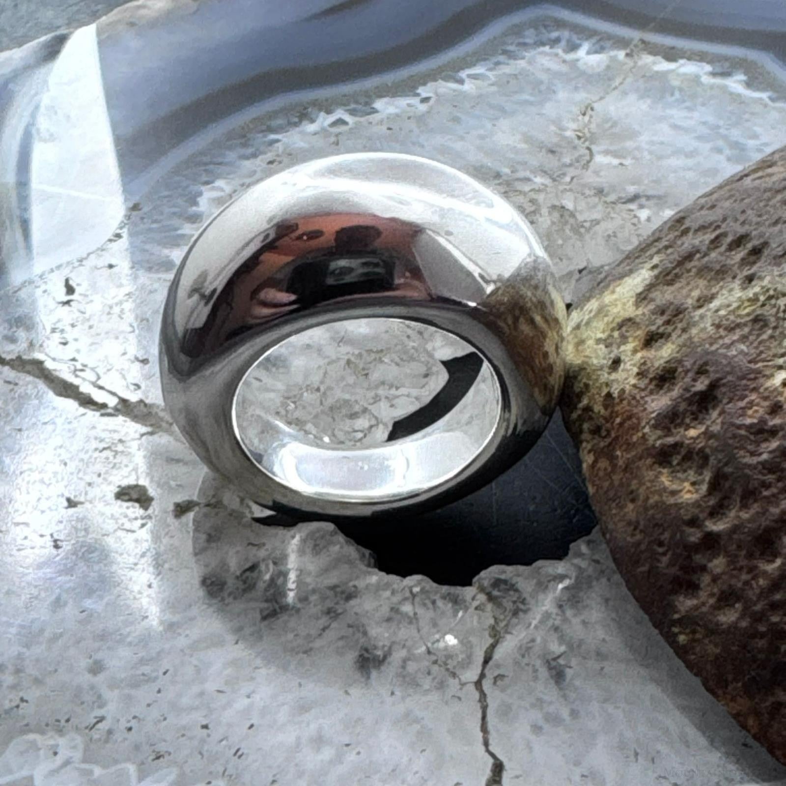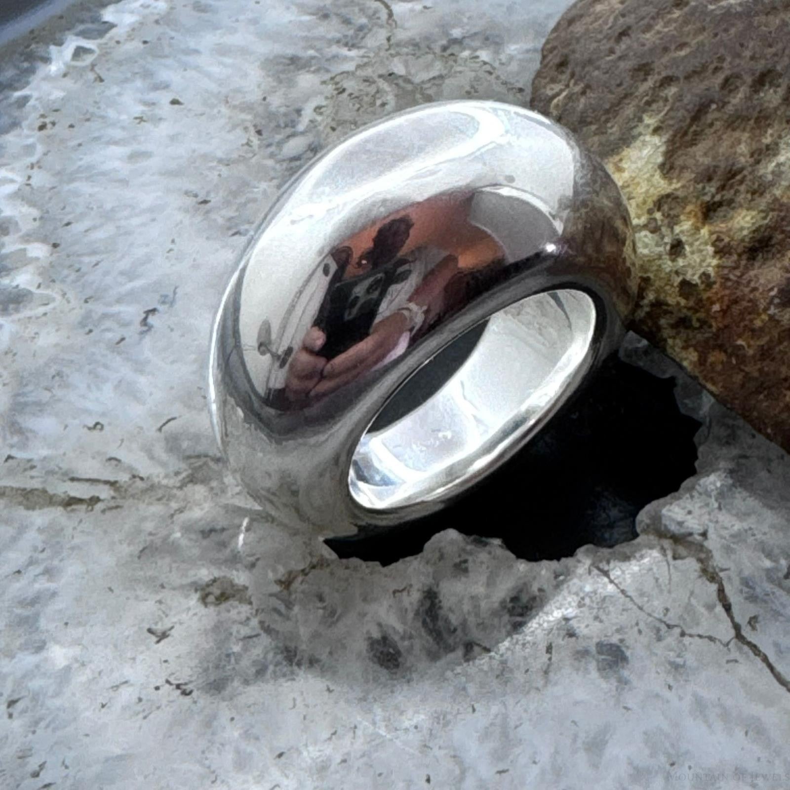 Sterling Silver Electroform Tapered Round Dome Fashion Ring For Women, Taxco Mexico