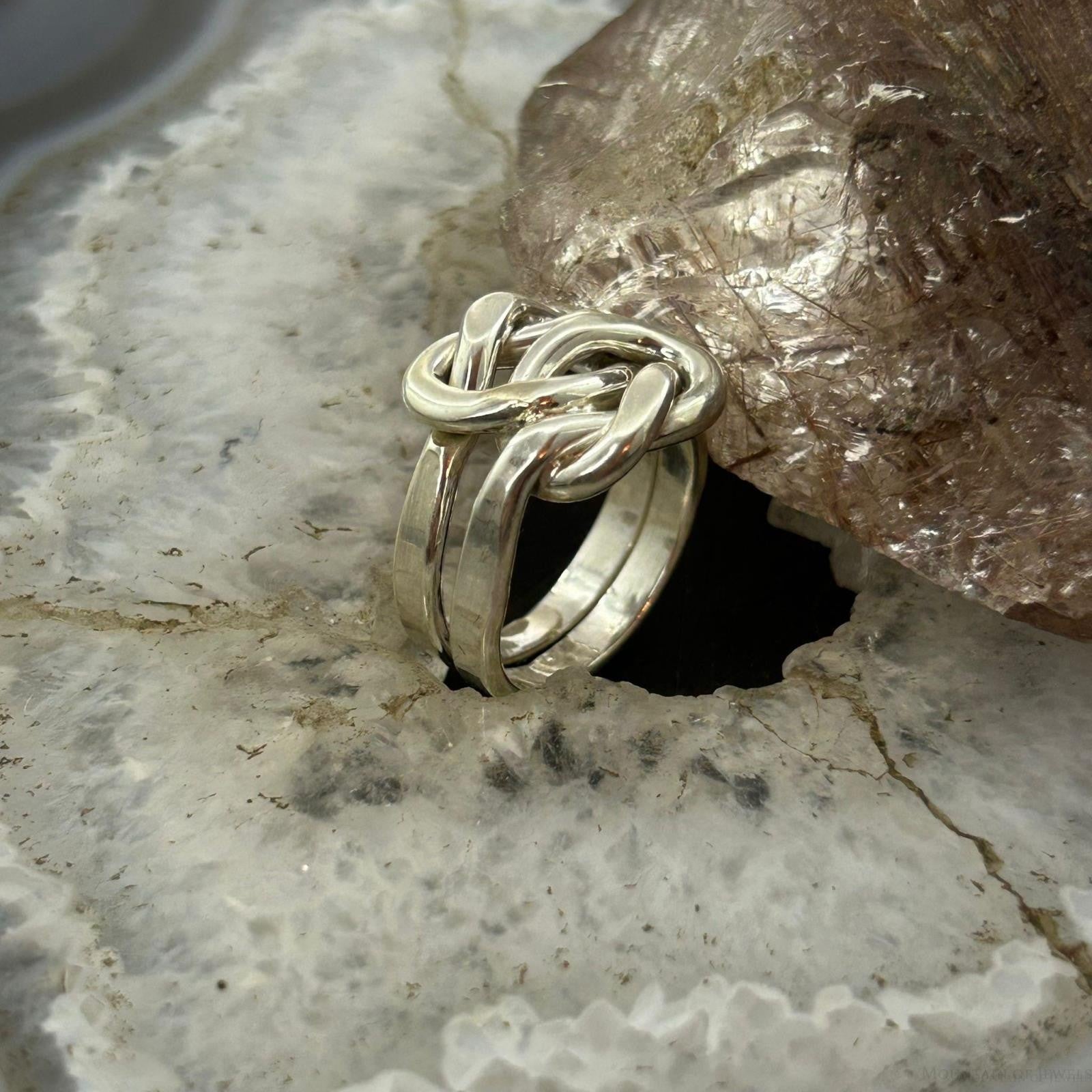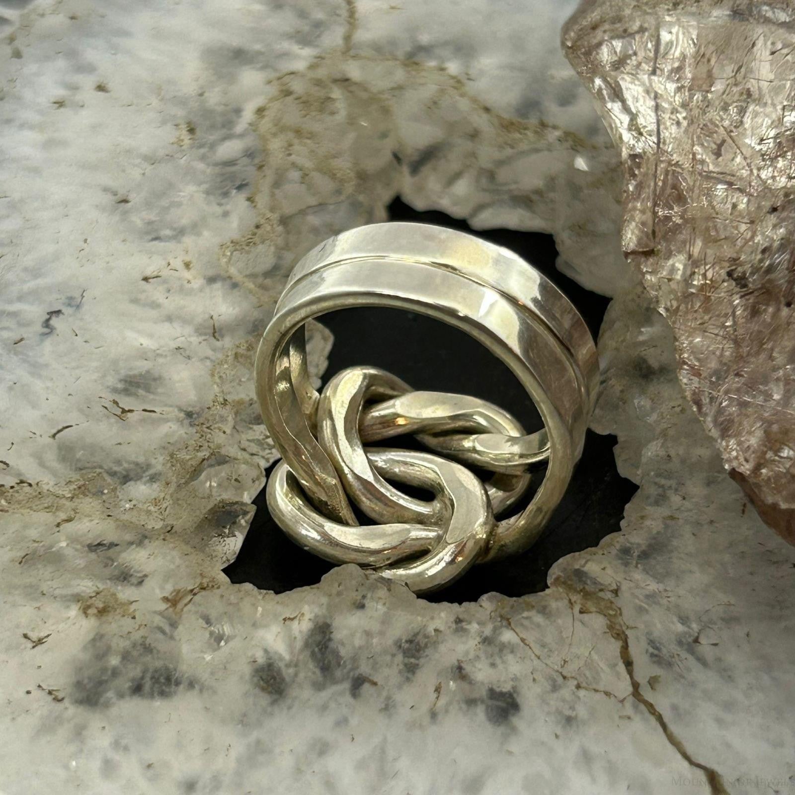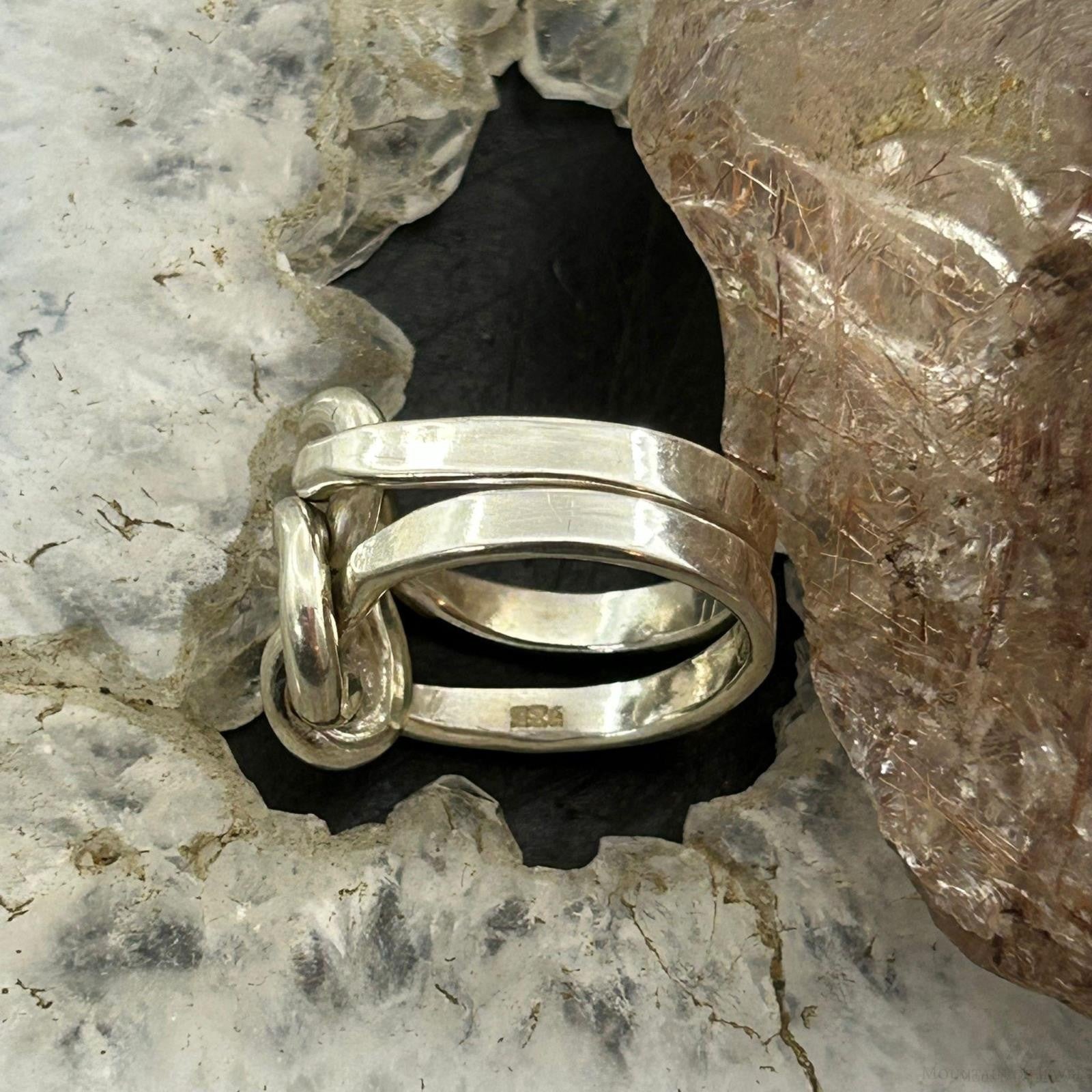 Sterling Silver Double Knotted Modern Ring For Women, Taxco Mexico