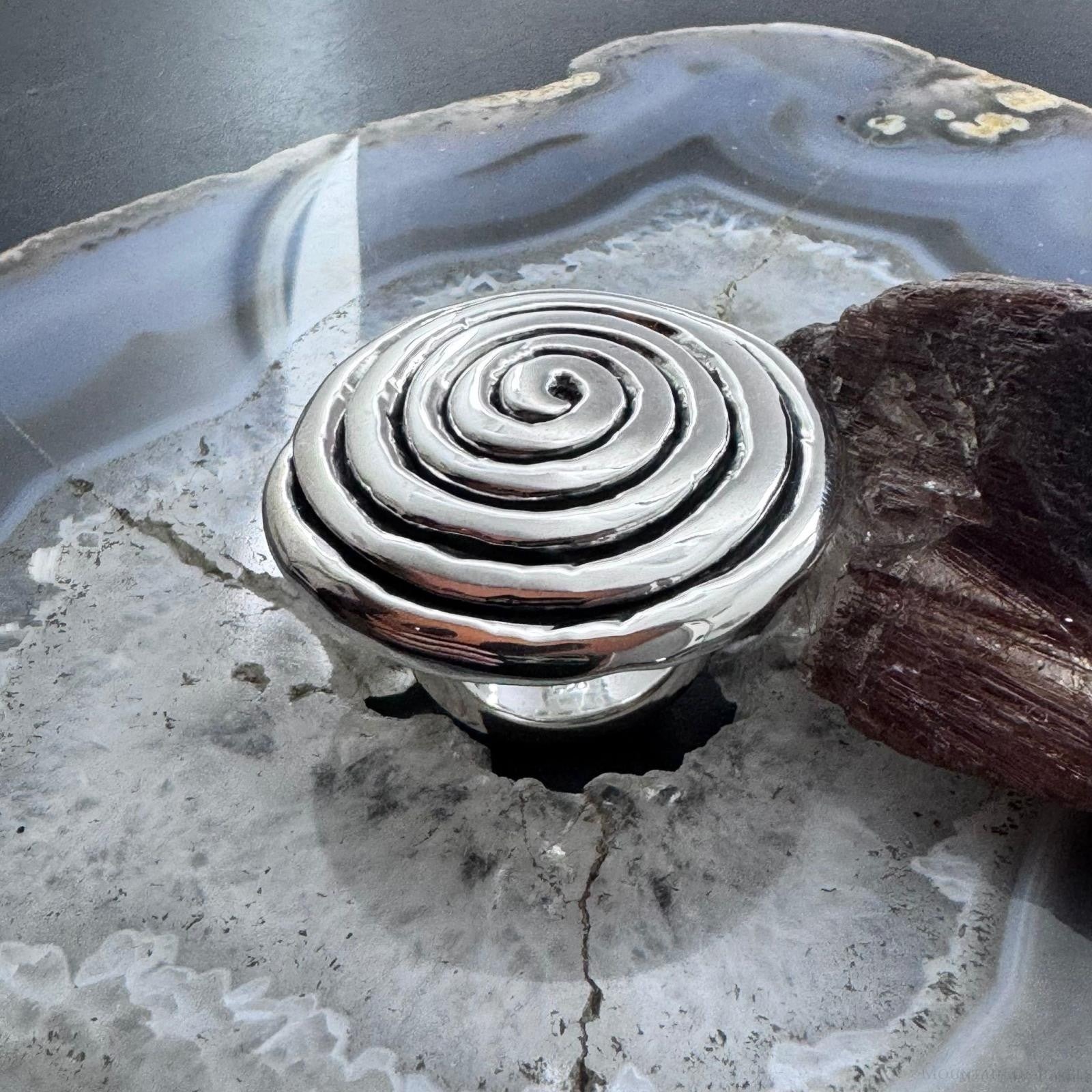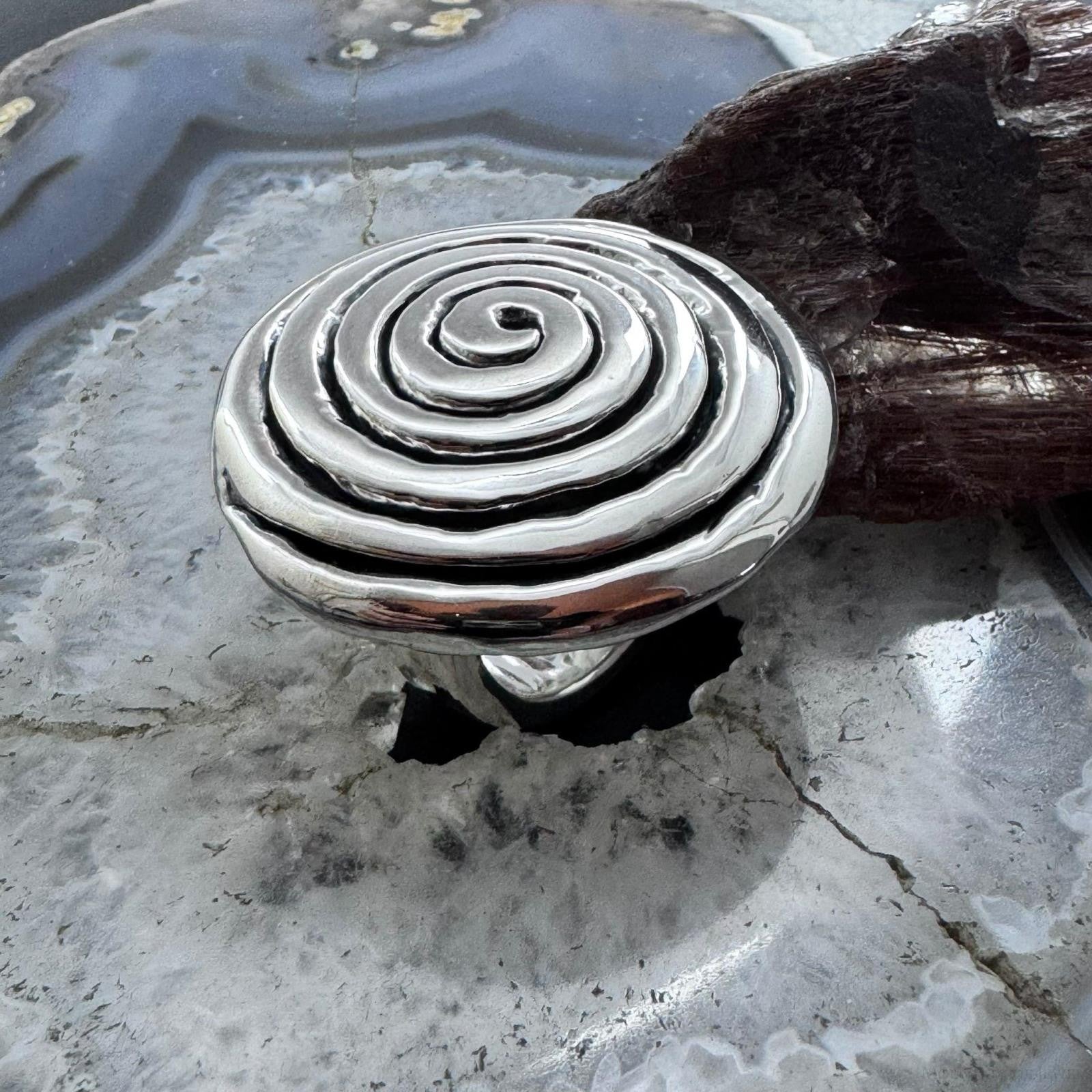 Sterling Silver Electroform Spiral Fashion Ring For Women, Taxco Mexico
