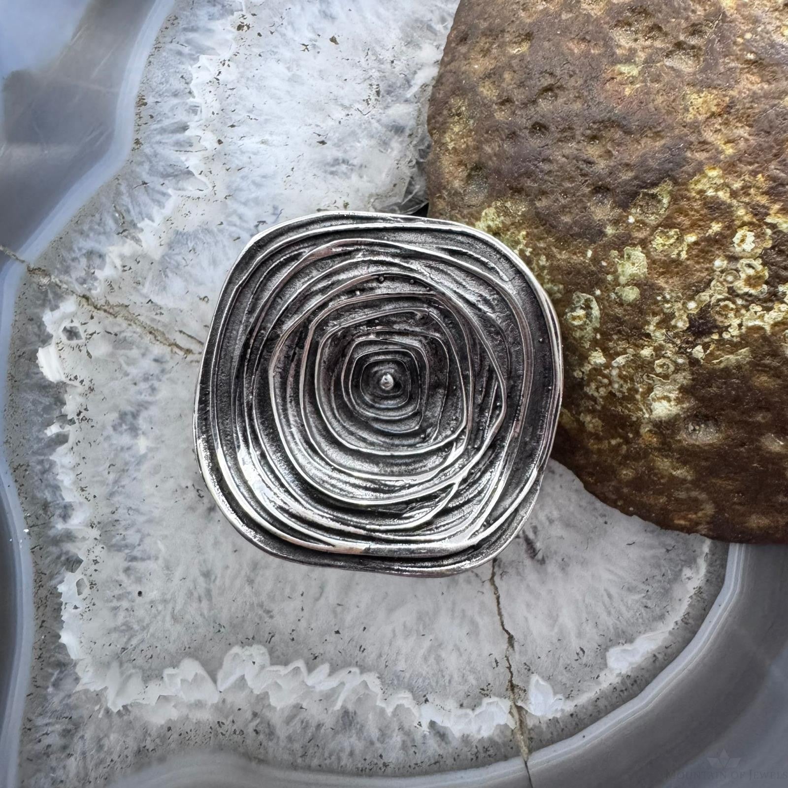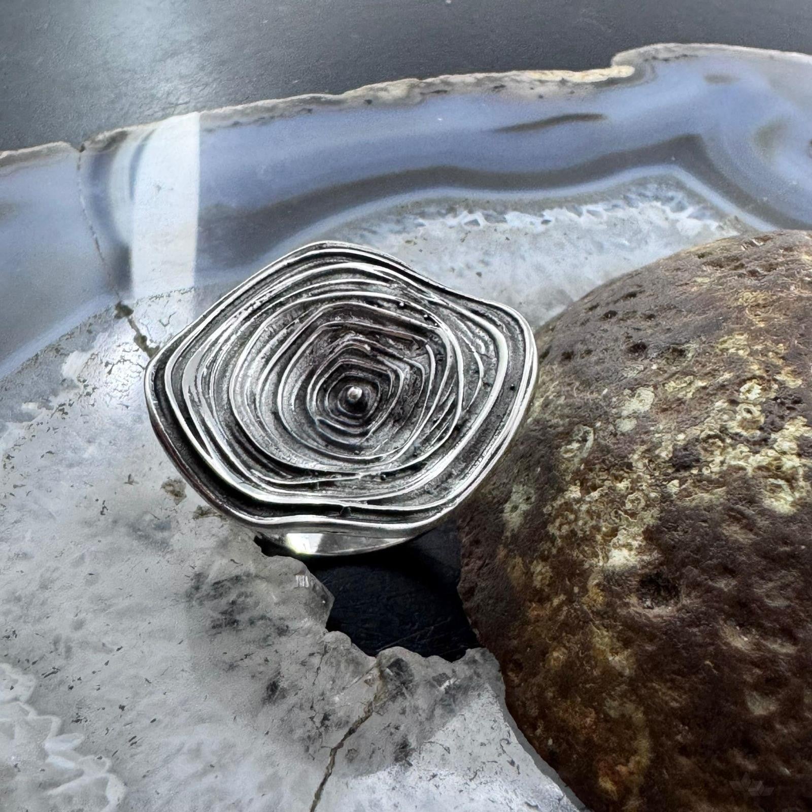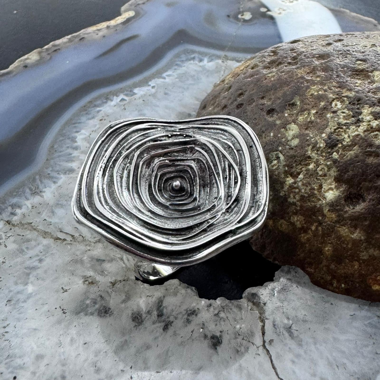 Sterling Silver Round Swirly Pattern Solid Fashion Ring For Women, Taxco Mexico