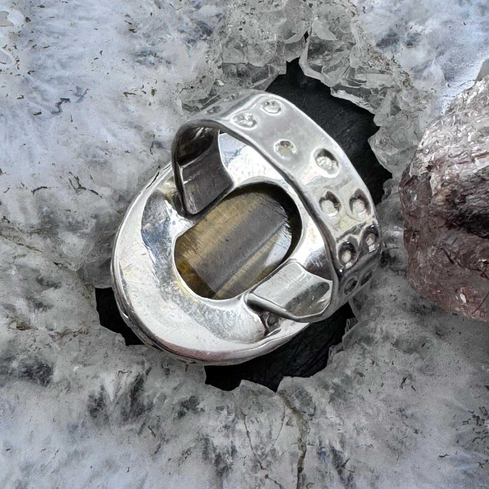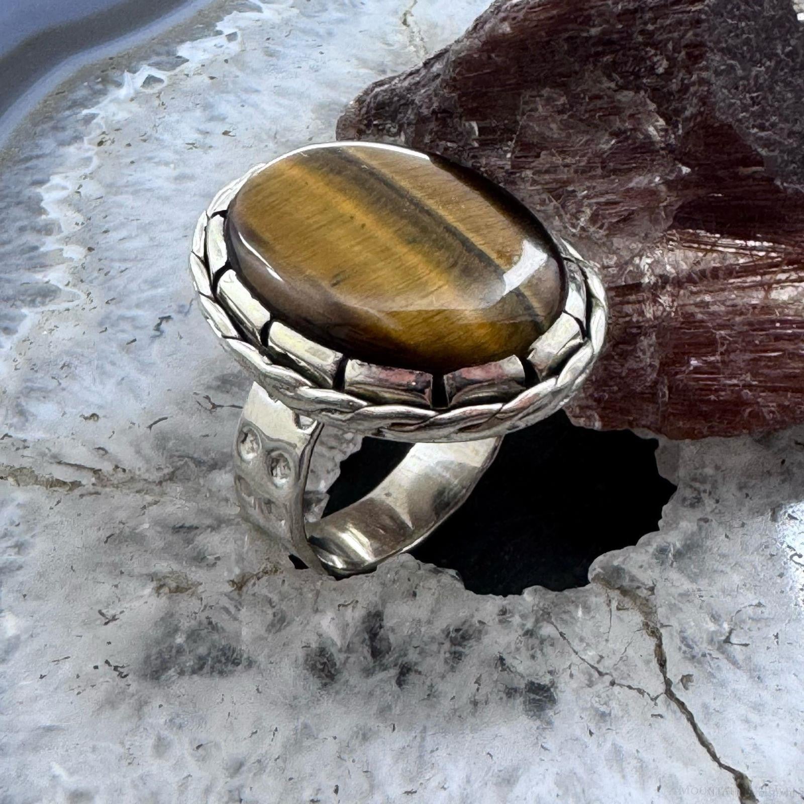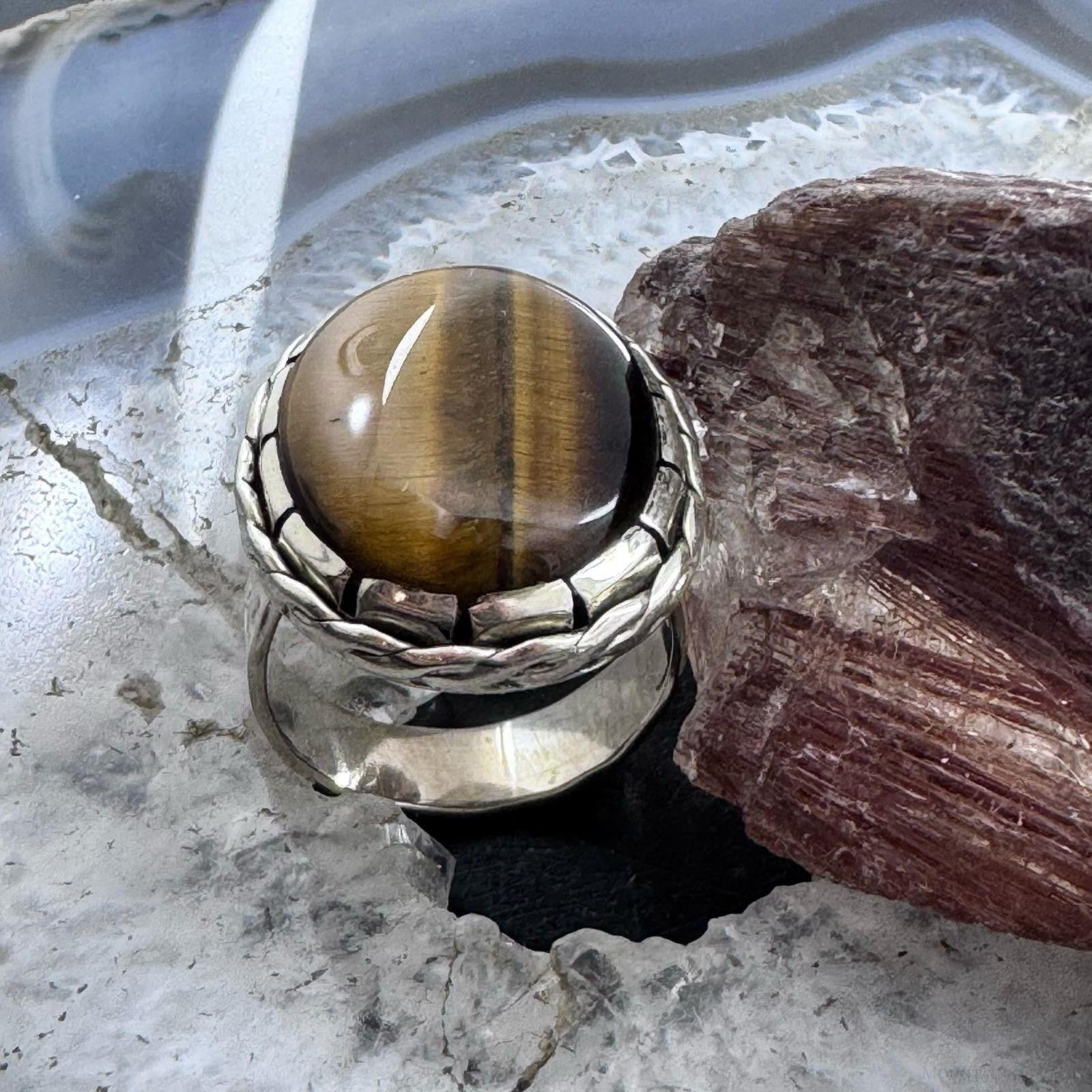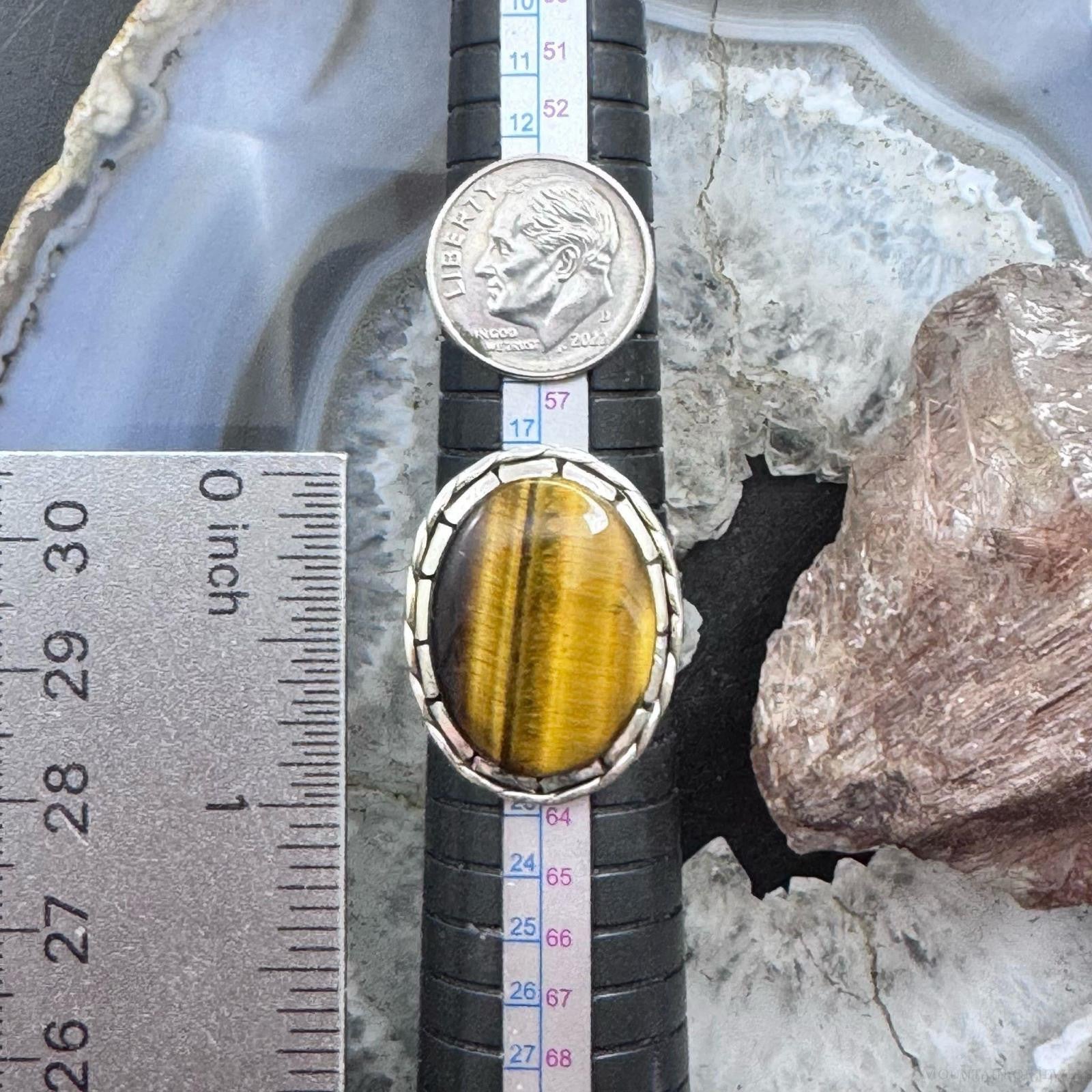 Sterling Silver Southwestern Oval Tiger's Eye Decorated Ring Size 9.5 For Women