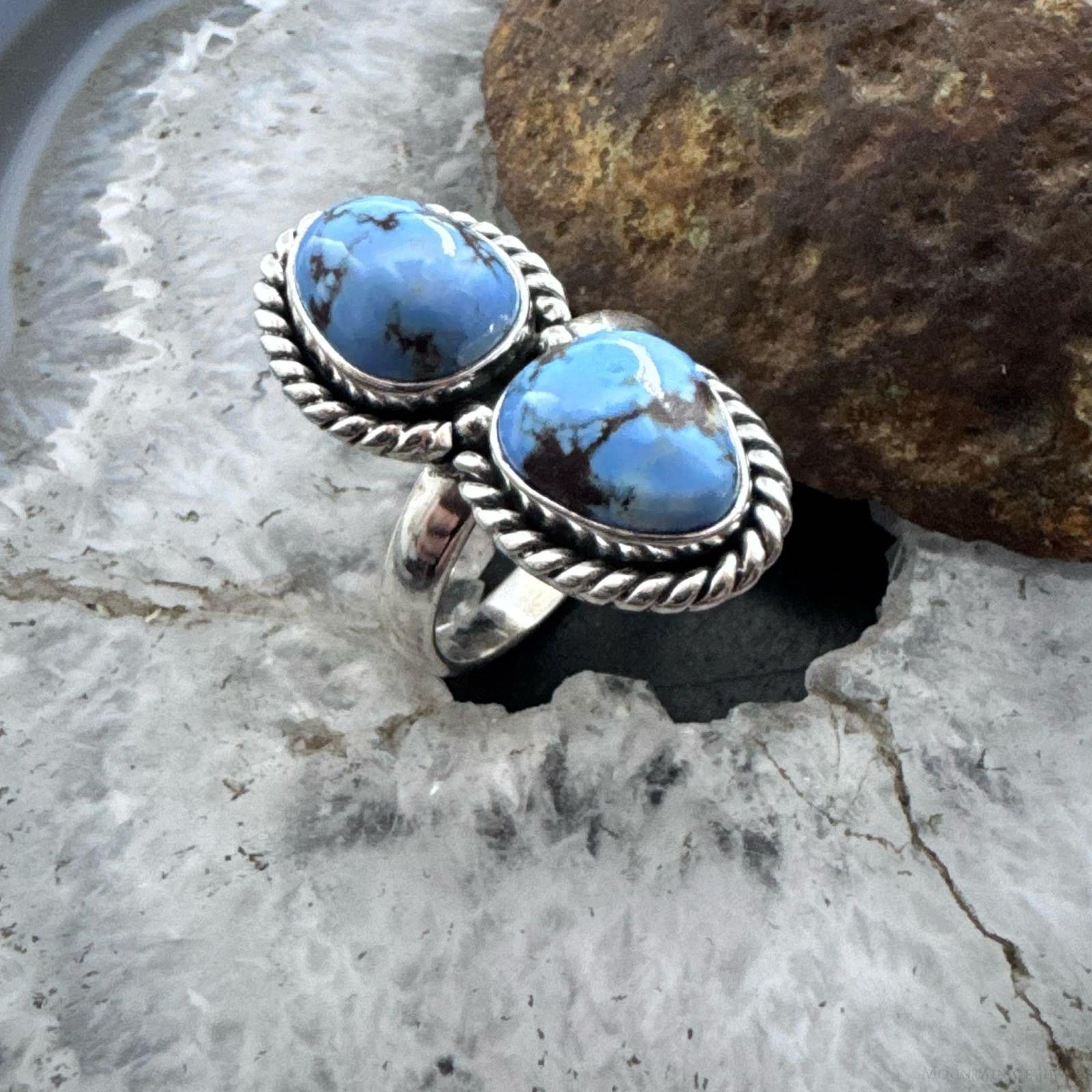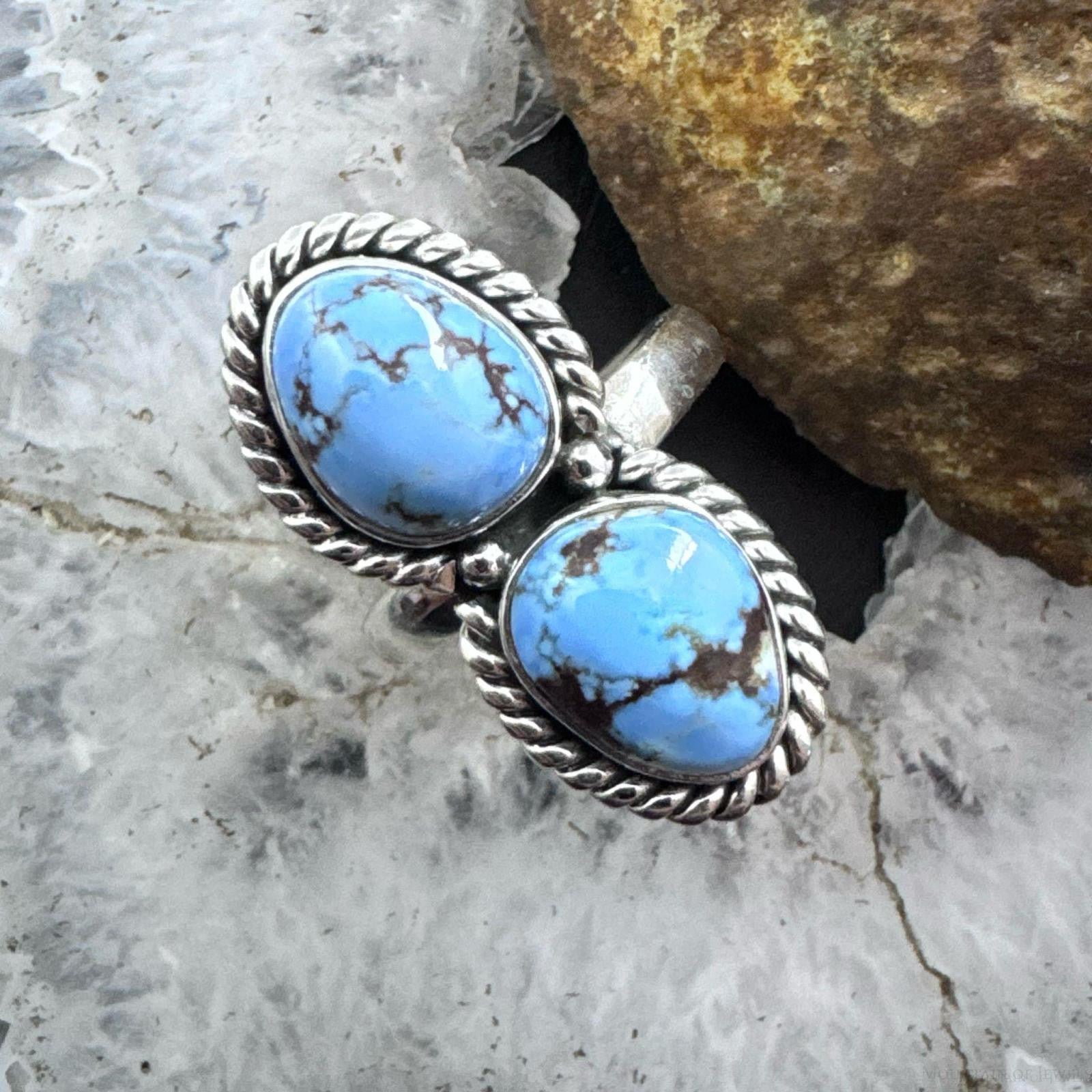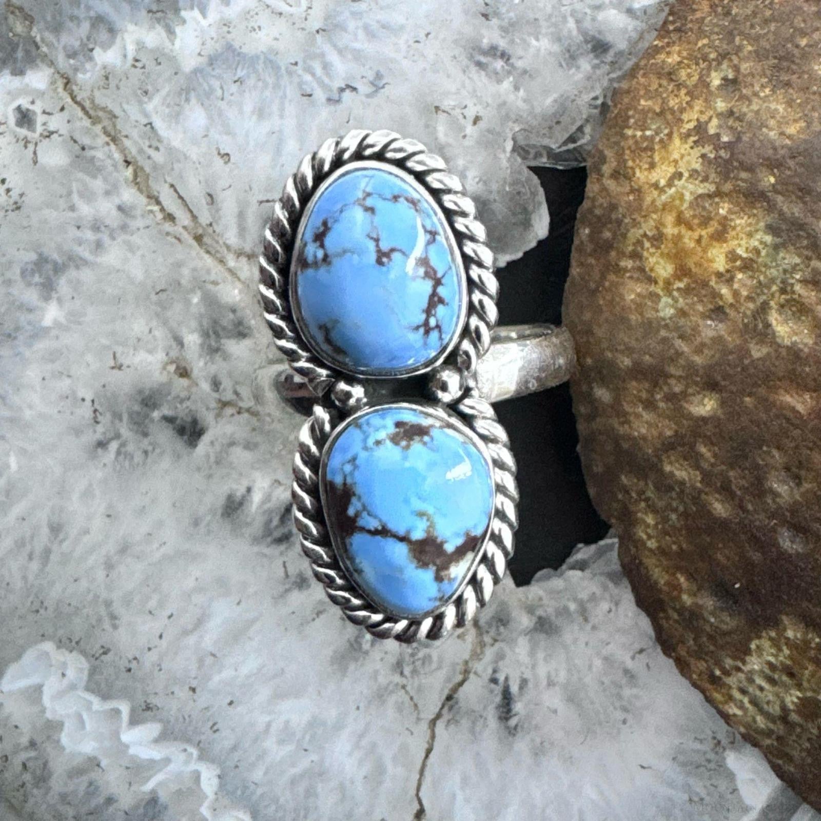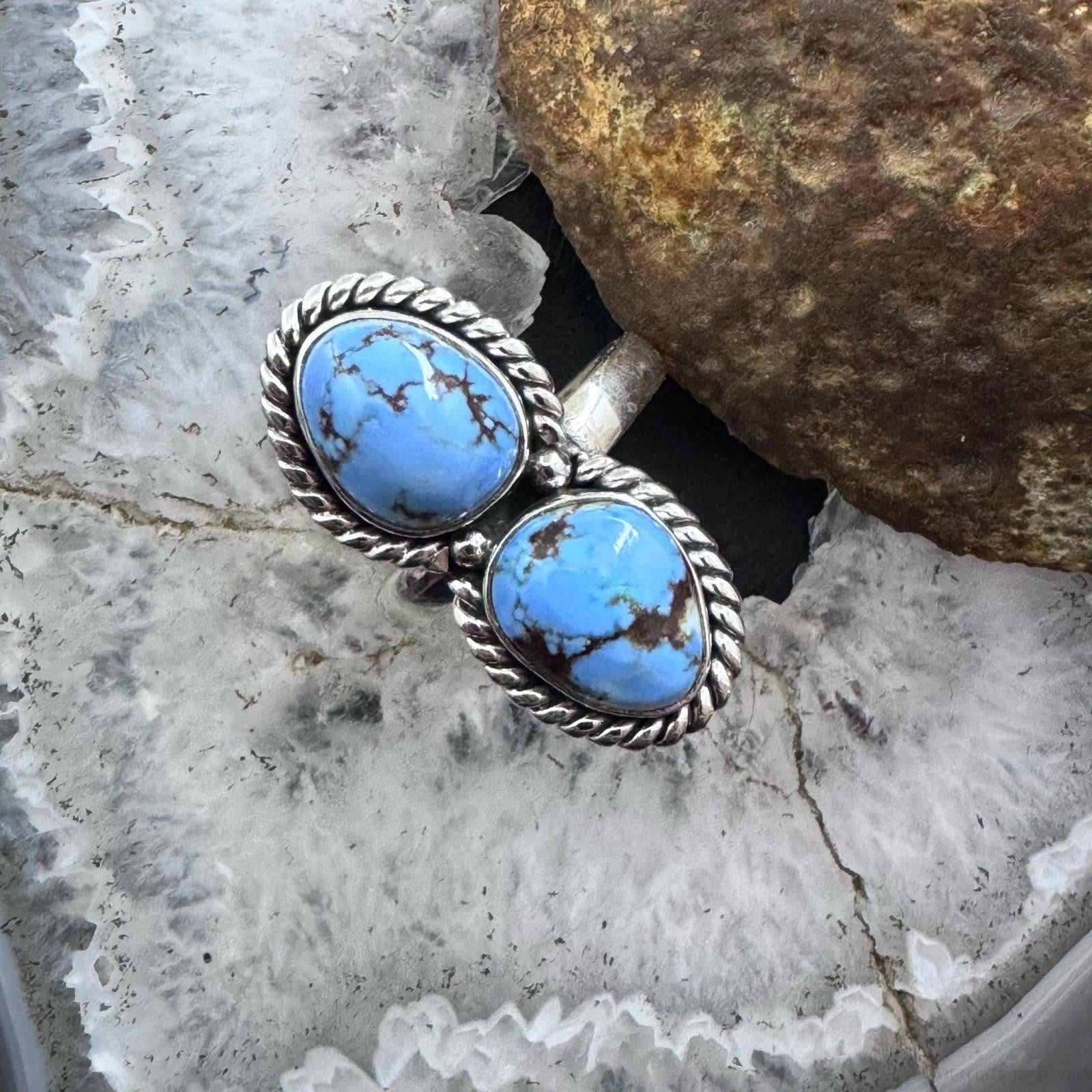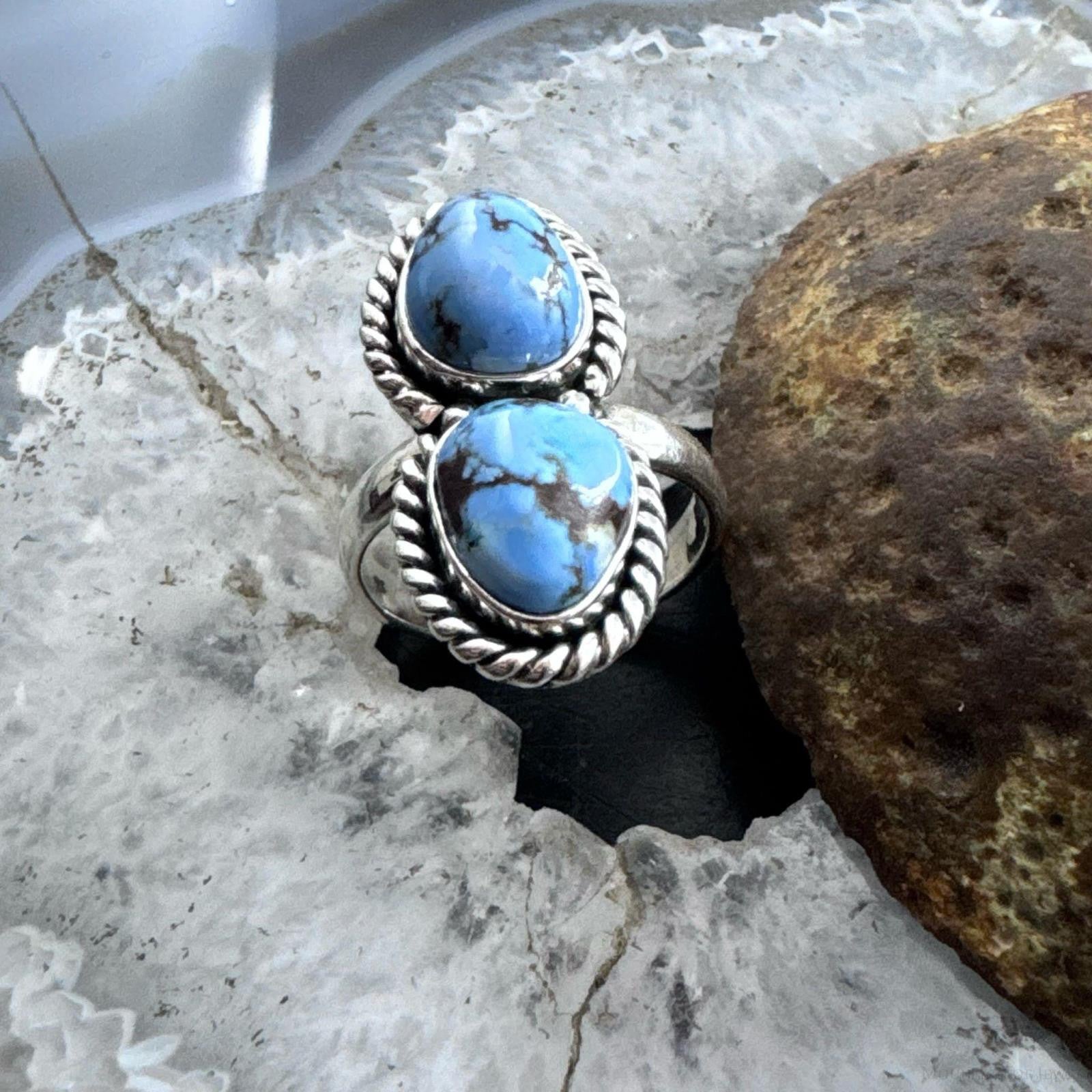 Sterling Silver Southwestern Style 2 Golden Hill Turquoise Ring Size 8.75 For Women