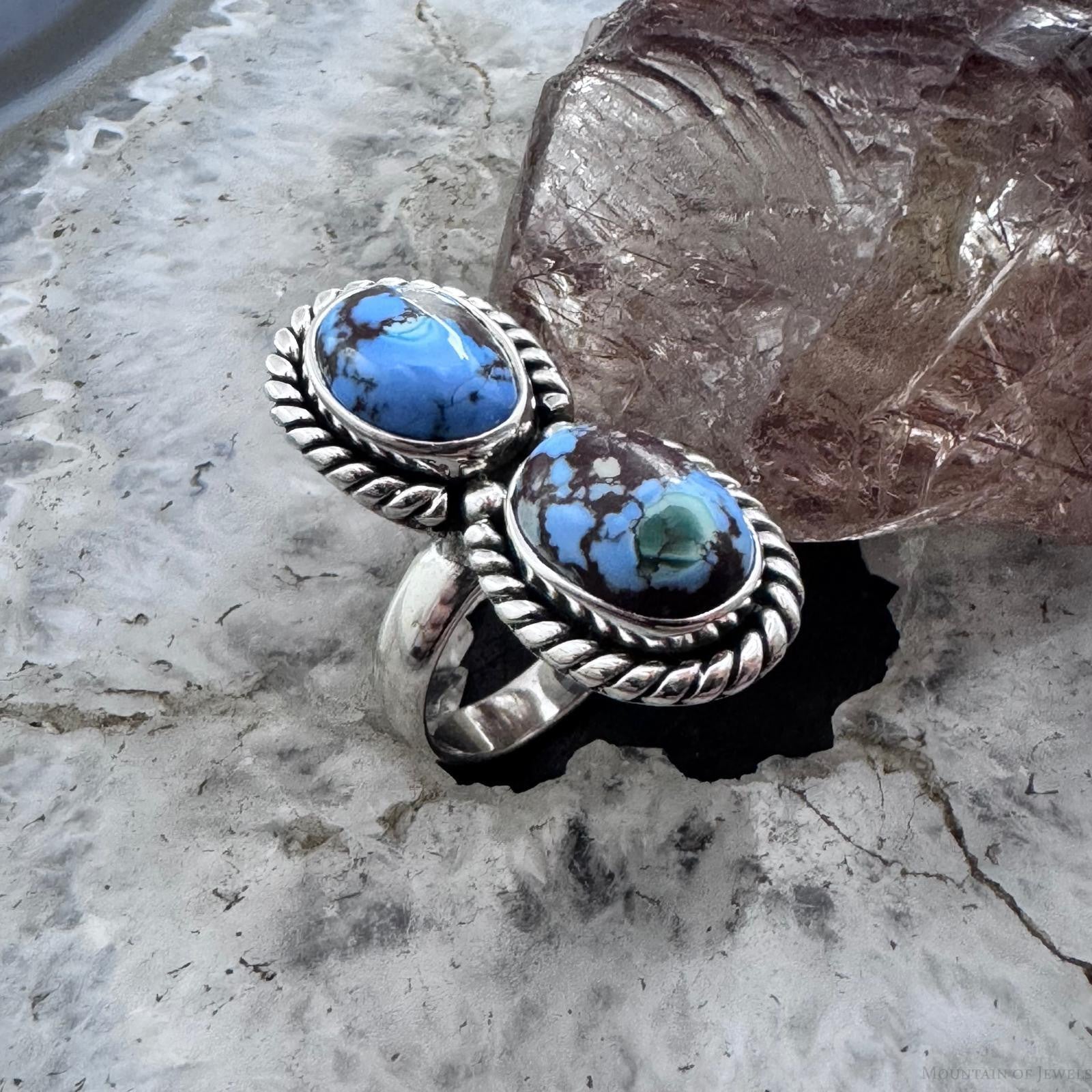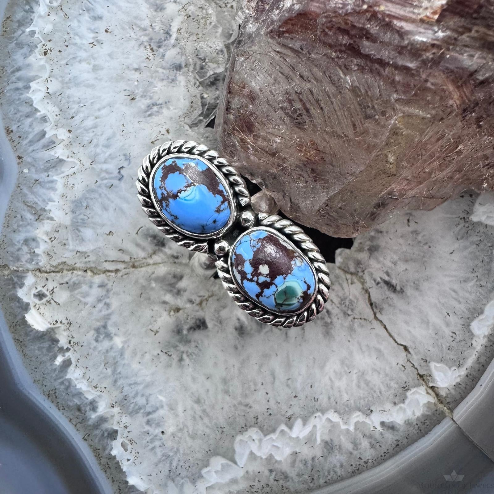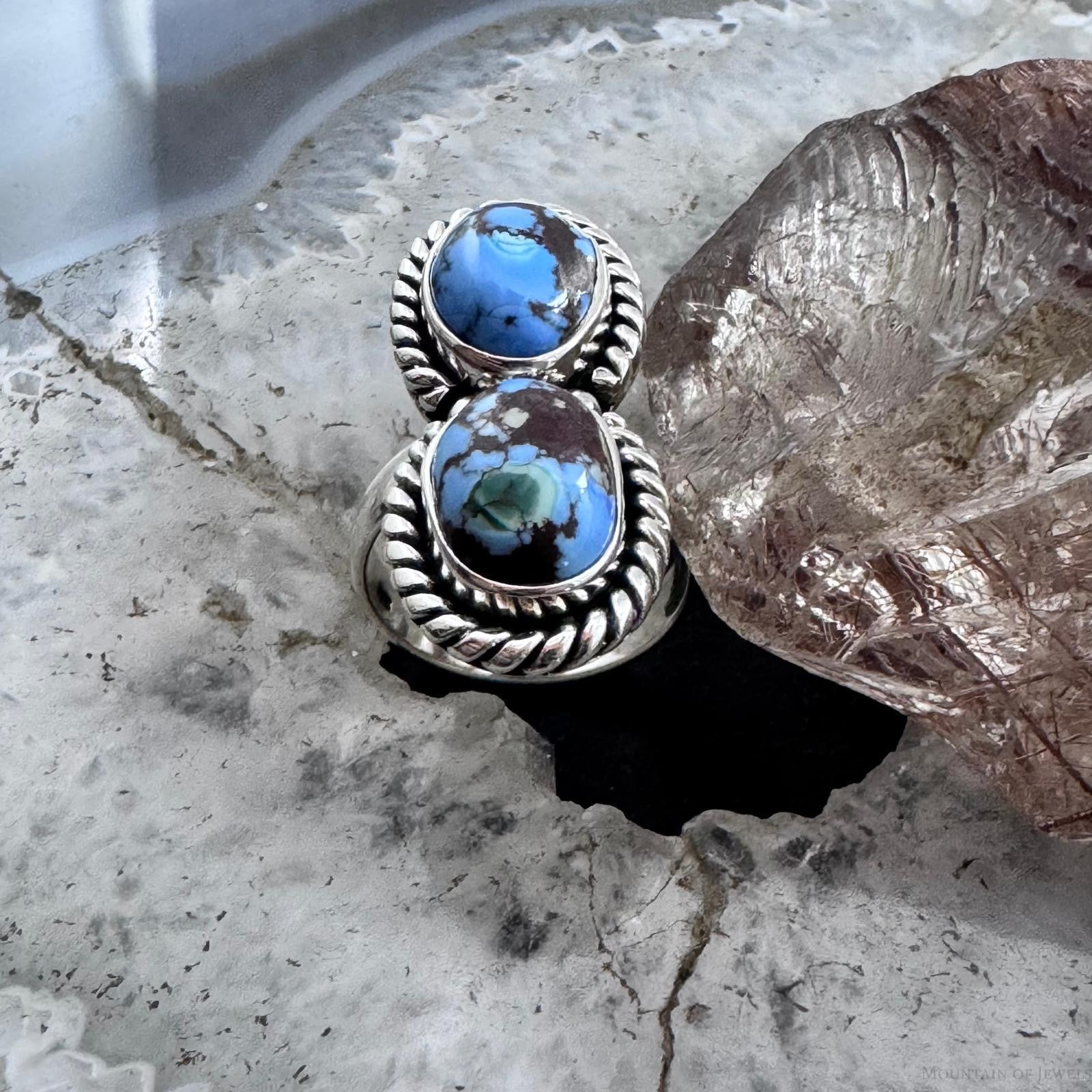 Sterling Silver Southwestern Style 2 Golden Hill Turquoise Ring Size 5 For Women