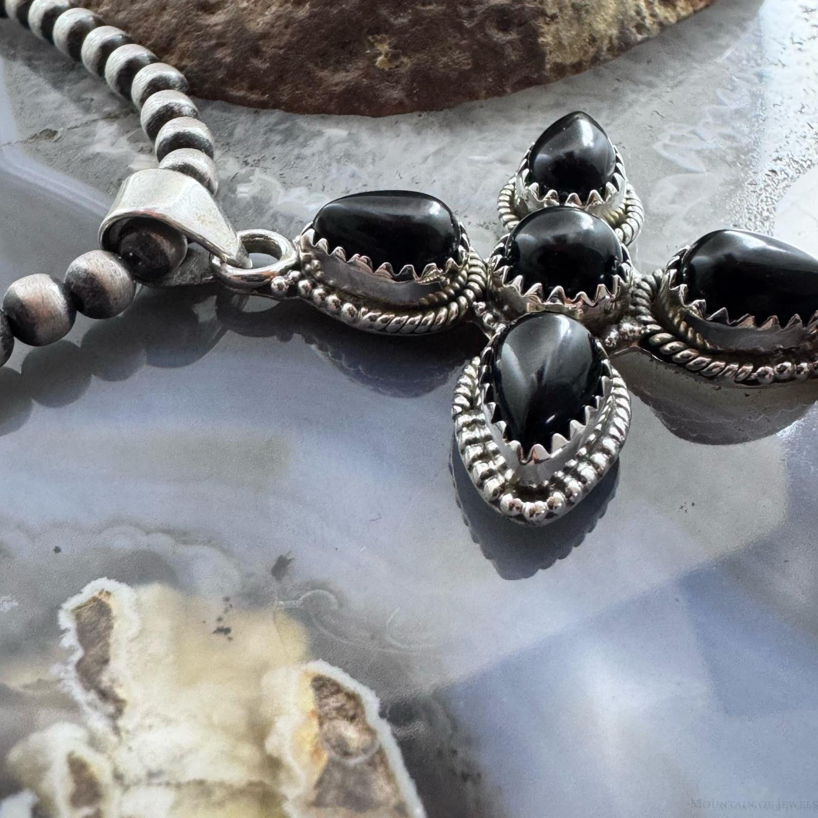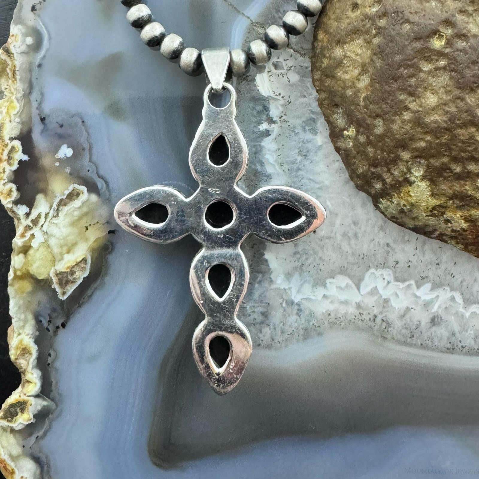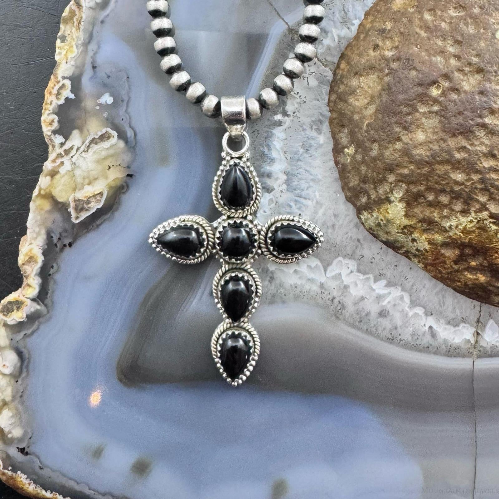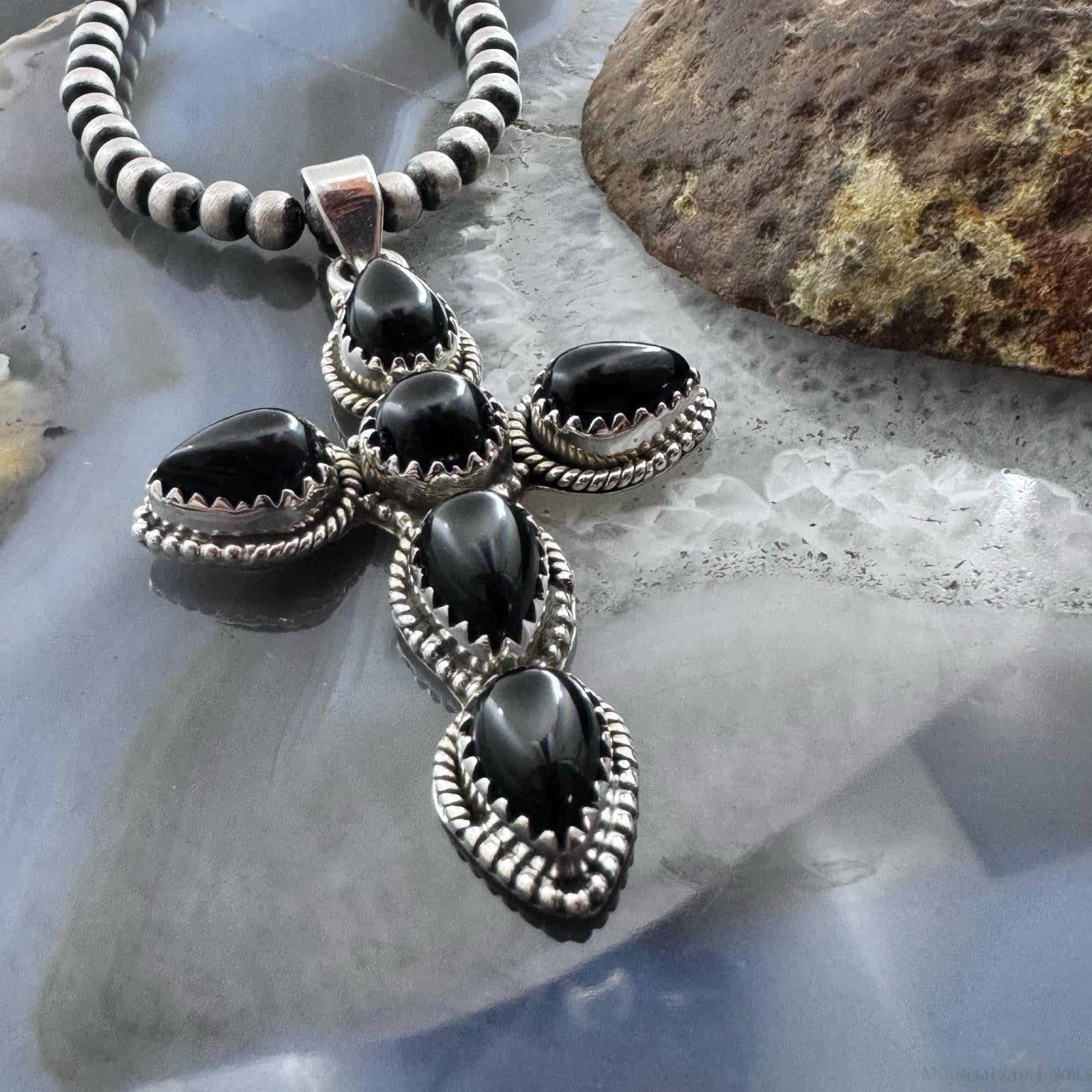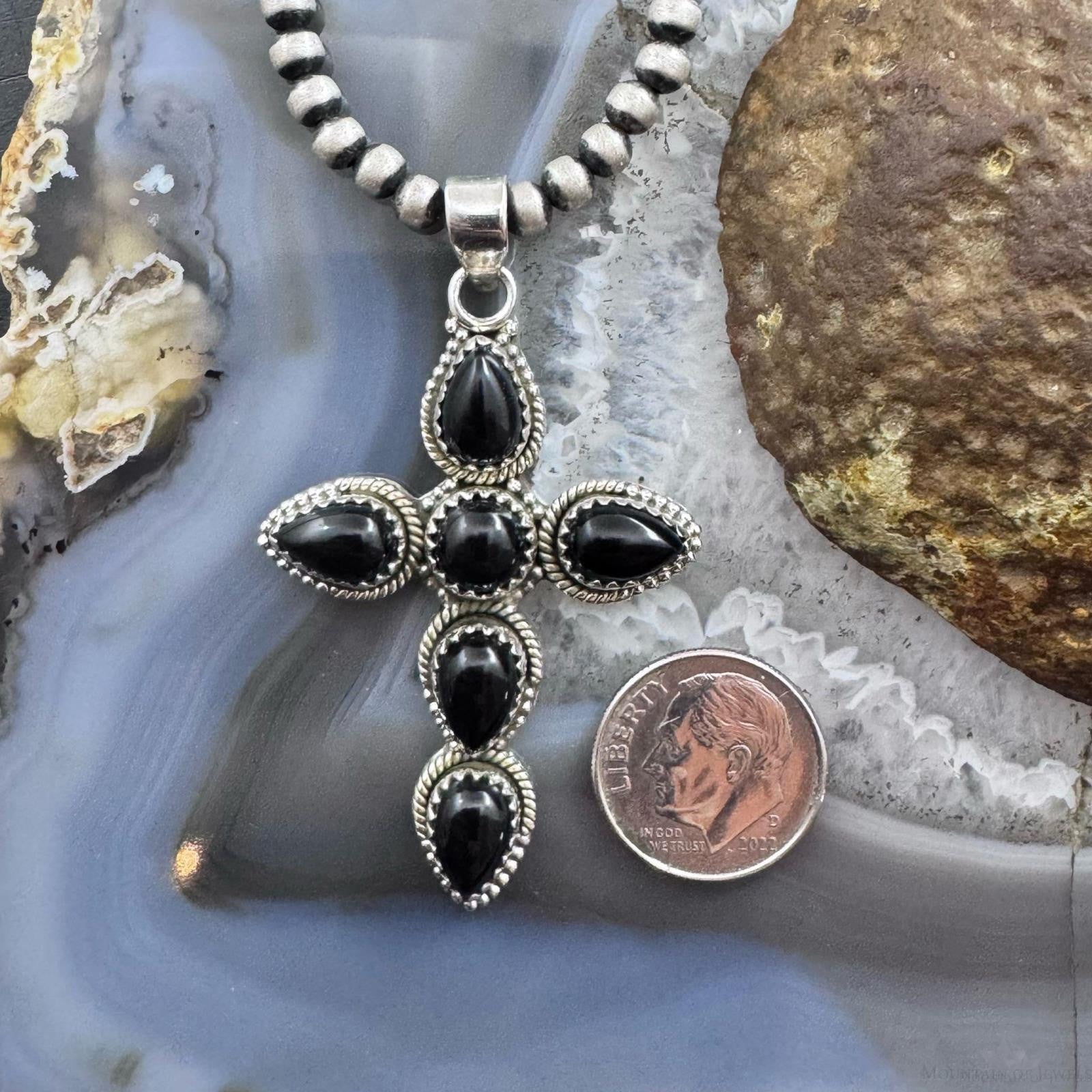 Sterling Silver Southwestern Style 6 Onyx Decorated Cross Pendant For Women