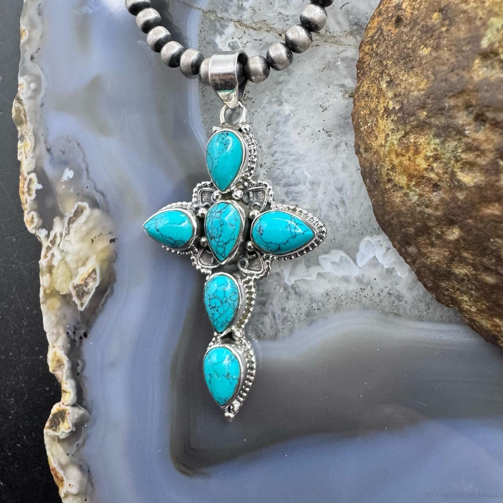 Sterling Silver Southwestern Style Blue Howlite Cross Pendant For Women