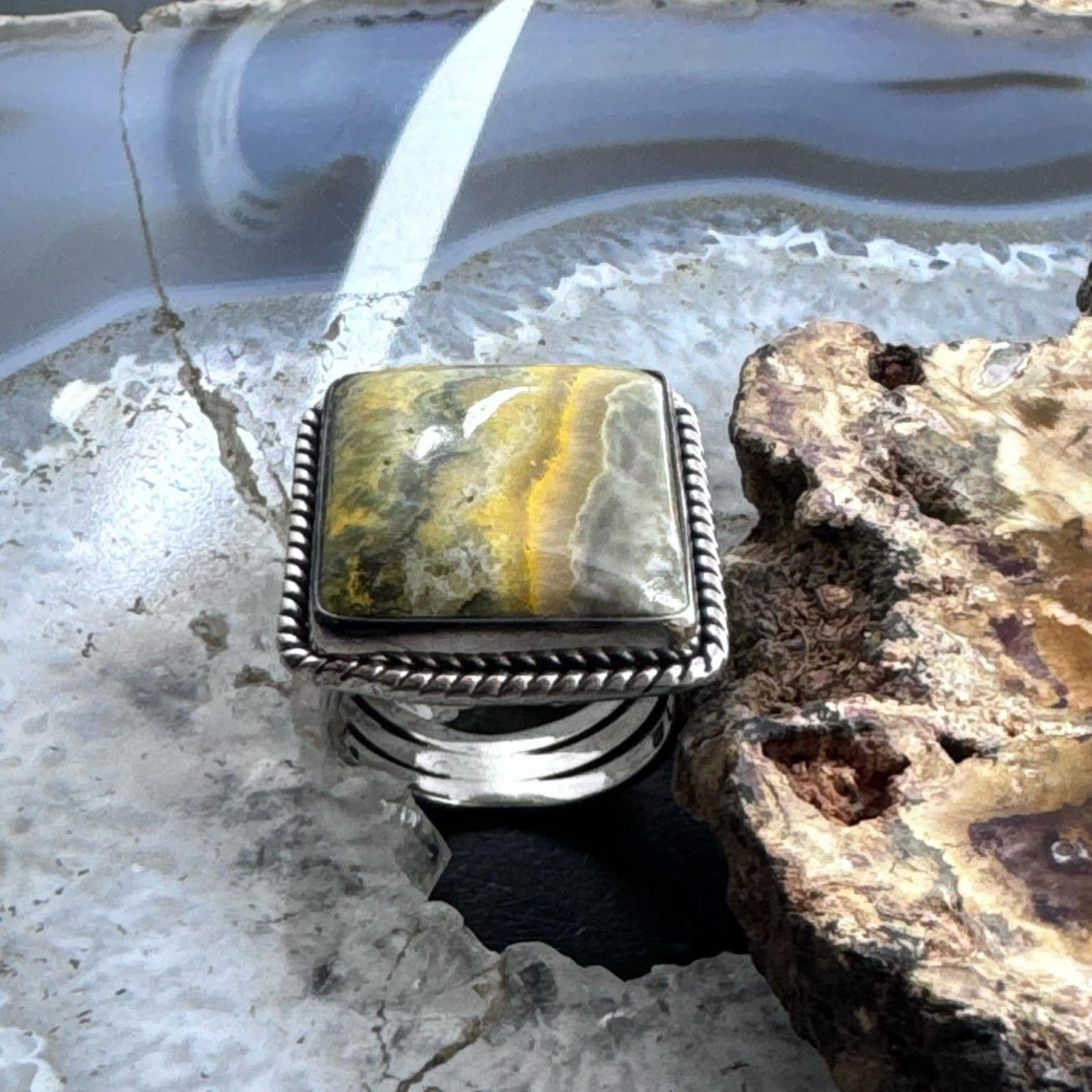 Sterling Silver Southwestern Style Bumblebee Jasper Bar Ring Size 7 For Women