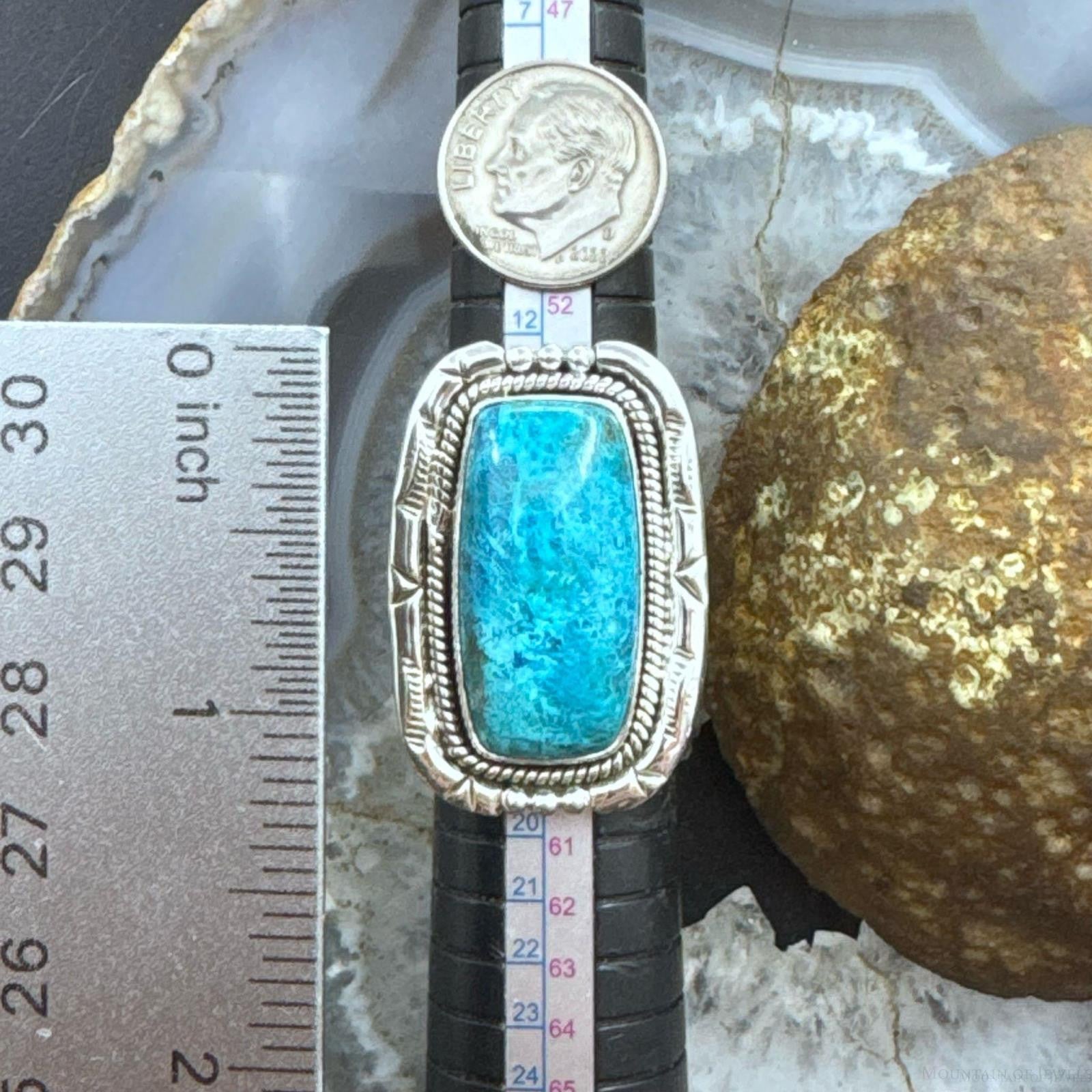 Sterling Silver Southwestern Style Chrysocolla Decorated Bar Ring Size 8 For Women