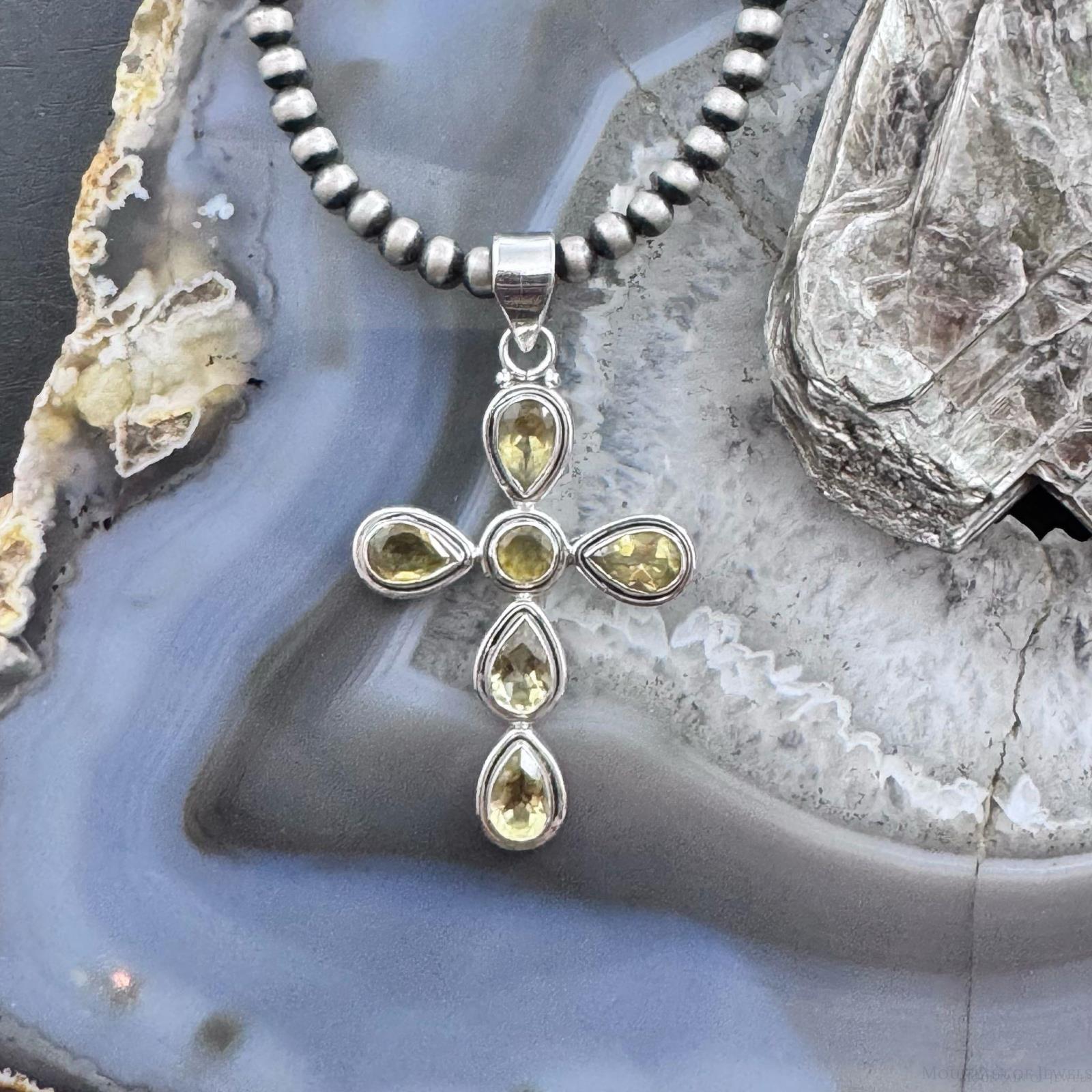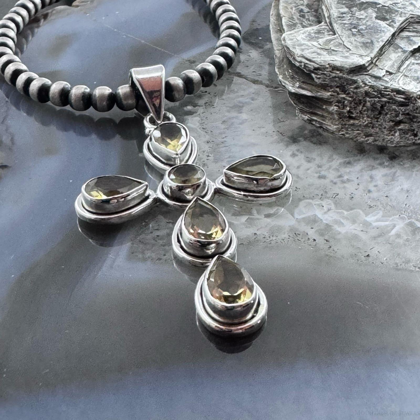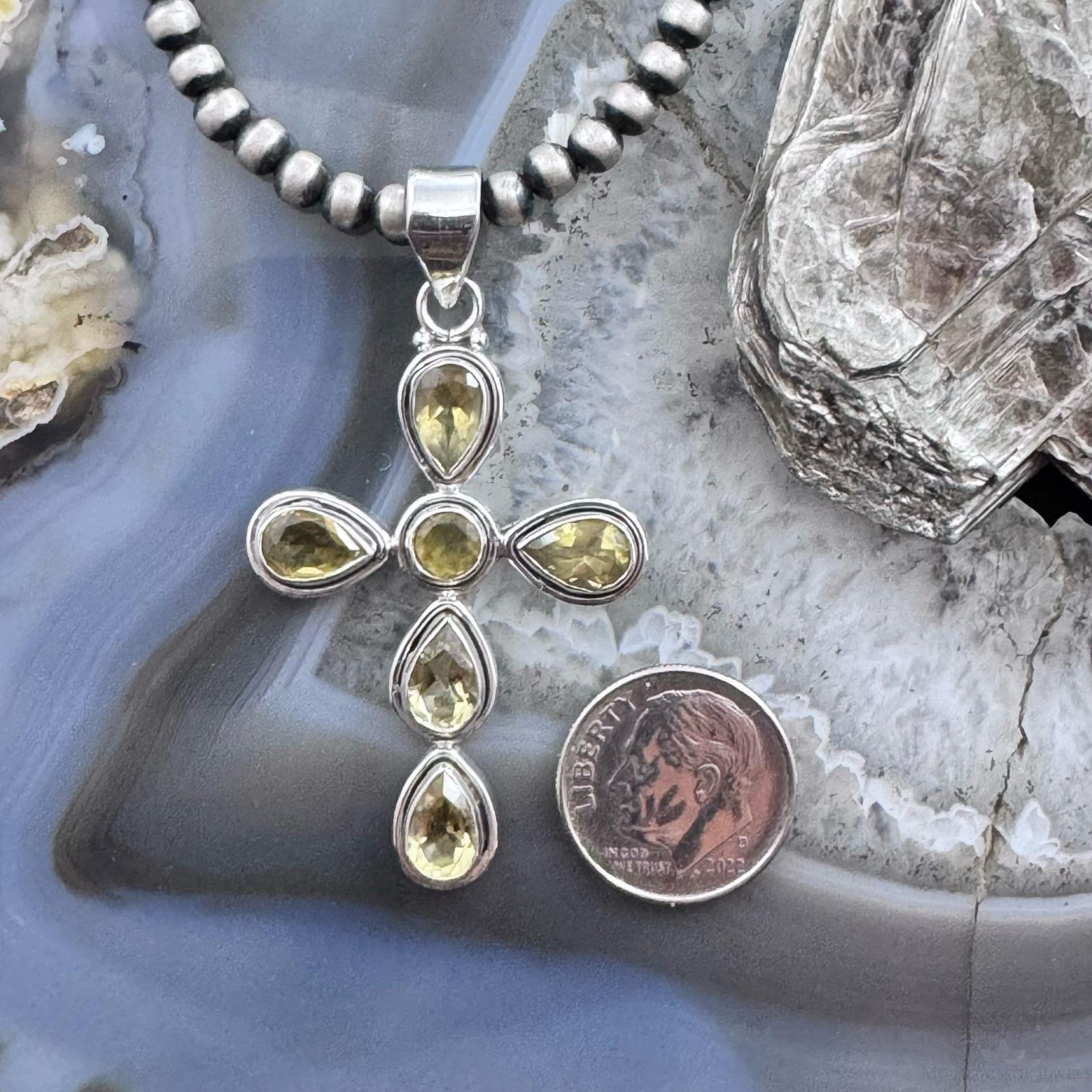 Sterling Silver Southwestern Style Citrine Decorated Cross Pendant For Women