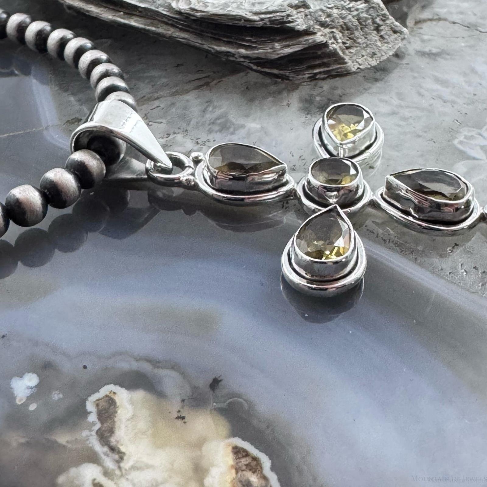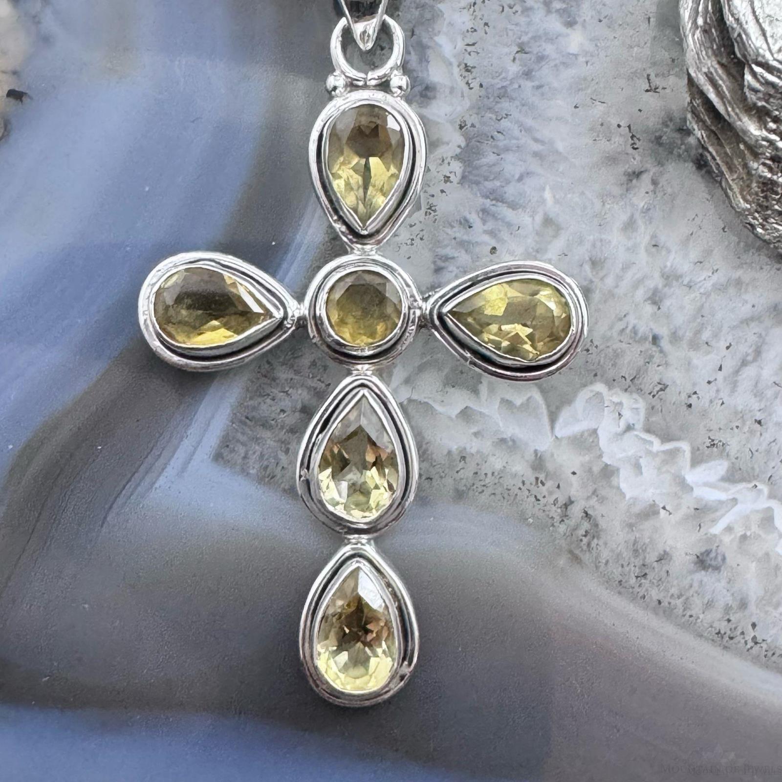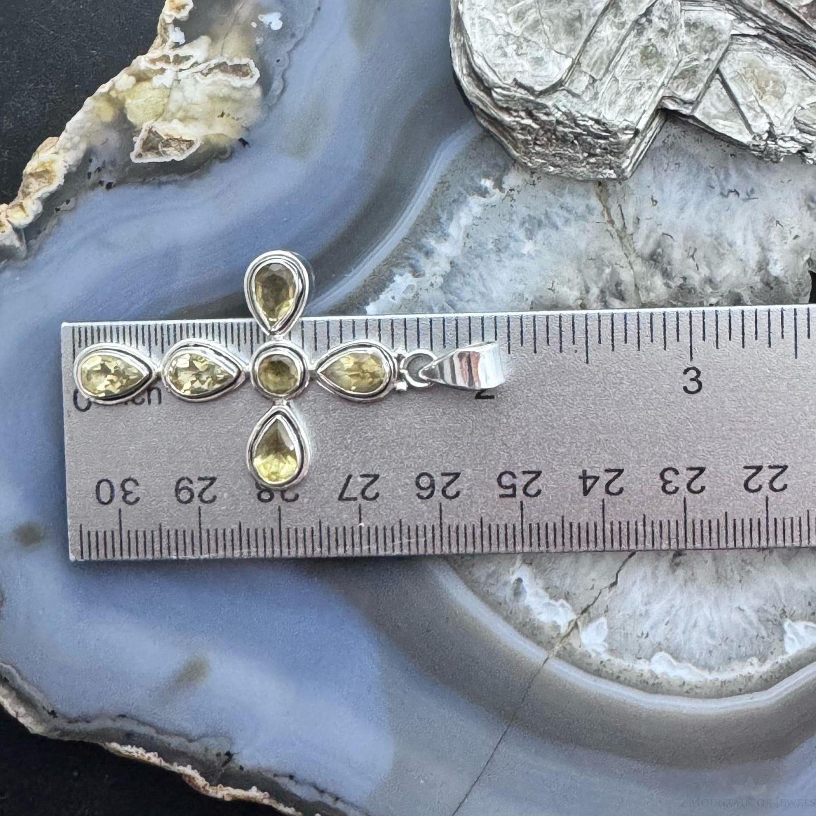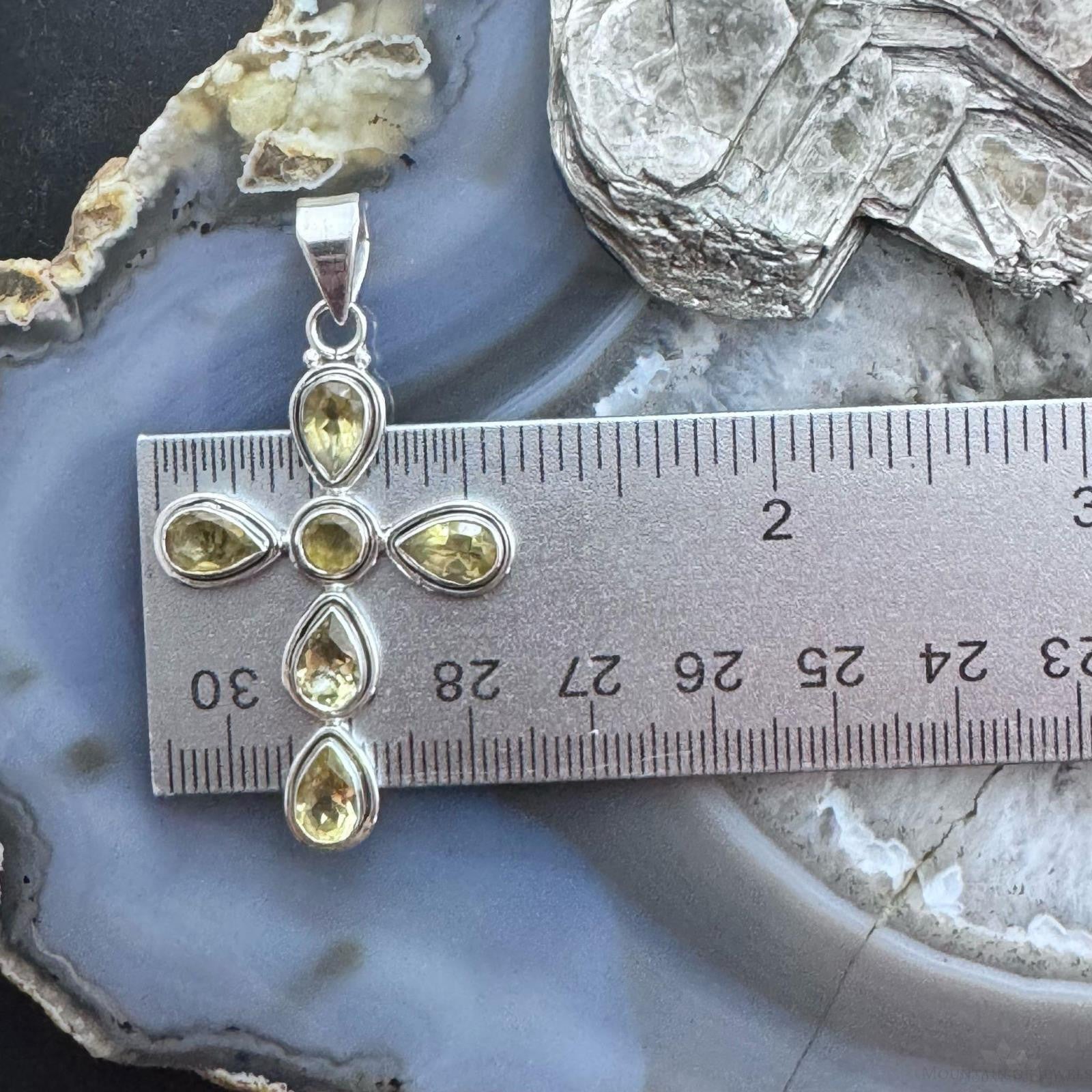Sterling Silver Southwestern Style Citrine Decorated Cross Pendant For Women